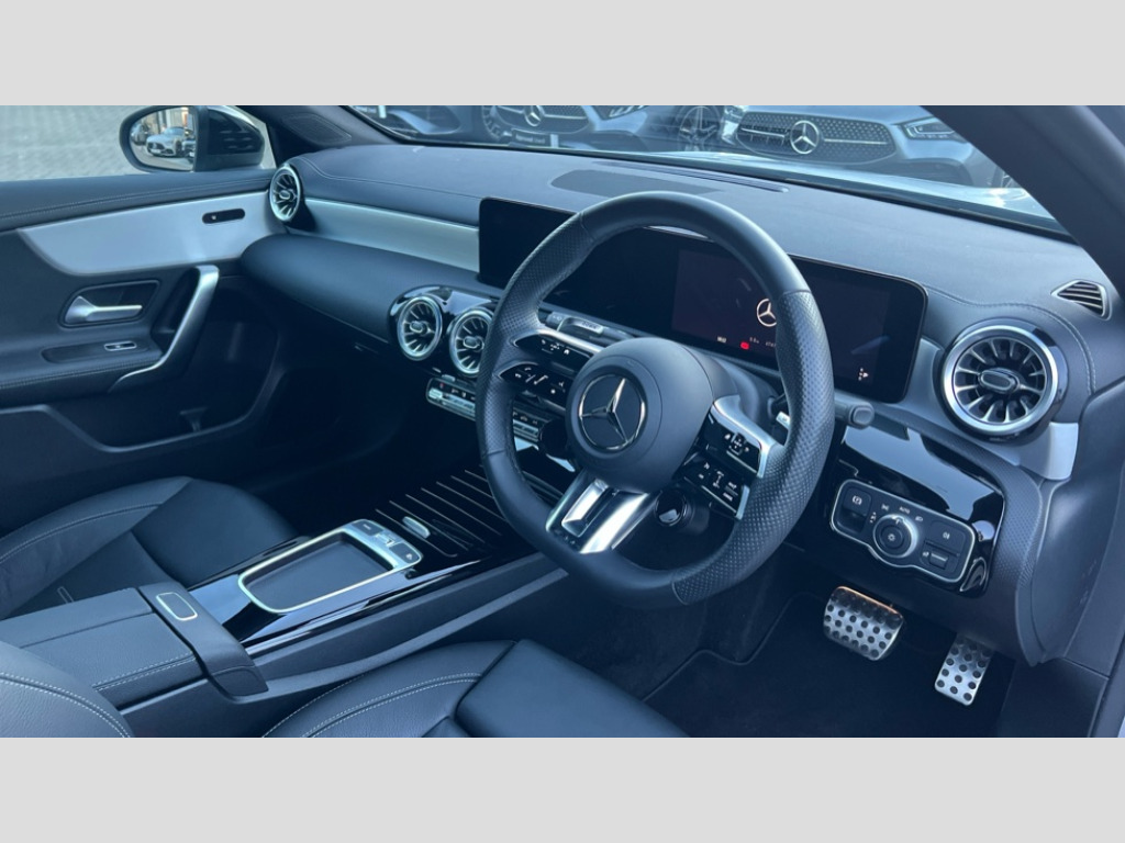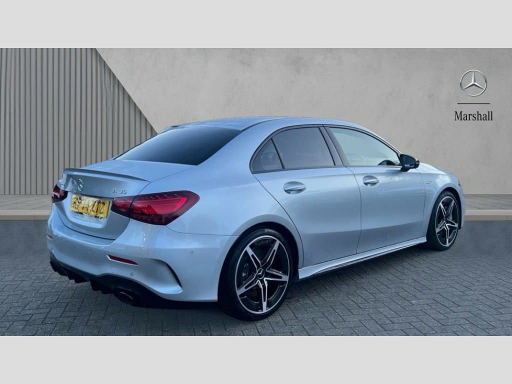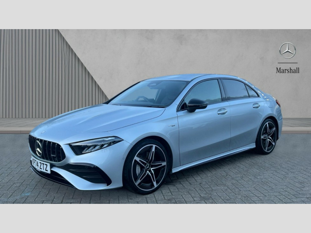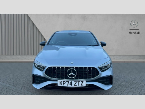 Mercedes-Benz A Class A35 4Matic Premium 4dr Auto 10.25 inch touchscreen central media display, 10.25" Digital instrument cluster display screen, Attention assist, Blind spot assist, Brake pad wear indicator warning light, Car wash mode, Cruise control + speed limiter, Direct steering, Direction indicators with lane change function, Dual bluetooth interfaces, DYNAMIC SELECT with driving programs (Slippery, Comfort, Sport, Sport+ and Individual), ECO start/stop function, Engine start/stop button, Fingerprint scanner, Fluid level warning indicator for fuel, oil, coolant and washer fluid, Fluorescent jacket for driver, Hard-disk navigation, Hey Mercedes Voice activation, Lamp failure indicator, Lane keeping system, MBUX augmented reality for navigation, Mercedes me connect including emergency call system, accident recovery, breakdown and maintenance management, Mercedes me remote services, Outside temperature gauge, Owners manual in English, Pre-installation of private car share, Preinstallation for Mercedes Benz link, Remote boot closing, Service indicator (ASSYST), Smartphone integration with Apple CarPlay and Android auto, Speed limit assist, Speed sensitive power steering, Trip computer in multifunction display with current consumption indicator, Wireless charging, AMG suspension, DAB Digital radio, MBUX multimedia system, Mercedes Benz advanced sound system (225 W) with 10 speakers, 1 central speaker, speakers on doors, a tweeter on door,one sub woofer + boost amplifier, 4 Electric Front and Rear windows, Adaptive brake lights, AMG body styling - AMG front apron with front splitter and AMG rear apron and visible exhaust tailpipe trim elements, AMG Front apron with flics as air deflector elements on the outer air intakes, AMG radiator grille with twin blade lamella and AMG Lettering, AMG Rear apron with specific diffuser look with four vertical fins and two round chrome plated tailpipe trim elements with a diameter of 90 mm, AMG spoiler lip on roof, Beltline strips in High gloss Black, Body colour bumpers, Body colour door handles with chrome inserts, Body colour side skirt, Electric adjustable and heated door mirrors with integrated LED side indicators, Front splitter and trim elements on the louvres in the outer air inlets, Front wings wheel arches with TURBO 4MATIC lettering, Headlamp assist automatic headlamp activation, Heat insulating dark tinted rear and rear side windows, Heated glass rear windscreen + timer control, LED High Performance headlamps including integral LED daytime running lamps and adaptive highbeam assist, LED tail lamp, Privacy glass, Radio aerial, Rain sensing windscreen wipers with two sensitivity settings, Rear boot, Rear fog lights, Rear side wing doors, Third brake light featuring LED technology, Wider wheel arches for AMG wheels, Window line trim strip in black, 3 seat bench in 2nd row, 40:20:40 split folding rear seats, Air conditioning - Two zone thermotronic luxury automatic climate control with display, AMG floor mats, AMG Performance steering wheel in nappa leather, Automatic child seat recognition sensor, Black air vents with surround in silver chrome, Black roof lining, Brushed stainless steel sports pedals with rubber studs, Electrically adjustable front memory seats including lumbar support and backrest inclination, Front centre armrest with stowage, Front seat backs luggage nets, Front sports seats with adjustable head restraints, Heated front seats, Height/reach adjustable steering column, Illuminated AMG front door sills with changeable cover, Interior lighting - 64 colour Ambient lighting, Interior mirror with reading lamps in black and frameless, Rear armrest with 2 cupholders, Seat occupancy sensor for front passenger seat, Silver coloured aluminium gear shift paddles on steering wheel, Single front passenger seat, Stowage compartment in centre console with retractable cover, Sunvisors with illuminated vanity mirrors, Twin front cupholders, AMG night pack - A Class, Keyless go comfort pack - A Class, Light and sight package - A Class, Mirror package - A Class, Parking pack with 180 degree view - A Class, Seat comfort pack - A Class, USB pack plus - A Class, 3 rear 3 point seatbelts, ABS with Brake Assist, Active bonnet, Active brake assist includes forward collision warning system with autonomous braking, Adaptive brake assist with hold function and hill start assist, Black seatbelts, Bonnet with power domes, Childproof locks manually operated for rear doors and electrically operated for rear power windows, Crash responsive emergency lighting, Driver and passenger head and side airbags, Drivers knee airbag, Dual stage driver/passenger airbags, Electronic parking brake, ESP curve dynamic assist, ESP with ASR, Exit warning, Front and rear seatbelt reminder, Front brake calipers with AMG lettering, ISOFIX and top tether child seat fixing points in two outer rear seats, Tyre pressure monitoring system, Warning triangle and first aid kit, Window airbags, Alarm system/interior protection/immobiliser, Guard 360 degree vehicle protection, Remote central locking and crash sensor with emergency opening function, Light longitudinal grain aluminium trim, 19" AMG 5 twin spoke light alloy wheels aerodynamically optimised painted in matt black with high sheen finish, Summer tyres, Tirefit sealant kit