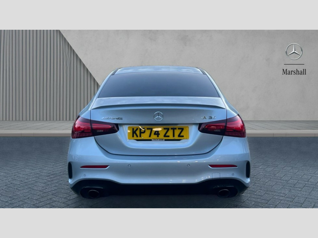 Mercedes-Benz A Class A35 4Matic Premium 4dr Auto 10.25 inch touchscreen central media display, 10.25" Digital instrument cluster display screen, Attention assist, Blind spot assist, Brake pad wear indicator warning light, Car wash mode, Cruise control + speed limiter, Direct steering, Direction indicators with lane change function, Dual bluetooth interfaces, DYNAMIC SELECT with driving programs (Slippery, Comfort, Sport, Sport+ and Individual), ECO start/stop function, Engine start/stop button, Fingerprint scanner, Fluid level warning indicator for fuel, oil, coolant and washer fluid, Fluorescent jacket for driver, Hard-disk navigation, Hey Mercedes Voice activation, Lamp failure indicator, Lane keeping system, MBUX augmented reality for navigation, Mercedes me connect including emergency call system, accident recovery, breakdown and maintenance management, Mercedes me remote services, Outside temperature gauge, Owners manual in English, Pre-installation of private car share, Preinstallation for Mercedes Benz link, Remote boot closing, Service indicator (ASSYST), Smartphone integration with Apple CarPlay and Android auto, Speed limit assist, Speed sensitive power steering, Trip computer in multifunction display with current consumption indicator, Wireless charging, AMG suspension, DAB Digital radio, MBUX multimedia system, Mercedes Benz advanced sound system (225 W) with 10 speakers, 1 central speaker, speakers on doors, a tweeter on door,one sub woofer + boost amplifier, 4 Electric Front and Rear windows, Adaptive brake lights, AMG body styling - AMG front apron with front splitter and AMG rear apron and visible exhaust tailpipe trim elements, AMG Front apron with flics as air deflector elements on the outer air intakes, AMG radiator grille with twin blade lamella and AMG Lettering, AMG Rear apron with specific diffuser look with four vertical fins and two round chrome plated tailpipe trim elements with a diameter of 90 mm, AMG spoiler lip on roof, Beltline strips in High gloss Black, Body colour bumpers, Body colour door handles with chrome inserts, Body colour side skirt, Electric adjustable and heated door mirrors with integrated LED side indicators, Front splitter and trim elements on the louvres in the outer air inlets, Front wings wheel arches with TURBO 4MATIC lettering, Headlamp assist automatic headlamp activation, Heat insulating dark tinted rear and rear side windows, Heated glass rear windscreen + timer control, LED High Performance headlamps including integral LED daytime running lamps and adaptive highbeam assist, LED tail lamp, Privacy glass, Radio aerial, Rain sensing windscreen wipers with two sensitivity settings, Rear boot, Rear fog lights, Rear side wing doors, Third brake light featuring LED technology, Wider wheel arches for AMG wheels, Window line trim strip in black, 3 seat bench in 2nd row, 40:20:40 split folding rear seats, Air conditioning - Two zone thermotronic luxury automatic climate control with display, AMG floor mats, AMG Performance steering wheel in nappa leather, Automatic child seat recognition sensor, Black air vents with surround in silver chrome, Black roof lining, Brushed stainless steel sports pedals with rubber studs, Electrically adjustable front memory seats including lumbar support and backrest inclination, Front centre armrest with stowage, Front seat backs luggage nets, Front sports seats with adjustable head restraints, Heated front seats, Height/reach adjustable steering column, Illuminated AMG front door sills with changeable cover, Interior lighting - 64 colour Ambient lighting, Interior mirror with reading lamps in black and frameless, Rear armrest with 2 cupholders, Seat occupancy sensor for front passenger seat, Silver coloured aluminium gear shift paddles on steering wheel, Single front passenger seat, Stowage compartment in centre console with retractable cover, Sunvisors with illuminated vanity mirrors, Twin front cupholders, AMG night pack - A Class, Keyless go comfort pack - A Class, Light and sight package - A Class, Mirror package - A Class, Parking pack with 180 degree view - A Class, Seat comfort pack - A Class, USB pack plus - A Class, 3 rear 3 point seatbelts, ABS with Brake Assist, Active bonnet, Active brake assist includes forward collision warning system with autonomous braking, Adaptive brake assist with hold function and hill start assist, Black seatbelts, Bonnet with power domes, Childproof locks manually operated for rear doors and electrically operated for rear power windows, Crash responsive emergency lighting, Driver and passenger head and side airbags, Drivers knee airbag, Dual stage driver/passenger airbags, Electronic parking brake, ESP curve dynamic assist, ESP with ASR, Exit warning, Front and rear seatbelt reminder, Front brake calipers with AMG lettering, ISOFIX and top tether child seat fixing points in two outer rear seats, Tyre pressure monitoring system, Warning triangle and first aid kit, Window airbags, Alarm system/interior protection/immobiliser, Guard 360 degree vehicle protection, Remote central locking and crash sensor with emergency opening function, Light longitudinal grain aluminium trim, 19" AMG 5 twin spoke light alloy wheels aerodynamically optimised painted in matt black with high sheen finish, Summer tyres, Tirefit sealant kit