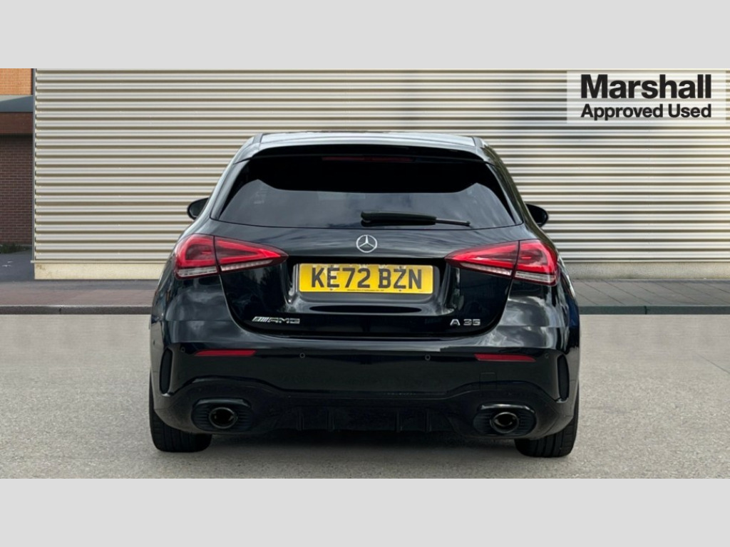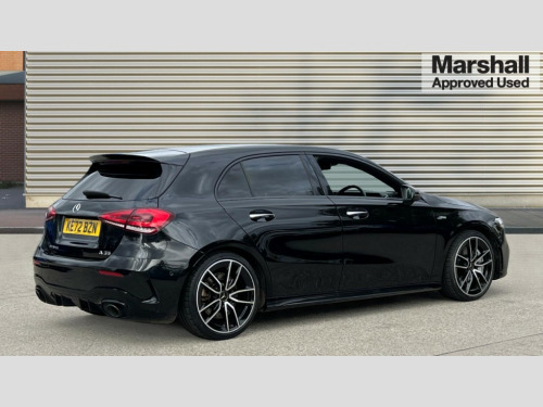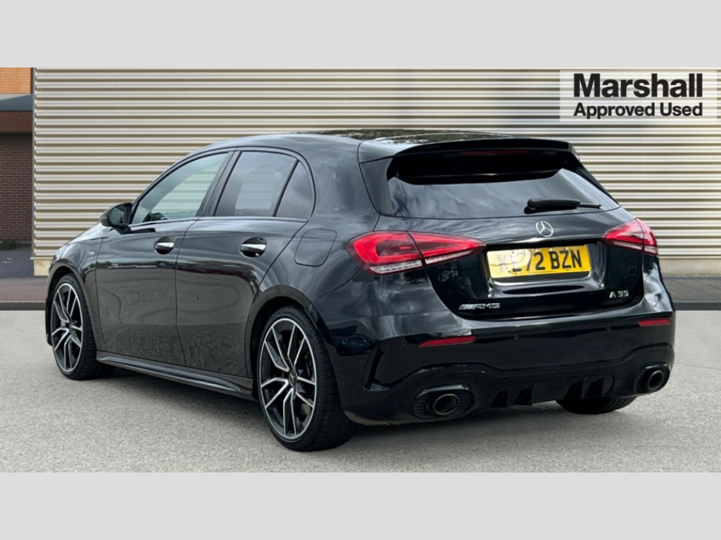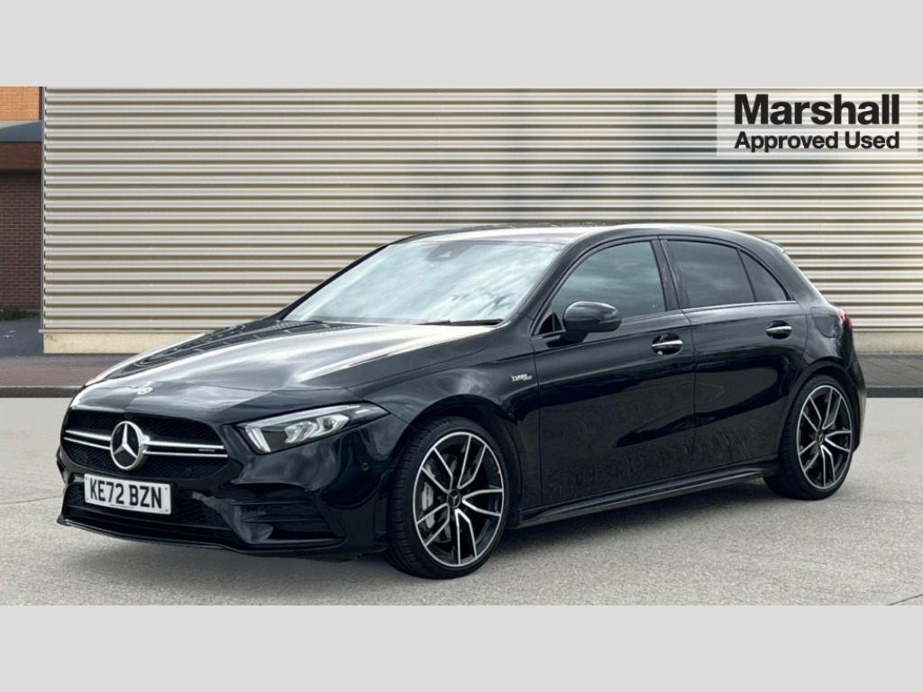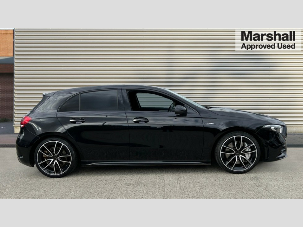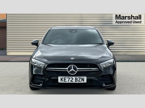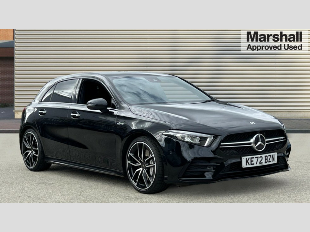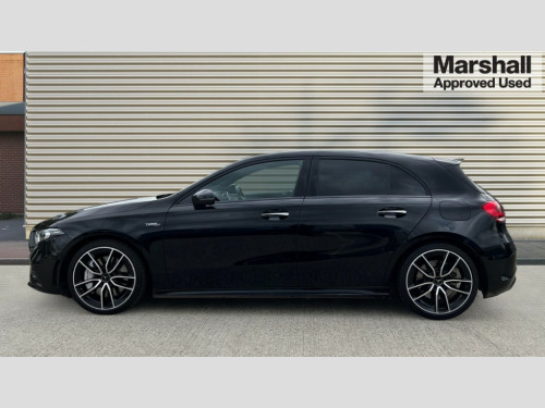 Mercedes-Benz A Class A35 4Matic Premium 5dr Auto 10.25" Digital instrument cluster display screen, 10.25" media display, 180 degree rear view camera with parking guidelines, Active parking assist with visual and audible warning of detected obstacles, Attention assist, Brake pad wear indicator warning light, Car wash mode, Cruise control + speed limiter, Direct steering, Dual bluetooth interfaces, DYNAMIC SELECT with driving programs (Slippery, Comfort, Sport, Sport+ and Individual), ECO start/stop function, Fluid level warning indicator for fuel, oil, coolant and washer fluid, Hard-disk navigation, Hey Mercedes Voice activation, Lamp failure indicator, Lane keeping system, Mercedes me connect including emergency call system, accident recovery, breakdown and maintenance management, Mercedes me remote services, Outside temperature gauge, Owners manual in English, Pre-installation for private car sharing, Preinstallation for Mercedes Benz link, Service indicator (ASSYST), Smartphone integration with Apple CarPlay and Android auto, Speed limit assist, Speed sensitive power steering, Trip computer, Ultrasonic sensors positioned in the front and rear bumpers, AMG performance suspension, Rear axle multi-link, 2 USB ports (type C) in rear stowage compartment and one in front of center console, 6 speakers, DAB Digital radio, MBUX multimedia system with DAB digital radio and touchpad including satellite navigation, Mercedes-Benz sound system - 100W, 4 Electric Front and Rear windows, Adaptive brake lights, AMG bodystyling - Front apron with splitter in chrome, rear apron with chrome trim and chrome visible trim elements in tailpipe, AMG Front apron with flics as air deflector elements on the outer air intakes, AMG radiator grille with twin blade lamella and AMG Lettering, AMG Rear apron with specific diffuser look with four vertical fins and two round chrome plated tailpipe trim elements with a diameter of 90 mm, AMG spoiler lip on roof, AMG Sports exhaust system with two round tailpipes measuring 90 mm in diameter attached in rear apron, AMG lettering plus ribbing on the inside of the, Automatic headlights, Black weather strip, Body colour bumpers, Body colour door handles with chrome inserts, Body colour side skirt, Electric adjustable and heated door mirrors with integrated LED side indicators, Front wings wheel arches with TURBO 4MATIC lettering, Headlamp assist automatic headlamp activation, Heated glass rear windscreen + timer control, LED High level third brake light, LED high performance headlamps with integrated LED daytime running lights, LED tail lamp, Privacy glass, Radio aerial, Rain sensing windscreen wipers with two sensitivity settings, Rear fog lights, Rear side wing doors, Rear wiper, Trim elements on louvres in outer air inlets in high gloss black, Wider wheel arches for AMG wheels, 3 seat bench in 2nd row, 40:20:40 split folding rear seats, AMG Performance steering wheel in nappa leather, Auto Mercedes-Benz child seat recognition sensor, Black air vents with surround in silver chrome, Black roof lining, Brushed stainless steel sports pedals with rubber studs, Controller on centre console with chrome surround, Floor mats with AMG lettering, Front centre armrest with storage compartment, Front seat backs luggage nets, Heated front seats, Height/reach adjustable steering column, Illuminated AMG front door sills with changeable cover, Interior lighting - 64 colour Ambient lighting, Interior mirror with reading lamps in black and frameless, Manual height adjustable front seats, Rear armrest with 2 cupholders, Rear head restraints, Seat occupancy sensor for front passenger seat, Silver coloured aluminium gear shift paddles on steering wheel, Single front passenger seat, Sports seats with integrated headrests, Stowage compartment in centre console with retractable cover, Sunvisors with illuminated vanity mirrors, Touchpad on center console, Twin front cupholders, Two zone thermotronic luxury automatic climate control, AMG night pack - A Class, Light and sight pack - A Class, Mirror package - A Class, Seat comfort pack - A Class, 3 rear 3 point seatbelts, ABS with Brake Assist, Active bonnet, Active brake assist includes forward collision warning system with autonomous braking, Adaptive brake assist with hold function and hill start assist, Black seatbelts, Childproof locks manually operated for rear doors and electrically operated for rear power windows, Crash responsive emergency lighting, Driver and passenger head and side airbags, Drivers knee airbag, Dual stage driver/passenger airbags, Electronic parking brake, ESP curve dynamic assist, ESP with ASR, Front and rear seatbelt reminder, Front brake calipers with AMG lettering, ISOFIX and top tether child seat fixing points in two outer rear seats, Perforated front brake discs, Tyre pressure monitoring system, Warning triangle and first aid kit, Window airbags, Alarm system/interior protection/immobiliser, Keyless entry lock/unlock, Keyless Go, Remote central locking and crash sensor with emergency opening function, Urban guard vehicle protection system with immobiliser and interior protection, Light aluminium with longitudinal grain interior trim, 19" AMG 5 twin spoke light alloy wheels, Summer tyres, Tirefit sealant kit