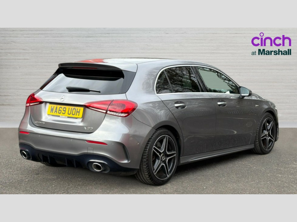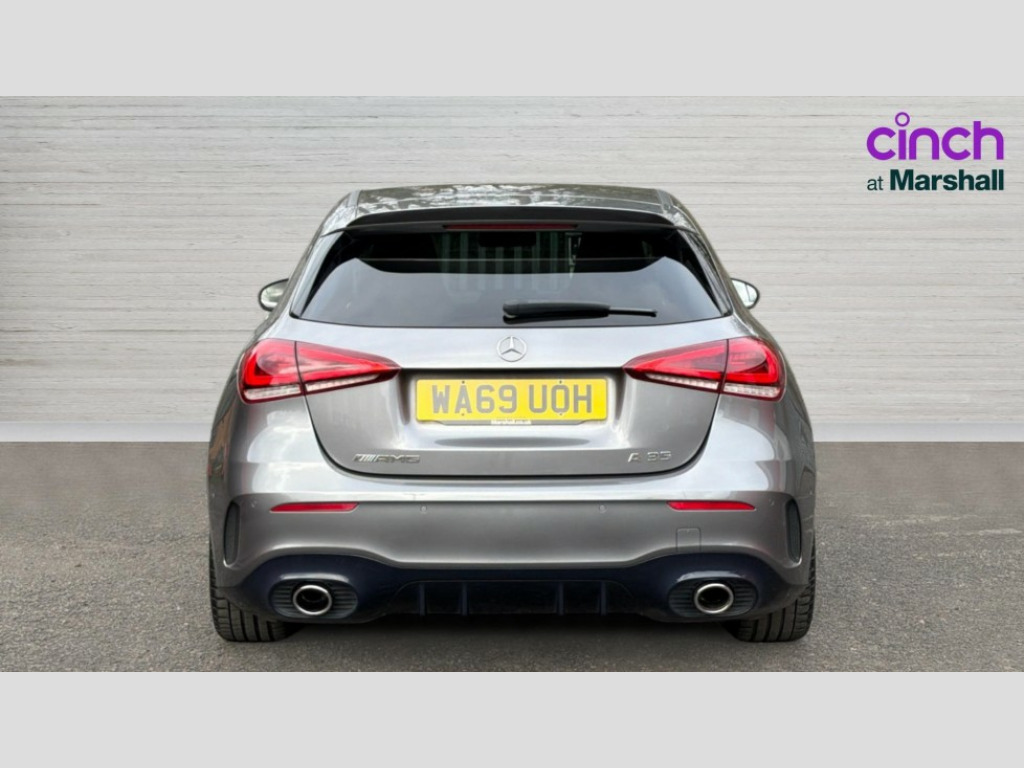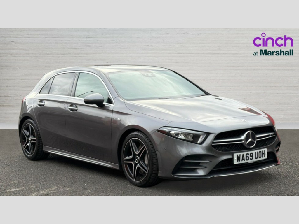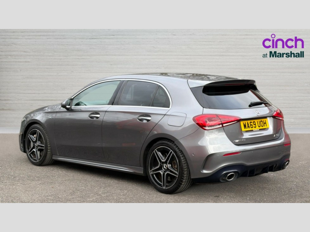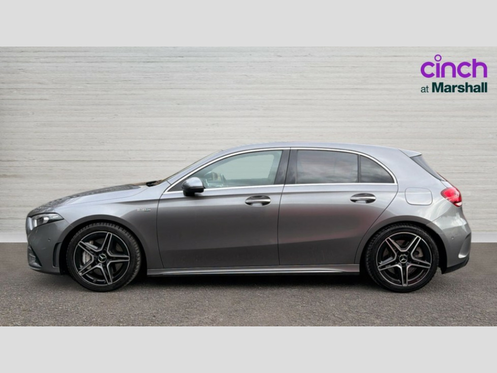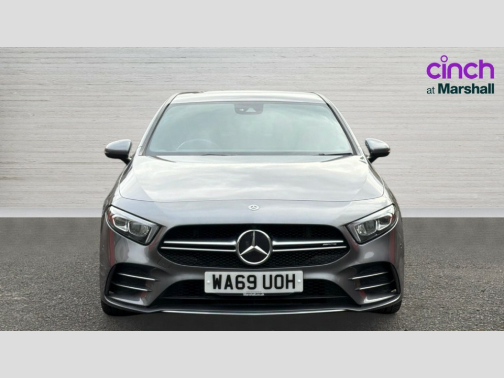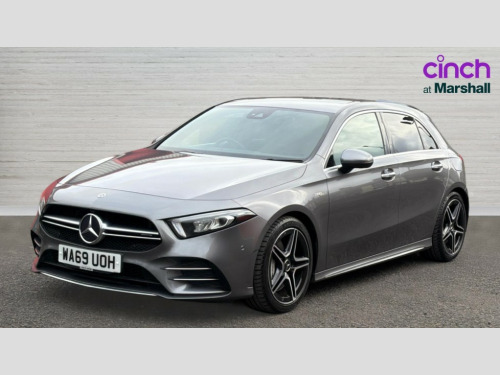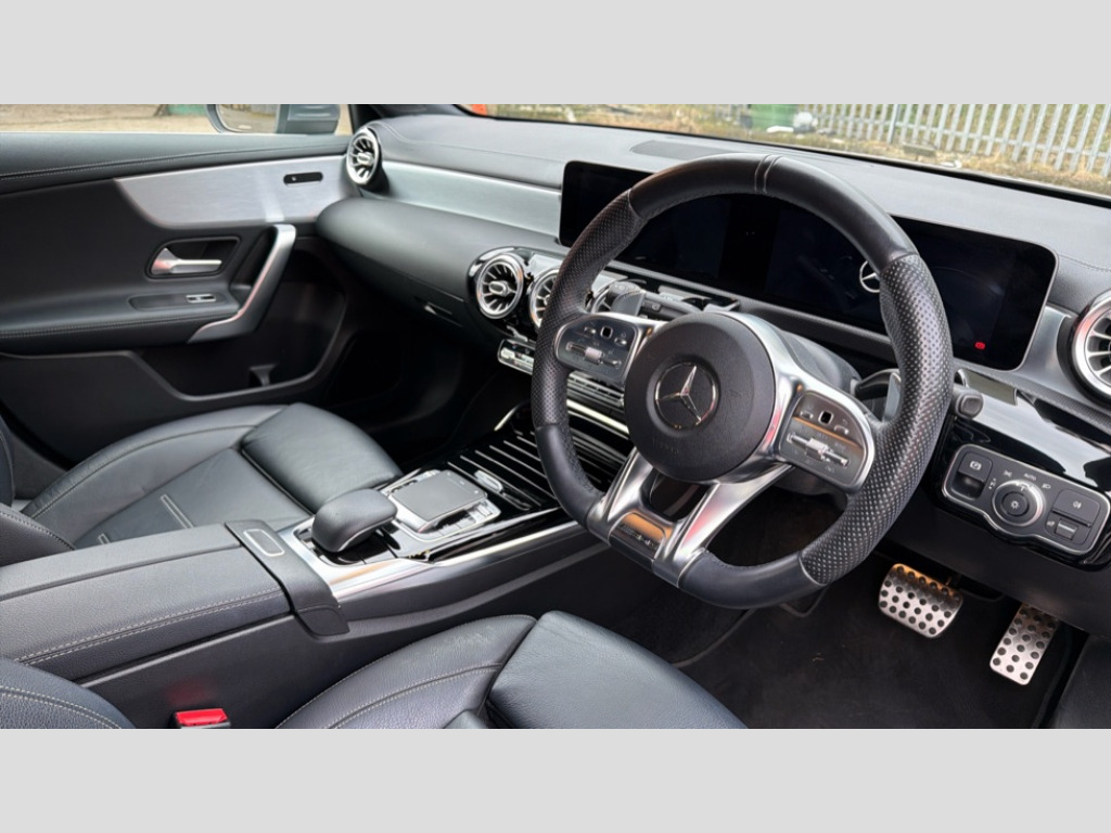 Mercedes-Benz A Class A35 4Matic Premium 5dr Auto 10.25" Digital instrument cluster display screen, 180 degree rear view camera with parking guidelines, Active lane keep assist, Active park assist with parktronic system including front and rear parking sensors, Attention assist, Brake pad wear indicator warning light, Direct steering, DYNAMIC SELECT with driving programs (Slippery, Comfort, Sport, Sport+ and Individual), ECO start/stop function, Fluid level warning indicator for fuel, oil, coolant and washer fluid, Hard-disk navigation, Hey Mercedes Voice activation, Lamp failure indicator, Mercedes me connect including emergency call system, accident recovery, breakdown and maintenance management, Outside temperature gauge, Radio aerial integrated into roof spoiler, Service indicator (ASSYST), Speed sensitive power steering, Trip computer, DAB Digital radio, Dual bluetooth interface, 2 USB ports (type C), MBUX multimedia system with DAB digital radio and touchpad including satellite navigation, Mid-range sound system, 4 Electric Front and Rear windows, Adaptive brake lights, AMG front, rear apron and side skirts, AMG radiator grille with twin louvre, Blue tinted glass, Body colour bumpers, Body colour door handles, Body colour side skirt, Body coloured door mirrors, Chrome beltline trim, Electric adjustable and heated door mirrors with integrated LED side indicators, Headlamp assist automatic headlamp activation, Heated glass rear windscreen + timer control, Illuminated front door sill panels with Mercedes-Benz lettering, LED high performance headlamps with integrated LED daytime running lights, LED tail lamp, LED third brake light, Privacy glass, Rain sensor windscreen wipers, Rear fog lights, Rear wiper, Two round tailpipes attached to rear apron, Wider wheel arches for AMG wheels, 12V socket, 40:20:40 split folding rear seats, Air vents surround and cruciform nozzle in silver chrome, AMG floor mats with red stitching, AMG leather on door centre panels, AMG Performance steering wheel in nappa leather, Auto Mercedes-Benz child seat recognition sensor, Beltline double topstitching, Black roof lining, Brushed stainless steel sports pedals with rubber studs, Controller on centre console with chrome surround, Cup holder and stowage compartment lighting, Freight packaging without tie-down hooks, Front centre armrest with storage compartment, Front door sills with Mercedes Benz lettering, Front footwell lights, Front reading lamps in left and right console downlighter, Front seat backs luggage nets, Front seat cushion length adjustment, Front signal exit lamp, Front vanity lights, Gearshift paddles on steering wheel, Handle recess/closing light, Heated front seats, Height/reach adjustable steering column, Illuminated glove compartment stowage, Interior lighting - 64 colour Ambient lighting, ISOFIX Child seat top tethers and anchor fixings, Luggage compartment cover, Manual height adjustable front seats, Oddments tray lighting, Rear armrest, Rear head restraints, Rear Reading Lamps, Seat occupancy sensor for front passenger seat, Spectacles compartment for driver, Sports seats with integrated headrests, Storage compartment under load area floor, Stowage compartment in centre console with retractable cover, Sunvisors with illuminated vanity mirrors, Touchpad, Touchpad illumination, Twin front cupholders, Two zone thermotronic luxury automatic climate control, Light and sight pack - A Class, Mirror package - A Class, Seat comfort pack - A Class, 3 rear 3 point seatbelts, ABS with Brake Assist, Active bonnet, Adaptive brake assist with hold function and hill start assist, Childproof locks manually operated for rear doors and electrically operated for rear power windows, Crash responsive emergency lighting, Driver and passenger head and side airbags, Drivers knee airbag, Dual stage driver/passenger airbags, Electronic parking brake, ESP curve dynamic assist, ESP with ASR, Front and rear seatbelt reminder, Front brake callipers with Mercedes Benz lettering, Perforated front brake discs, Tyre pressure monitoring system, Warning triangle and first aid kit, Window airbags, Alarm system/interior protection/immobiliser, Keyless entry lock/unlock, Remote central locking and crash sensor with emergency opening function, Light aluminium with longitudinal grain interior trim, Summer tyres, Tirefit sealant kit