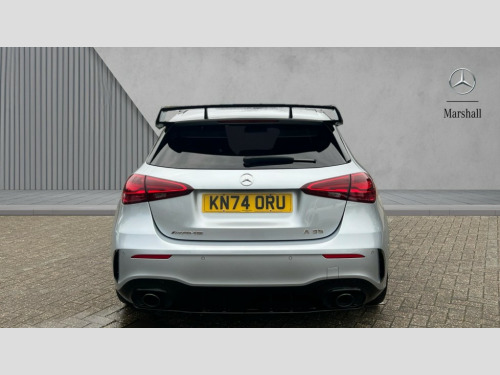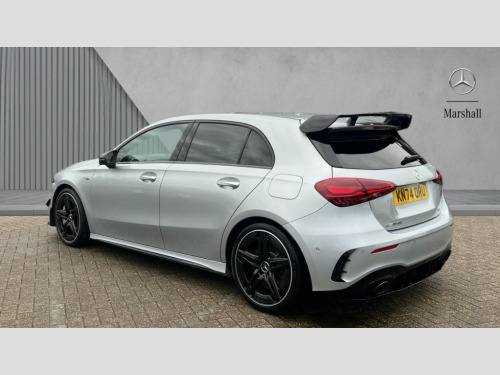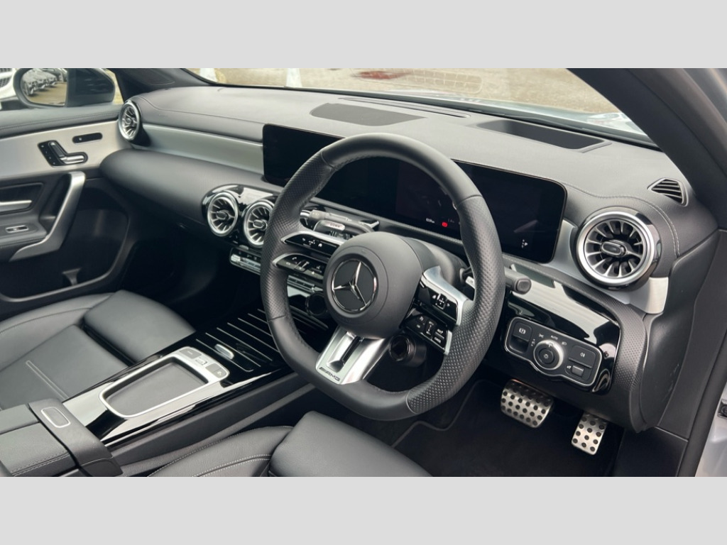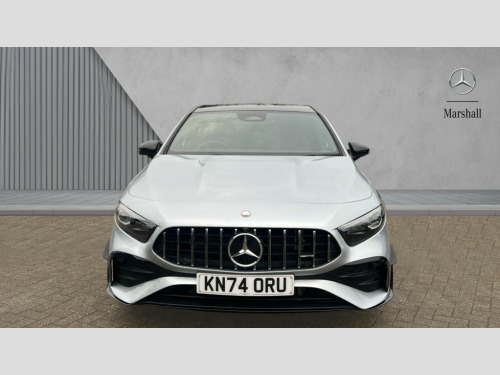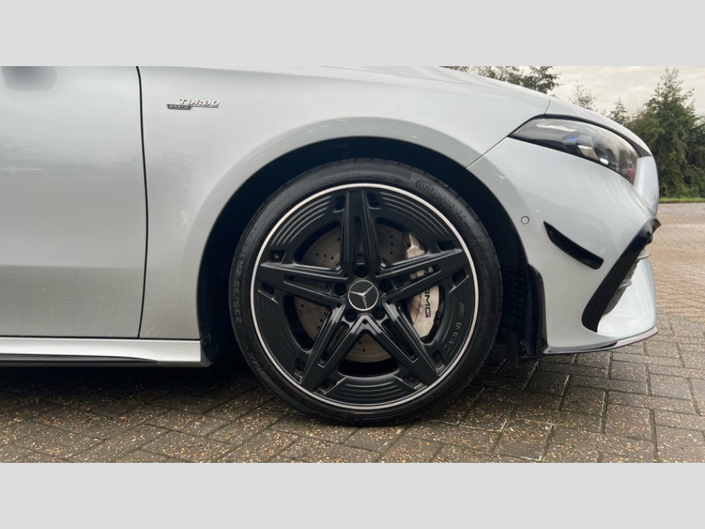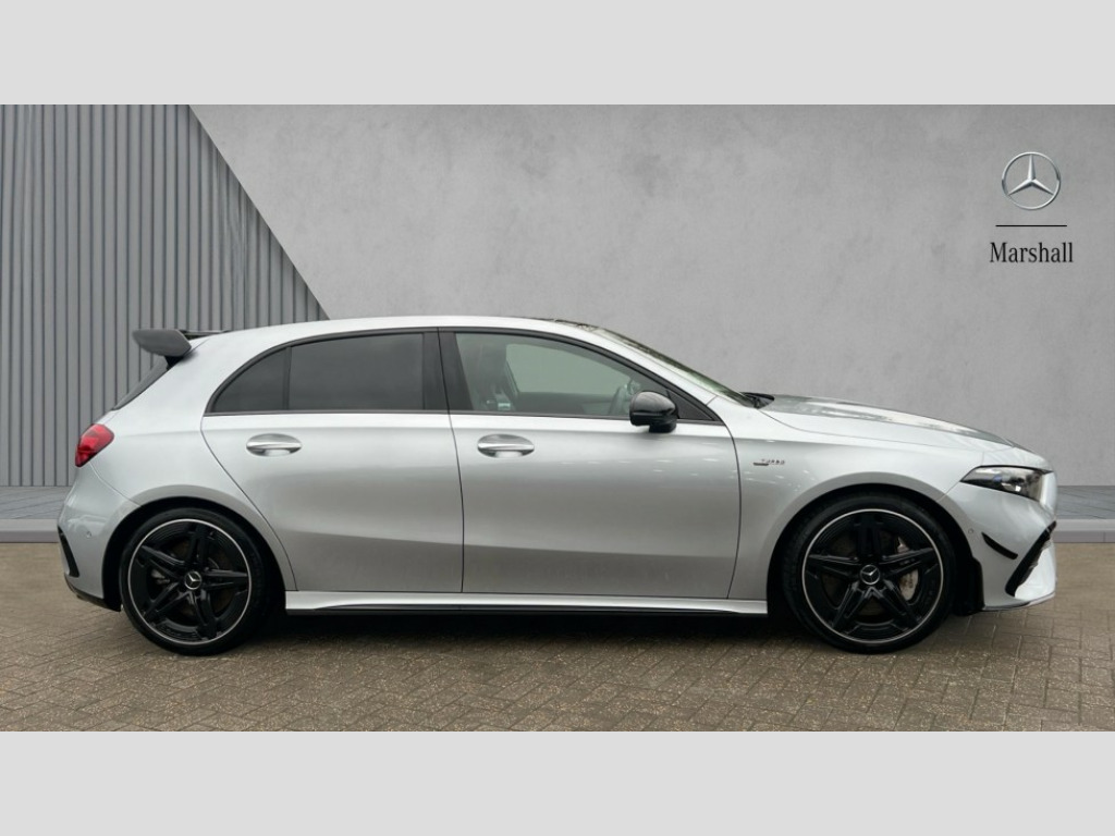 Mercedes-Benz A Class A35 4Matic Premium Plus 5dr Auto 10.25 inch touchscreen central media display, 10.25" Digital instrument cluster display screen, Attention assist, Brake pad wear indicator warning light, Car wash mode, Direct steering, Direction indicators with lane change function, Dual bluetooth interfaces, DYNAMIC SELECT with driving programs (Slippery, Comfort, Sport, Sport+ and Individual), Easy pack tailgate hands-free access, ECO start/stop function, Engine start/stop button, Fingerprint scanner, Fluid level warning indicator for fuel, oil, coolant and washer fluid, Fluorescent jacket for driver, Hard-disk navigation, Head up Display, Hey Mercedes Voice activation, Lamp failure indicator, MBUX augmented reality for navigation, MBUX Interior assistant, Mercedes me connect including emergency call system, accident recovery, breakdown and maintenance management, Mercedes me remote services, Outside temperature gauge, Owners manual in English, Pre-installation of private car share, Preinstallation for Mercedes Benz link, Remote boot closing, Service indicator (ASSYST), Smartphone integration with Apple CarPlay and Android auto, Speed sensitive power steering, Tailgate, Traffic sign assist, Trip computer in multifunction display with current consumption indicator, Wireless charging, AMG suspension, Suspension with adaptive damping system, DAB Digital radio, MBUX multimedia system, Mercedes Benz advanced sound system (225 W) with 10 speakers, 1 central speaker, speakers on doors, a tweeter on door,one sub woofer + boost amplifier, 4 Electric Front and Rear windows, Adaptive brake lights, AMG body styling - AMG front apron with front splitter and AMG rear apron and visible exhaust tailpipe trim elements, AMG Front apron with flics as air deflector elements on the outer air intakes, AMG radiator grille with twin blade lamella and AMG Lettering, AMG Rear apron with specific diffuser look with four vertical fins and two round chrome plated tailpipe trim elements with a diameter of 90 mm, AMG spoiler lip on roof, Beltline strips in High gloss Black, Body colour bumpers, Body colour door handles with chrome inserts, Body colour side skirt, Electric adjustable and heated door mirrors with integrated LED side indicators, Front splitter and trim elements on the louvres in the outer air inlets, Front wings wheel arches with TURBO 4MATIC lettering, Headlamp assist automatic headlamp activation, Heat insulating dark tinted rear and rear side windows, Heated glass rear windscreen + timer control, LED daytime running lights, LED High level third brake light, LED tail lamp, Multibeam LED headlamps with adaptive highbeam assist and cornering function, Panoramic sliding sunroof, Privacy glass, Radio aerial, Rain sensing windscreen wipers with two sensitivity settings, Rear fog lights, Rear side wing doors, Rear windscreen wiper, Surround lighting with logo projection, Wider wheel arches for AMG wheels, Window line trim strip in black, 3 seat bench in 2nd row, 40:20:40 split folding rear seats, Air conditioning - Two zone thermotronic luxury automatic climate control with display, AMG floor mats, AMG Performance steering wheel in nappa leather, Automatic child seat recognition sensor, Black air vents with surround in silver chrome, Black roof lining, Brushed stainless steel sports pedals with rubber studs, Electrically adjustable front memory seats including lumbar support and backrest inclination, Front centre armrest with stowage, Front seat backs luggage nets, Height/reach adjustable steering column, Illuminated AMG front door sills with changeable cover, Interior lighting - 64 colour Ambient lighting, Interior mirror with reading lamps in black and frameless, Rear armrest with 2 cupholders, Seat occupancy sensor for front passenger seat, Silver coloured aluminium gear shift paddles on steering wheel, Single front passenger seat, Sports seats with integrated headrests, Stowage compartment in centre console with retractable cover, Sunvisors with illuminated vanity mirrors, Twin front cupholders, Aerodynamic pack - A Class, AMG night pack - A Class, Light and sight package - A Class, Mirror package - A Class, Parking pack with 360 degree camera - A Class, Seat comfort pack - A Class, USB pack plus - A Class, Winter pack - A Class, 3 rear 3 point seatbelts, ABS with Brake Assist, Active bonnet, Adaptive brake assist with hold function and hill start assist, Black seatbelts, Bonnet with power domes, Childproof locks manually operated for rear doors and electrically operated for rear power windows, Crash responsive emergency lighting, Driver and passenger head and side airbags, Drivers knee airbag, Dual stage driver/passenger airbags, Electronic parking brake, ESP curve dynamic assist, ESP with ASR, Exit warning, Front and rear seatbelt reminder, Front brake calipers with AMG lettering, ISOFIX and top tether child seat fixing points in two outer rear seats, Tyre pressure monitoring system, Warning triangle and first aid kit, Window airbags, Alarm system/interior protection/immobiliser, Guard 360 degree vehicle protection, Keyless entry lock/unlock, Keyless Go, Remote central locking and crash sensor with emergency opening function, Light longitudinal grain aluminium trim, 19" AMG 5 twin spoke light alloy wheels aerodynamically optimised painted in matt black with high sheen rim flange, Summer tyres, Tirefit sealant kit