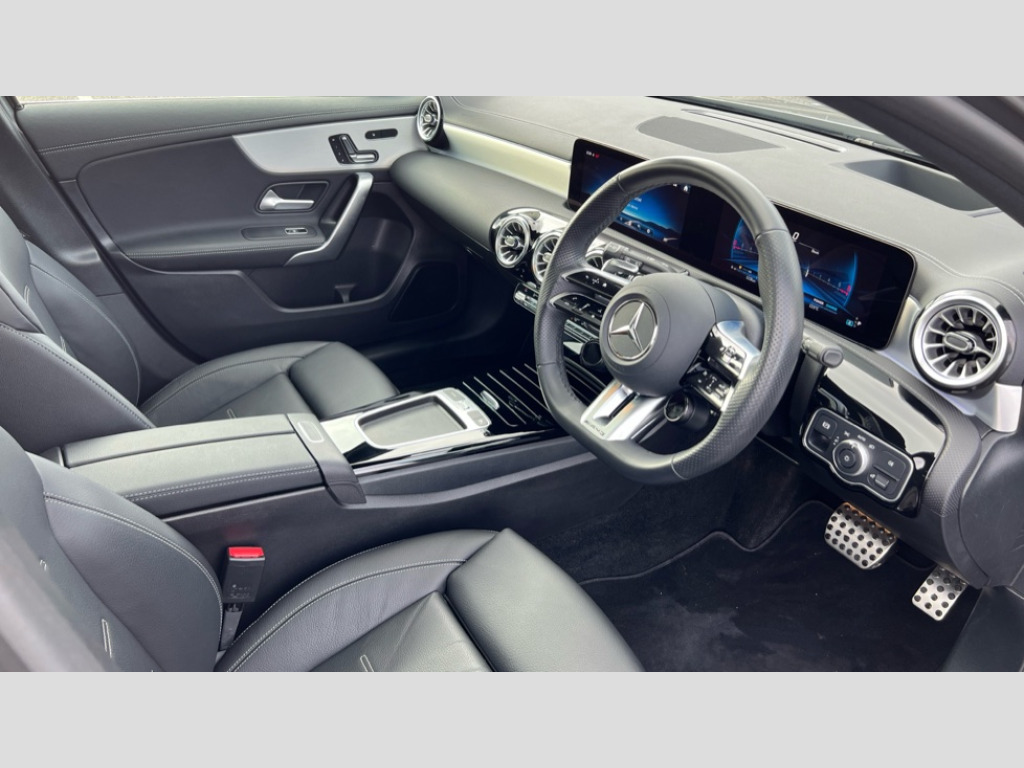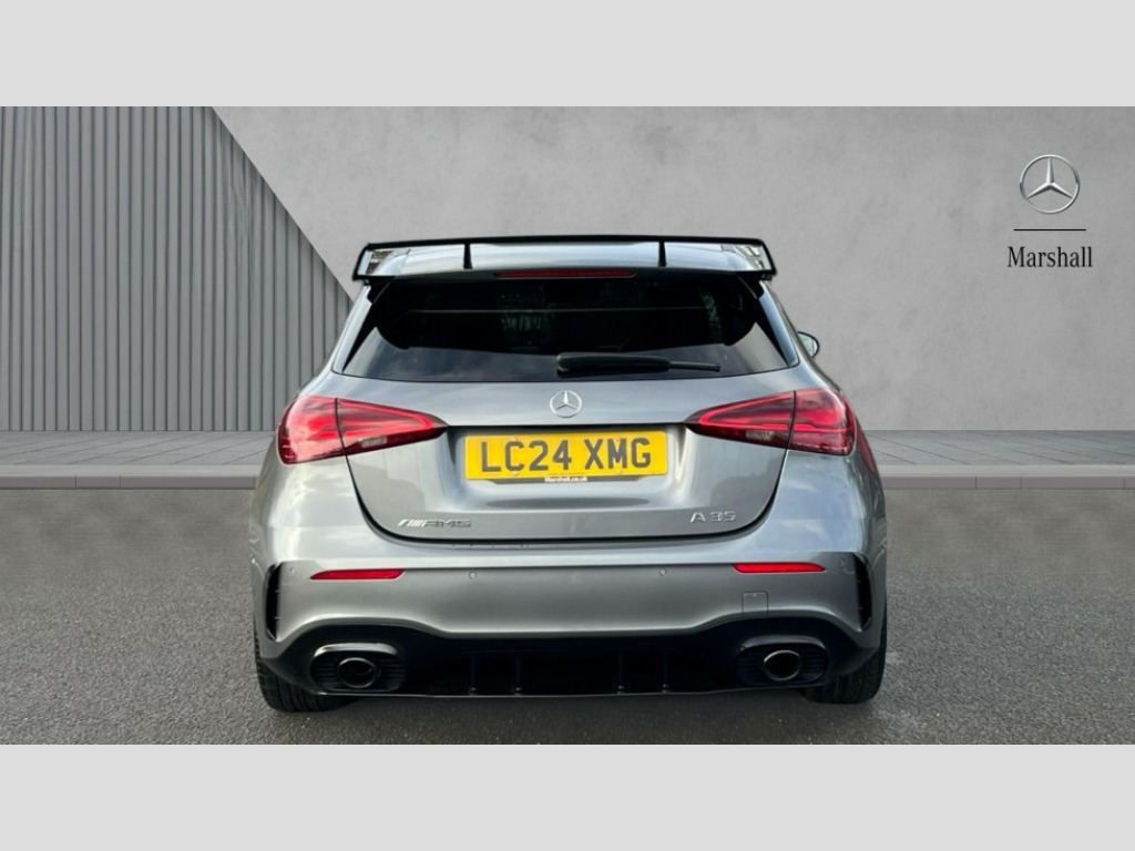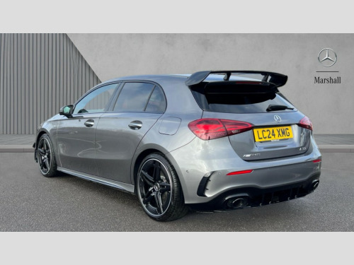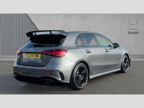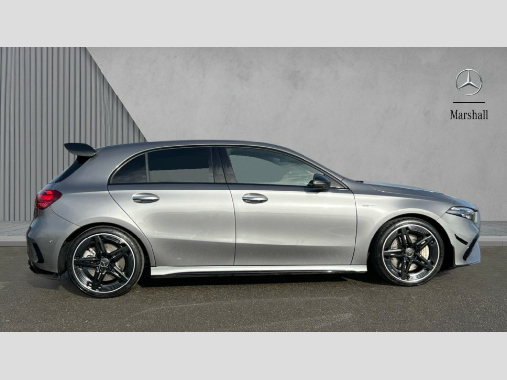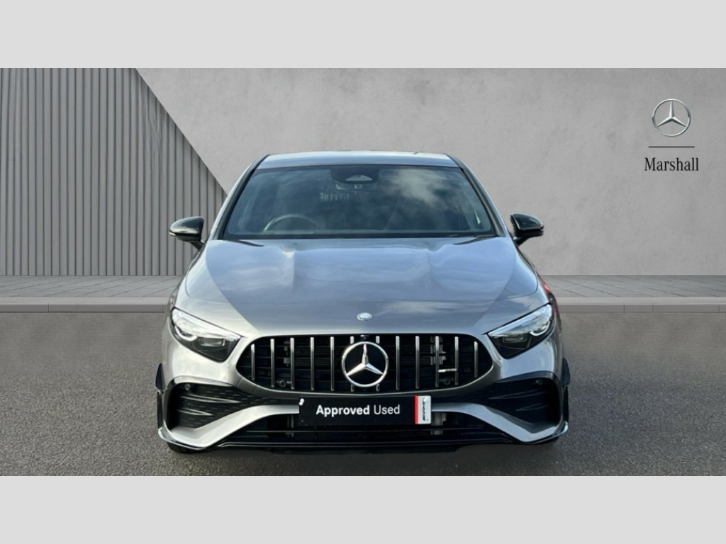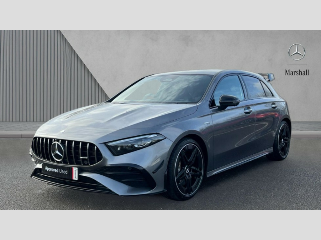 Mercedes-Benz A Class A35 4Matic Premium Plus 5dr Auto 10.25 inch touchscreen central media display, 10.25" Digital instrument cluster display screen, Attention assist, Brake pad wear indicator warning light, Car wash mode, Direct steering, Direction indicators with lane change function, Dual bluetooth interfaces, DYNAMIC SELECT with driving programs (Slippery, Comfort, Sport, Sport+ and Individual), Easy pack tailgate hands-free access, ECO start/stop function, Engine start/stop button, Fluid level warning indicator for fuel, oil, coolant and washer fluid, Fluorescent jacket for driver, Hard-disk navigation, Head up Display, Hey Mercedes Voice activation, Lamp failure indicator, MBUX augmented reality for navigation, MBUX Interior assistant, Mercedes me connect including emergency call system, accident recovery, breakdown and maintenance management, Mercedes me remote services, Outside temperature gauge, Owners manual in English, Pre-installation of private car share, Preinstallation for Mercedes Benz link, Remote boot closing, Service indicator (ASSYST), Smartphone integration with Apple CarPlay and Android auto, Speed sensitive power steering, Tailgate, Traffic sign assist, Trip computer in multifunction display with current consumption indicator, Wireless charging, AMG suspension, Suspension with adaptive damping system, DAB Digital radio, MBUX multimedia system, Mercedes Benz advanced sound system (225 W) with 10 speakers, 1 central speaker, speakers on doors, a tweeter on door,one sub woofer + boost amplifier, 4 Electric Front and Rear windows, Adaptive brake lights, AMG body styling - AMG front apron with front splitter and AMG rear apron and visible exhaust tailpipe trim elements, AMG Front apron with flics as air deflector elements on the outer air intakes, AMG radiator grille with twin blade lamella and AMG Lettering, AMG Rear apron with specific diffuser look with four vertical fins and two round chrome plated tailpipe trim elements with a diameter of 90 mm, AMG spoiler lip on roof, Beltline strips in High gloss Black, Body colour bumpers, Body colour door handles with chrome inserts, Body colour side skirt, Electric adjustable and heated door mirrors with integrated LED side indicators, Front splitter and trim elements on the louvres in the outer air inlets, Front wings wheel arches with TURBO 4MATIC lettering, Headlamp assist automatic headlamp activation, Heat insulating dark tinted rear and rear side windows, Heated glass rear windscreen + timer control, LED daytime running lights, LED High level third brake light, LED tail lamp, Multibeam LED headlamps with adaptive highbeam assist and cornering function, Panoramic sliding sunroof, Privacy glass, Radio aerial, Rain sensing windscreen wipers with two sensitivity settings, Rear fog lights, Rear side wing doors, Rear windscreen wiper, Surround lighting with logo projection, Wider wheel arches for AMG wheels, Window line trim strip in black, 3 seat bench in 2nd row, 40:20:40 split folding rear seats, Air conditioning - Two zone thermotronic luxury automatic climate control with display, AMG floor mats, AMG Performance steering wheel in nappa leather, Automatic child seat recognition sensor, Black air vents with surround in silver chrome, Black roof lining, Brushed stainless steel sports pedals with rubber studs, Electrically adjustable front memory seats including lumbar support and backrest inclination, Front centre armrest with stowage, Front seat backs luggage nets, Heated front seats, Height/reach adjustable steering column, Illuminated AMG front door sills with changeable cover, Interior lighting - 64 colour Ambient lighting, Interior mirror with reading lamps in black and frameless, Rear armrest with 2 cupholders, Seat occupancy sensor for front passenger seat, Silver coloured aluminium gear shift paddles on steering wheel, Single front passenger seat, Sports seats with integrated headrests, Stowage compartment in centre console with retractable cover, Sunvisors with illuminated vanity mirrors, Twin front cupholders, Aerodynamic pack - A Class, AMG night pack - A Class, Light and sight pack - A Class, Mirror package - A Class, Parking pack with 360 degree camera - A Class, Seat comfort pack - A Class, USB pack plus - A Class, 3 rear 3 point seatbelts, ABS with Brake Assist, Active bonnet, Adaptive brake assist with hold function and hill start assist, Black seatbelts, Bonnet with power domes, Childproof locks manually operated for rear doors and electrically operated for rear power windows, Crash responsive emergency lighting, Driver and passenger head and side airbags, Drivers knee airbag, Dual stage driver/passenger airbags, Electronic parking brake, ESP curve dynamic assist, ESP with ASR, Exit warning, Front and rear seatbelt reminder, Front brake calipers with AMG lettering, ISOFIX and top tether child seat fixing points in two outer rear seats, Tyre pressure monitoring system, Warning triangle and first aid kit, Window airbags, Alarm system/interior protection/immobiliser, Guard 360 degree vehicle protection, Keyless entry lock/unlock, Keyless Go, Remote central locking and crash sensor with emergency opening function, Light longitudinal grain aluminium trim, 19" AMG 5 twin spoke light alloy wheels aerodynamically optimised painted in matt black with high sheen rim flange, Summer tyres, Tirefit sealant kit