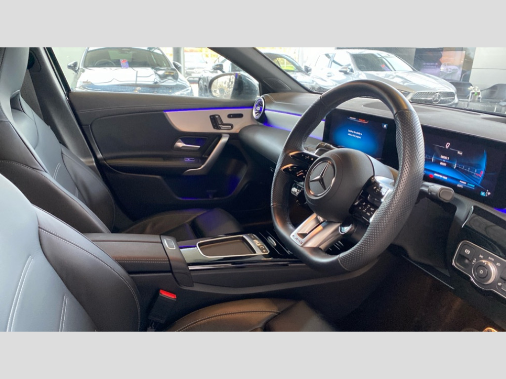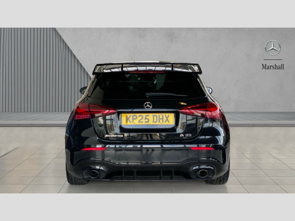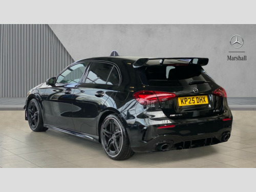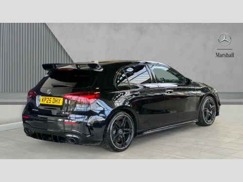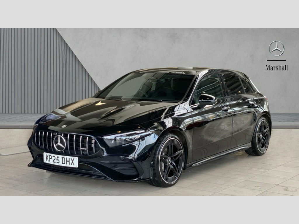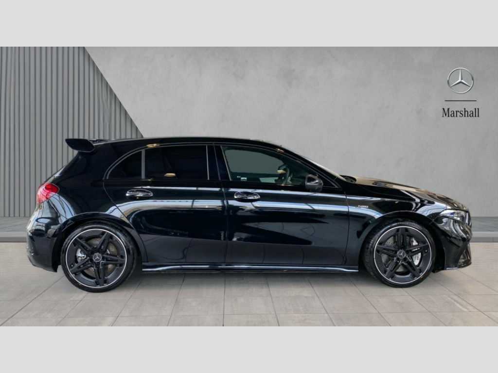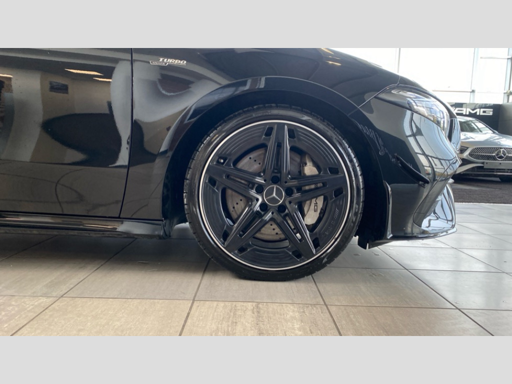 Mercedes-Benz A Class A35 4Matic Premium Plus 5dr Auto 10.25 inch touchscreen central media display, 10.25" Digital instrument cluster display screen, Attention assist, Brake pad wear indicator warning light, Car wash mode, Direct steering, Direction indicators with lane change function, Dual bluetooth interfaces, DYNAMIC SELECT with driving programs (Slippery, Comfort, Sport, Sport+ and Individual), ECO start/stop function, Engine start/stop button, Fingerprint scanner, Fluid level warning indicator for fuel, oil, coolant and washer fluid, Fluorescent jacket for driver, Hard-disk navigation, Head up Display, Hey Mercedes Voice activation, Lamp failure indicator, MBUX augmented reality for navigation, MBUX Interior assistant, Mercedes me connect including emergency call system, accident recovery, breakdown and maintenance management, Mercedes me remote services, Outside temperature gauge, Owners manual in English, Pre-installation of private car share, Remote boot closing, Service indicator (ASSYST), Smartphone integration with Apple CarPlay and Android auto, Speed sensitive power steering, Tailgate, Traffic sign assist, Trip computer in multifunction display with current consumption indicator, Wireless charging, AMG suspension, Suspension with adaptive damping system, DAB Digital radio, MBUX multimedia system, Mercedes Benz advanced sound system (225 W) with 10 speakers, 1 central speaker, speakers on doors, a tweeter on door,one sub woofer + boost amplifier, 4 Electric Front and Rear windows, Adaptive brake lights, AMG body styling - AMG front apron with front splitter and AMG rear apron and visible exhaust tailpipe trim elements, AMG Front apron with flics as air deflector elements on the outer air intakes, AMG radiator grille with twin blade lamella and AMG Lettering, AMG Rear apron with specific diffuser look with four vertical fins and two round chrome plated tailpipe trim elements with a diameter of 90 mm, AMG spoiler lip on roof, AMG sports exhaust system with two round tailpipes attached to the rear apron, Beltline strips in High gloss Black, Body colour bumpers, Body colour door handles with chrome inserts, Body colour side skirt, Electric adjustable and heated door mirrors with integrated LED side indicators, Front splitter and trim elements on the louvres in the outer air inlets, Front wings wheel arches with TURBO 4MATIC lettering, Headlamp assist automatic headlamp activation, Heated glass rear windscreen + timer control, LED daytime running lights, LED High level third brake light, LED tail lamp, Multibeam LED headlamps with adaptive highbeam assist and cornering function, Panoramic sliding sunroof, Privacy glass, Radio aerial, Rain sensing windscreen wipers with two sensitivity settings, Rear fog lights, Rear side wing doors, Rear windscreen wiper, Surround lighting with logo projection, Wider wheel arches for AMG wheels, Window line trim strip in black, 3 seat bench in 2nd row, 40:20:40 split folding rear seats, Air conditioning - Two zone thermotronic luxury automatic climate control with display, AMG floor mats, AMG Performance steering wheel in nappa leather, Automatic child seat recognition sensor, Black air vents with surround in silver chrome, Black roof lining, Brushed stainless steel sports pedals with rubber studs, Electrically adjustable front memory seats including lumbar support and backrest inclination, Front centre armrest with stowage, Front seat backs luggage nets, Height/reach adjustable steering column, Illuminated AMG front door sills with changeable cover, Interior lighting - 64 colour Ambient lighting, Interior mirror with reading lamps in black and frameless, Rear armrest with 2 cupholders, Rear head restraints, Seat occupancy sensor for front passenger seat, Silver coloured aluminium gear shift paddles on steering wheel, Single front passenger seat, Sports seats with integrated headrests, Stowage compartment in centre console with retractable cover, Sunvisors with illuminated vanity mirrors, Twin front cupholders, Aerodynamic pack - A Class, AMG night pack - A Class, Light and sight package - A Class, Mirror package - A Class, Parking pack with 360 degree camera - A Class, Seat comfort pack - A Class, USB pack plus - A Class, Winter pack - A Class, 3 rear 3 point seatbelts, ABS with Brake Assist, Active bonnet, Adaptive brake assist with hold function and hill start assist, Black seatbelts, Bonnet with power domes, Childproof locks manually operated for rear doors and electrically operated for rear power windows, Crash responsive emergency lighting, Driver and passenger head and side airbags, Drivers knee airbag, Dual stage driver/passenger airbags, Electronic parking brake, ESP curve dynamic assist, ESP with ASR, Exit warning, Front and rear seatbelt reminder, Front brake calipers with AMG lettering, ISOFIX and top tether child seat fixing points in two outer rear seats, Tyre pressure monitoring system, Warning triangle and first aid kit, Window airbags, Alarm system/interior protection/immobiliser, Guard 360 degree vehicle protection, Keyless entry lock/unlock, Keyless Go, Remote central locking and crash sensor with emergency opening function, Light longitudinal grain aluminium trim, 19" AMG 5 twin spoke light alloy wheels aerodynamically optimised painted in matt black with high sheen rim flange, Summer tyres, Tirefit sealant kit