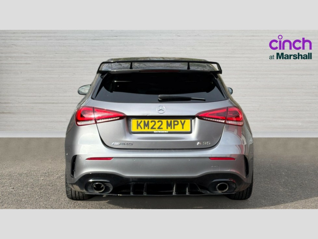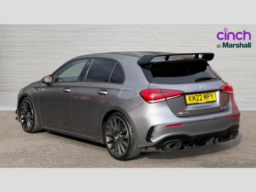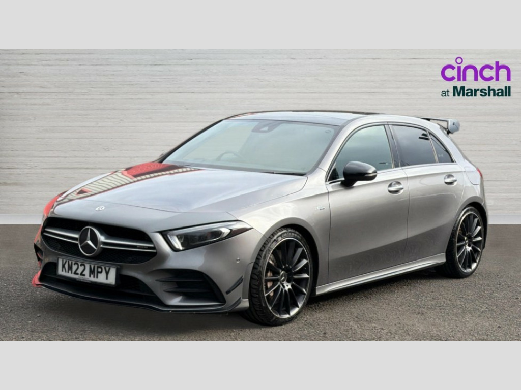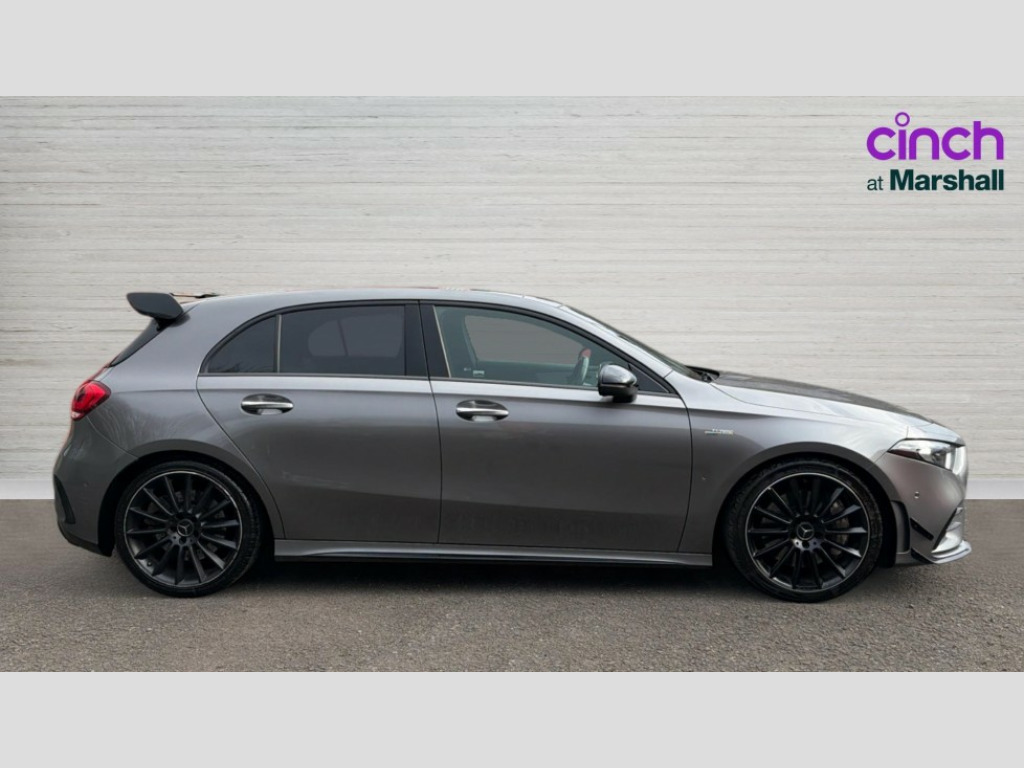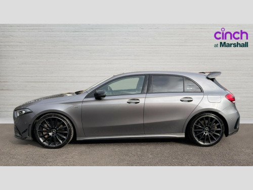 Mercedes-Benz A Class A35 4Matic Premium Plus Edition 5dr Auto 10.25" Digital instrument cluster display screen, 10.25" media display, 180 degree rear view camera with parking guidelines, Active parking assist with visual and audible warning of detected obstacles, Attention assist, Brake pad wear indicator warning light, Car wash mode, Direct steering, Dual bluetooth interfaces, DYNAMIC SELECT with driving programs (Slippery, Comfort, Sport, Sport+ and Individual), ECO start/stop function, Fluid level warning indicator for fuel, oil, coolant and washer fluid, Hard-disk navigation, Hey Mercedes Voice activation, Lamp failure indicator, Lane keeping system, Mercedes me connect including emergency call system, accident recovery, breakdown and maintenance management, Mercedes me remote services, Outside temperature gauge, Owners manual in English, Pre-installation for private car sharing, Preinstallation for Mercedes Benz link, Service indicator (ASSYST), Smartphone integration with Apple CarPlay and Android auto, Traffic sign assist, Trip computer, Ultrasonic sensors positioned in the front and rear bumpers, Rear axle multi-link, 2 USB ports (type C) in rear stowage compartment and one in front of center console, DAB Digital radio, MBUX multimedia system with DAB digital radio and touchpad including satellite navigation, Mercedes-Benz sound system - 100W, 4 Electric Front and Rear windows, Adaptive brake lights, AMG bodystyling - Front apron with splitter in chrome, rear apron with chrome trim and chrome visible trim elements in tailpipe, AMG Front apron with flics as air deflector elements on the outer air intakes, AMG radiator grille with twin blade lamella and AMG Lettering, AMG Rear apron with specific diffuser look with four vertical fins and two round chrome plated tailpipe trim elements with a diameter of 90 mm, AMG spoiler lip on roof, AMG Sports exhaust system with two round tailpipes measuring 90 mm in diameter attached in rear apron, AMG lettering plus ribbing on the inside of the, Automatic headlights, Black weather strip, Body colour bumpers, Body colour door handles, Body colour side skirt, Electric adjustable and heated door mirrors with integrated LED side indicators, Front wings wheel arches with TURBO 4MATIC lettering, Headlamp assist automatic headlamp activation, Heated glass rear windscreen + timer control, High gloss black beltline, LED daytime running lights, LED High level third brake light, LED tail lamp, Multibeam LED headlights with adaptive highbeam assist plus, Panoramic sliding sunroof, Privacy glass, Radio aerial, Rain sensing windscreen wipers with two sensitivity settings, Rear fog lights, Rear side wing doors, Rear wiper, Trim elements on louvres in outer air inlets in high gloss black, Wider wheel arches for AMG wheels, Window line trim strip in high gloss black, 3 seat bench in 2nd row, 40:20:40 split folding rear seats, AMG Performance steering wheel in nappa leather, Auto Mercedes-Benz child seat recognition sensor, Black air vents with surround in silver chrome, Black roof lining, Brushed stainless steel sports pedals with rubber studs, Controller on centre console with chrome surround, Electrically adjustable front memory seats including lumbar support, Floor mats with stitched edging and AMG lettering, Front centre armrest with storage compartment, Front seat backs luggage nets, Front seat cushion length adjustment, Heated front seats, Height/reach adjustable steering column, Illuminated AMG front door sills with changeable cover, Interior lighting - 64 colour Ambient lighting, Interior mirror with reading lamps in black and frameless, Rear armrest with 2 cupholders, Rear head restraints, Seat occupancy sensor for front passenger seat, Silver coloured aluminium gear shift paddles on steering wheel, Single front passenger seat, Sports seats with integrated headrests, Stowage compartment in centre console with retractable cover, Sunvisors with illuminated vanity mirrors, Touchpad on center console, Twin front cupholders, Two zone thermotronic luxury automatic climate control, Aerodynamic pack - A Class, AMG night pack - A Class, Light and sight pack - A Class, Mirror package - A Class, Seat comfort pack - A Class, 3 rear 3 point seatbelts, ABS with Brake Assist, Active bonnet, Adaptive brake assist with hold function and hill start assist, Black seatbelts, Childproof locks manually operated for rear doors and electrically operated for rear power windows, Crash responsive emergency lighting, Driver and passenger head and side airbags, Drivers knee airbag, Dual stage driver/passenger airbags, Electronic parking brake, ESP curve dynamic assist, ESP with ASR, Front and rear seatbelt reminder, Front brake calipers with AMG lettering, ISOFIX and top tether child seat fixing points in two outer rear seats, Perforated front brake discs, Tyre pressure monitoring system, Warning triangle and first aid kit, Window airbags, Alarm system/interior protection/immobiliser, Keyless entry lock/unlock, Keyless Go, Remote central locking and crash sensor with emergency opening function, Urban guard vehicle protection system with immobiliser and interior protection, Light aluminium with longitudinal grain interior trim, 19" AMG multi-spoke matt black painted light alloy wheels with high sheen finish, Summer tyres, Tirefit sealant kit