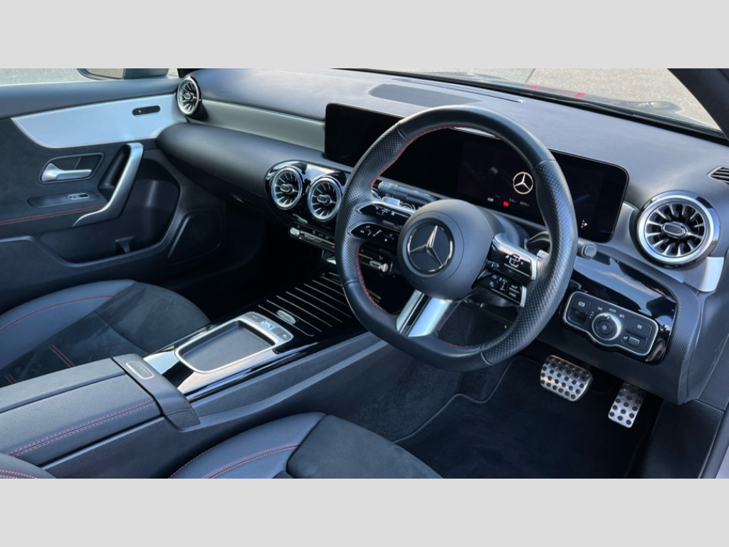 Mercedes-Benz A Class A200 AMG Line Executive 4dr Auto 10.25 inch touchscreen central media display, 10.25" Digital instrument cluster display screen, Attention assist, Blind spot assist, Brake pad wear indicator warning light, Car wash mode, Cruise control + speed limiter, Direct steering, Direction indicators with lane change function, Dual bluetooth interfaces, DYNAMIC SELECT with a choice of driving modes (ECO, Comfort, Sport and Individual), ECO start/stop function, Engine start/stop button, Fingerprint scanner, Fluid level warning indicator for fuel, oil, coolant and washer fluid, Fluorescent jacket for driver, Hard-disk navigation, Hey Mercedes Voice activation, Lamp failure indicator, Lane keeping system, Mercedes me connect including emergency call system, accident recovery, breakdown and maintenance management, Mercedes me remote services, Outside temperature gauge, Owners manual in English, Pre-installation of private car share, Preinstallation for Mercedes Benz link, Remote boot closing, Service indicator (ASSYST), Smartphone integration with Apple CarPlay and Android auto, Speed limit assist, Speed sensitive power steering, Trip computer in multifunction display with current consumption indicator, Wireless charging, Lowered comfort suspension, DAB Digital radio, MBUX multimedia system, Mercedes Benz sound system (100 W) with 6 speakers, 4 Electric Front and Rear windows, Adaptive brake lights, AMG body styling - AMG front apron with front splitter and AMG rear apron and visible exhaust tailpipe trim elements, Body colour bumpers, Body colour door handles with chrome inserts, Body colour side skirt, Body coloured door mirrors, Chrome beltline strips, Diamond radiator grille with pins in fine star pattern, Electric adjustable and heated door mirrors with integrated LED side indicators, Exhaust system with 2 visible tailpipe trim elements and rear apron, Headlamp assist automatic headlamp activation, Heat insulating dark tinted rear and rear side windows, Heated glass rear windscreen + timer control, LED High Performance headlamps including integral LED daytime running lamps and adaptive highbeam assist, LED tail lamp, Privacy glass, Radio aerial, Rain sensing windscreen wipers with two sensitivity settings, Rear boot, Rear fog lights, Rear side wing doors, Third brake light featuring LED technology, Window line trim strip in chrome, 3 seat bench in 2nd row, 3 Spoke flat bottom leather multi function steering wheel with perforated leather in grip area, 4 way lumbar support, 40:20:40 split folding rear seats, Air conditioning - One zone THERMATIC automatic climate control with automatically controlled air distribution, AMG floor mats, Automatic child seat recognition sensor, Black air vents with surround in silver chrome, Black roof lining, Brushed stainless steel sports pedals with rubber studs, Front centre armrest with stowage, Front door sills with Mercedes Benz lettering, Front seat backs luggage nets, Front sports seats with adjustable head restraints, Galvanished gear shift paddles on steering wheel, Heated front seats, Height/reach adjustable steering column, Interior lighting - 64 colour Ambient lighting, Interior mirror with reading lamps in black and frameless, Rear armrest with 2 cupholders, Seat occupancy sensor for front passenger seat, Single front passenger seat, Stowage compartment in centre console with retractable cover, Sunvisors with illuminated vanity mirrors, Twin front cupholders, Keyless go comfort pack - A Class, Light and sight package - A Class, Mirror package - A Class, Parking pack with 180 degree view - A Class, Seat comfort pack - A Class, USB pack plus - A Class, 3 rear 3 point seatbelts, ABS with Brake Assist, Active bonnet, Active brake assist includes forward collision warning system with autonomous braking, Adaptive brake assist with hold function and hill start assist, Black seatbelts, Bonnet with power domes, Childproof locks manually operated for rear doors and electrically operated for rear power windows, Crash responsive emergency lighting, Driver and passenger head and side airbags, Drivers knee airbag, Dual stage driver/passenger airbags, Electronic parking brake, ESP curve dynamic assist, ESP with ASR, Front and rear seatbelt reminder, ISOFIX and top tether child seat fixing points in two outer rear seats, Tyre pressure monitoring system, Warning triangle and first aid kit, Window airbags, Alarm system/interior protection/immobiliser, Guard 360 degree vehicle protection, Remote central locking and crash sensor with emergency opening function, Light longitudinal grain aluminium trim, 18" AMG 5 twin spoke light alloy wheels,aerodynamically optimised, painted in black with high sheen finish, Summer tyres, Tirefit sealant kit
