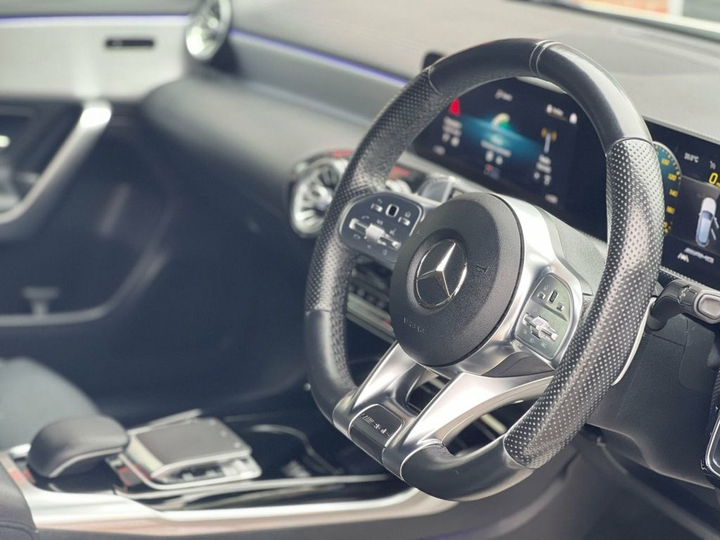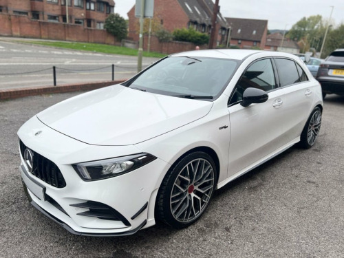 This 2019 Mercedes-Benz A Class A35 AMG Premium finished in Polar White boasts exceptionally low mileage for its age, having covered just 30,000 miles with a Full Mercedes-Benz / Specialist Service History carried out at 7117, 12980, 1788, 20049, 22260 and 30145 miles. This four wheel drive model is powered by a 2.0 litre petrol engine and meets Euro 6 emission standards. It comes equipped with the desirable AMG Premium Package, which includes keyless entry, front and rear parking assistance, and heated seats for added comfort. Further enhancing the driving experience are LED high performance headlamps with integrated daytime running lights, a Mercedes-Benz sound system delivering 100W of audio, and THERMOTRONIC luxury automatic climate control with a two zone display. Connectivity is also well catered for with a dual Bluetooth interface and two USB Type C ports. The performance of this A35 AMG is truly impressive, with a rapid 0-60mph acceleration time of just 4.7 seconds, demonstrating its dynamic capabilities. This remarkable acceleration figure highlights how this particular vehicle offers a more engaging driving experience compared to many other similar models on the market. The combination of its potent engine, advanced four wheel drive system, and the comprehensive AMG Premium features makes this Mercedes-Benz A Class a compelling choice for those seeking both performance and luxury. Leather - Black, AMG Style Package, Polar White, 18in Alloy Wheels - AMG 5 Twin Spoke Des, ABS - Anti-Lock Braking System with BAS , AMG Bodystyling - Front and Rear Apron, AMG Premium Package, AMG Radiator Grille with Twin Blade Lame, AMG Suspension, ATTENTION Assist, Active Bonnet - Pedestrian Safety Measur, Active Brake ASSIST, Active Lane Keeping Assist, Adaptive Brake Assist with Hold Function, Adaptive Brake Lights, Air Conditioning - THERMOTRONIC Luxury A, Air Vents with Surround and Cruciform No, Airbag - Kneebag for Driver, Airbags - Dual Stage - Driver and Front , Airbags - Windowbags for Driver and Fron, Alarm System with Immobiliser and Interi, Automatic Child Seat Recognition Se