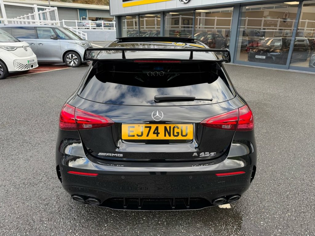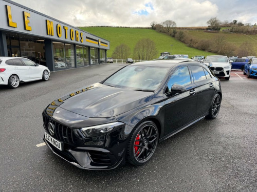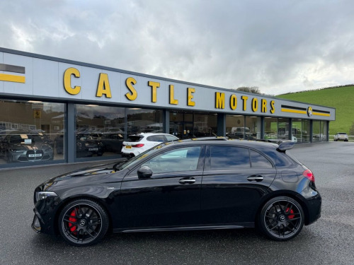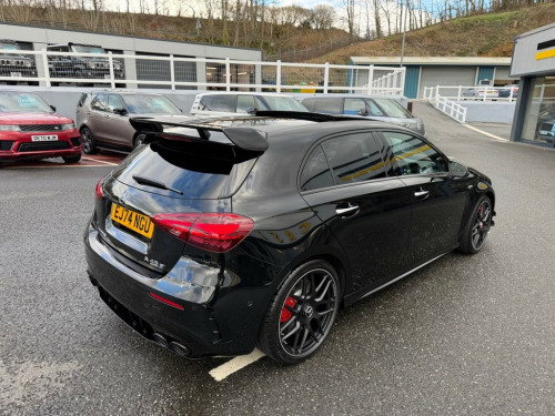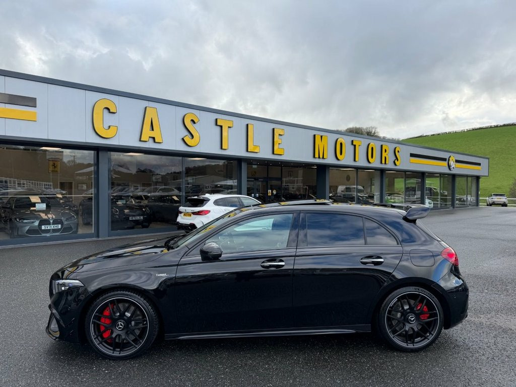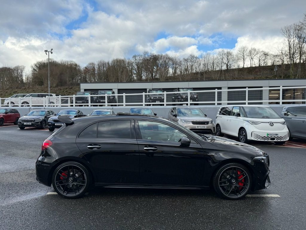 A45 S AMG 4MATIC+ PLUS AERO 421PS. Metallic Black with Black & Grey AMG Performance seats with Yellow inserts, 19 inch cross spoke AMG Black wheels with Red calipers, AMG Aerodynamic Package, Premium Pack, panoramic glass sunroof, Multibeam LED headlights, AMG Suede & leather steering wheel, heated and electric memory adjustable seats, interior ambient lighting plus Mercedes puddle lighting, 360 surround and reverse cameras, switchable AMG exhaust in Black, Burmester Premium HiFi, Dynamic Driving Mode, wireless charging, Apple CarPlay & Android Auto, radar adaptive cruise control and more. One owner just turned 6,000 miles with Mercedes service history, perfect specification A45S beautiful throughout 19in Alloy Wheels - AMG Cross-Spoke Forg, ABS - Anti-Lock Braking System with BAS , Active Bonnet - Pedestrian Safety Measur, Active Brake ASSIST, Active Lane Keeping Assist, Adaptive Brake Assist with Hold Function, Adaptive Brake Lights, Air Conditioning - Air Vents Black with , Air Conditioning - THERMOTRONIC Luxury A, Airbag - Kneebag for Driver, Airbags - Dual Stage - Driver and Front , Airbags - Head and Sidebags - Driver and, Airbags - Windowbags for Driver and Fron, Alarm System with Immobiliser and Interi, AMG A 45 S Bodystyling, AMG Aerodynamics Package, AMG Bodystyling - AMG Front Apron with F, AMG Brushed Stainless Steel Sports Pedal, AMG Centre Console - Decidedly Sporty wi, AMG