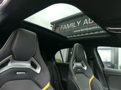 A truly stunning example of a Mercedes Benz A45 AMG S Plus finished in Obsidian black with two tone titanium grey, black and yellow leather interior throughout. Boasting a wealth of extras including Apple car play, heated front seats, 360 camera, 10" display screen, keyless go, Burmester surround sound, head up display, 19" cross forged alloys and much more! Carrying full service history and 1 free service left to claim on the plan, this is not to missed. Presented in excellent condition both inside and out complete with 2 x keys + full HPI certificate + part exchange and excellent finance rates avaibale on this model! Family Autos are proud to have the highest review rating in North Lincolnshire. Please read our reviews on Auto Trader from trusted customers.