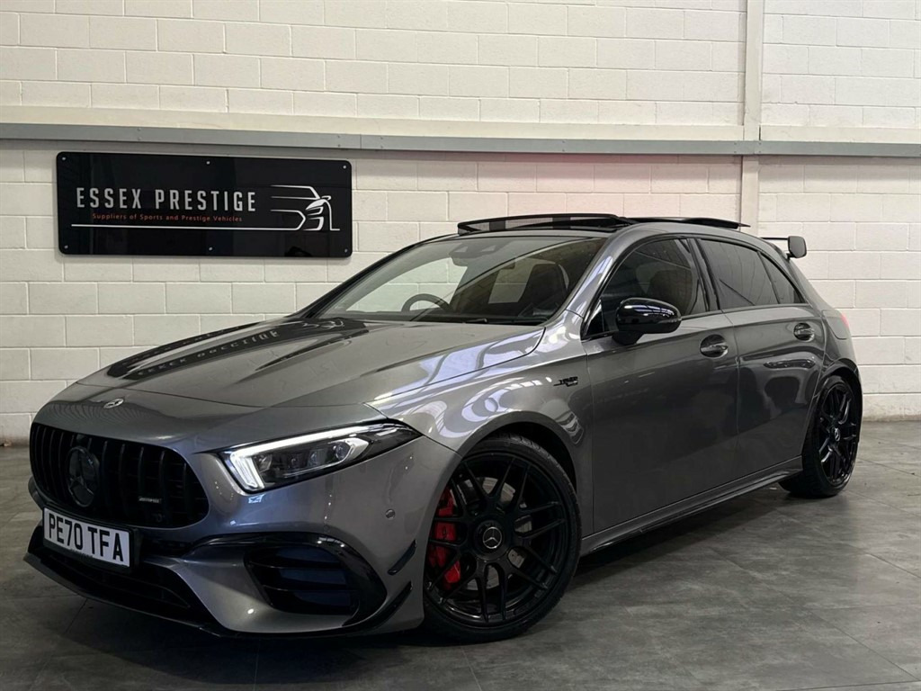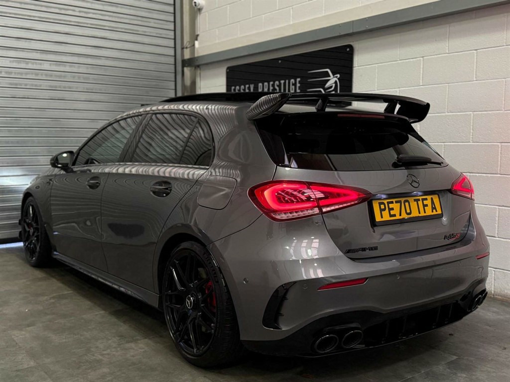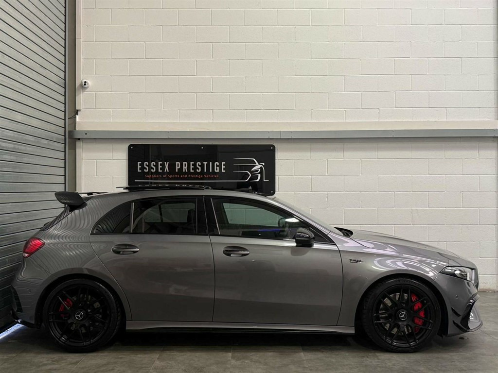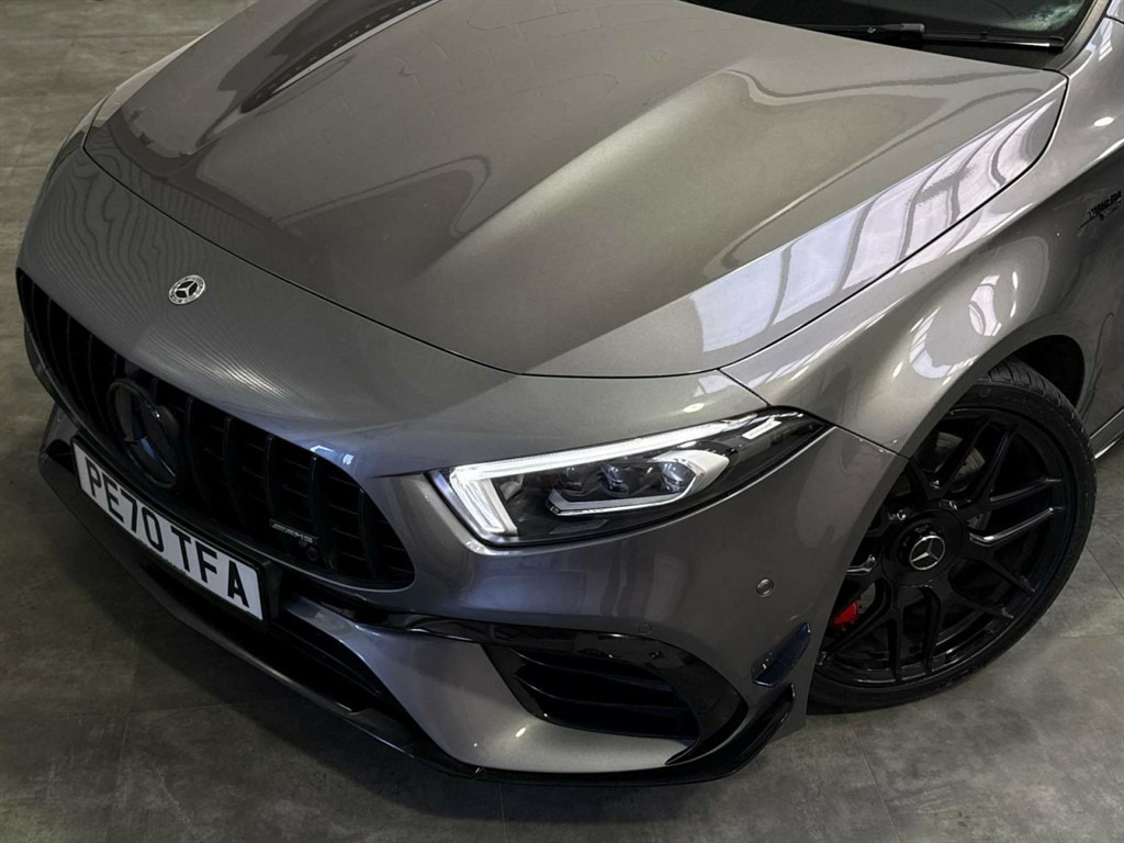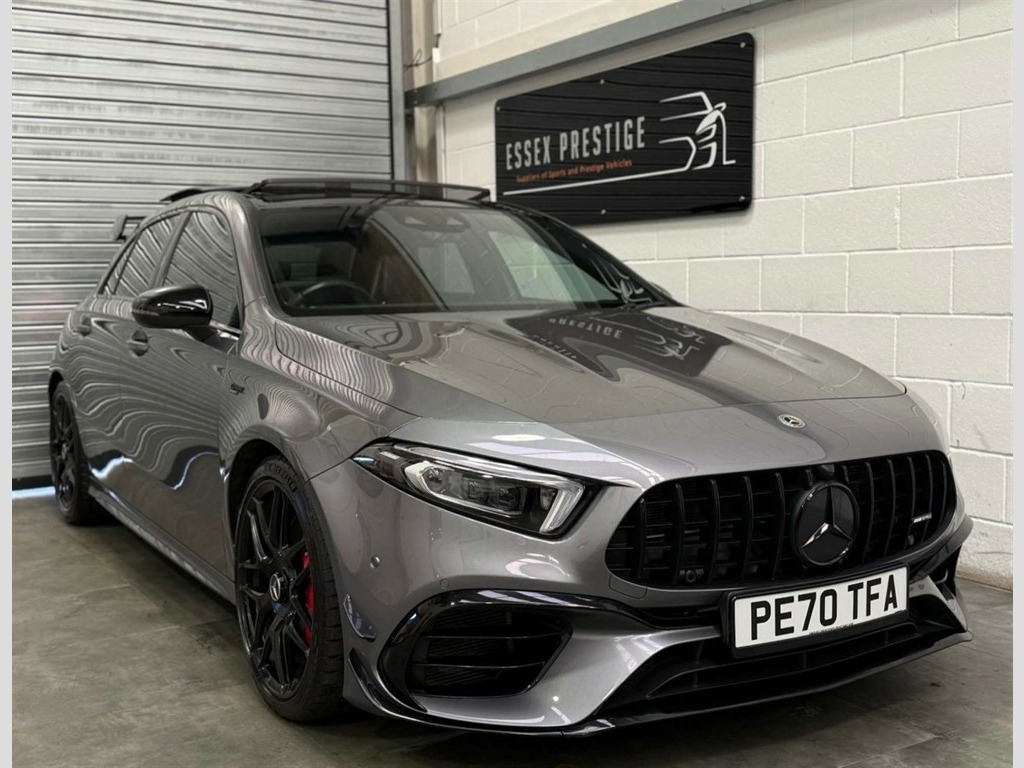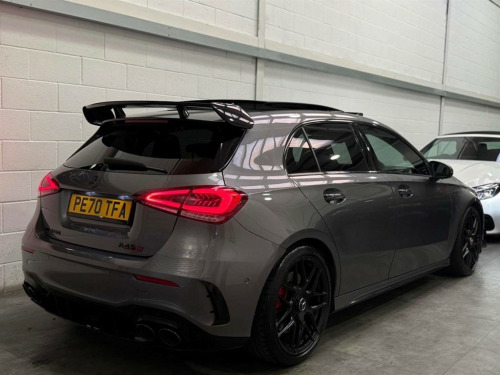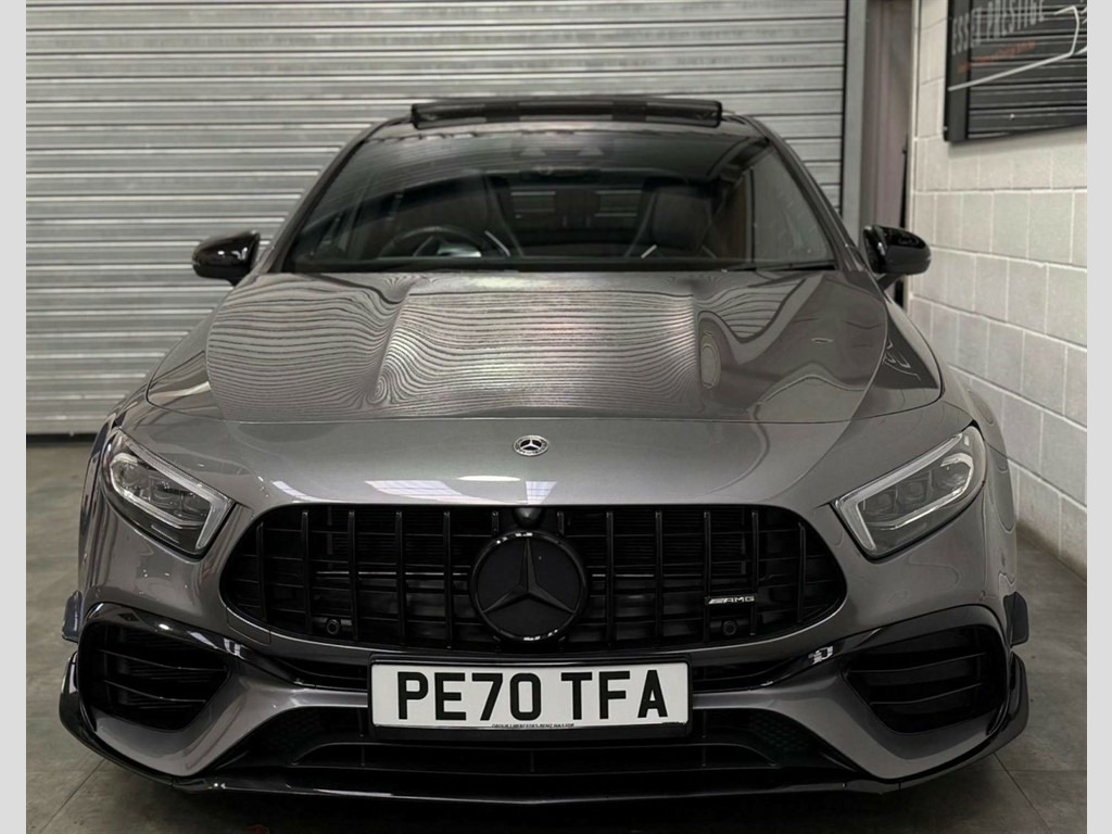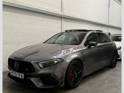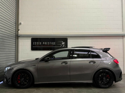Full Service History, Sat Nav, Aero Bodykit, Black Pack, Pan Roof, Rear View Camera, Burmester Sound System, Starlight Ceiling, Sports Exhaust, 10.25in Media Display,19in Alloy Wheels - AMG Forged Cross-Spoke,ABS - Anti-Lock Braking System with BAS - Brake Assist,AMG A 45 S Bodystyling,AMG Aerodynamics Package,AMG Bodystyling - Front and Rear Apron,AMG Centre Console - Decidedly Sporty with Raised Front Section,AMG Centre Console is Finished with Trim in Silver Chrome,AMG Drive Unit including AMG Dynamic Select Controller,AMG Drivers Package with Top Speed of 170mph,AMG Dynamic Select with a Choice of Driving Modes,AMG High-Performance Braking System with Red Brake Calipers and Black AMG Lettering at the Front,AMG Instrument Cluster with Colour Display and AMG Menu,AMG Leather Package,AMG Night Package,AMG Performance 4MATIC Plus with Torque Control,AMG Speed-Sensitive Steering with Two Sets of Steering Characteristics,AMG Sports Pedals in Brushed Stainless Steel with Rubber Studs,AMG Track Pace - Records Lap Times on the Racetrack,ATTENTION Assist,Active Bonnet - Pedestrian Safety Measure which Detects an Impact and Raises Bonnet by 65mm,Active Brake ASSIST,Active Lane Keeping Assist,Adaptive Brake Assist with Hold Function and Hill Start Assist,Adaptive Brake Lights,Air Conditioning - THERMOTRONIC Luxury Automatic Climate Control - Two-Zone with Display,Air Vents - Black with Silver Chrome Elements,Airbag - Kneebag for Driver,Airbags - Dual Stage - Driver and Front Passenger,Airbags - Windowbags for Driver and Front Passenger,Alarm System with Immobiliser and Interior Protection - Thatcham Category 1,Automatic Child Seat Recognition Sensor,Beltline Strips - High Gloss Black,Blind Spot Assist,Bonnet with Power Domes,Brake-Pad Wear Warning Indicator,Bumpers - Body Coloured,Burmester Surround Sound System,Car Wash Mode,Centre Armrest - Front with Stowage,Childproof Locks - Manually Operated for Rear Doors and Electrically Operated for Rear Power Windows,Crash-Responsive Emergency Lighting,Cruise Control with Limiter,DAB Digital Radio Tuner,Direct Steer Speed-Sensitive Power Steering,Door Handles - Body Coloured,Door Mirrors - Electrically Adjustable and Heated with Integrated LED Indicators,Dual Bluetooth Interfaces,ESP - Electronic Stability Programme - Three-Stage,ESP - Electronic Stability Programme with ASR - Acceleration Skid Control,ESP Curve Dynamic Assist,Electric Parking Brake,Electric Windows - 4,Exhaust System - AMG Real Performance Sound,Exhaust System - Two Round Twin Tailpipe Trim Elements,Exhaust System with Valve Control Dependant on Drive Program,Exit Warning Assist,First Aid Kit and Warning Triangle,Floor Mats - AMG,Glass - Rear Windscreen - Heated with Timer Control,Hard-Disk Navigation,Headlamp Assist - Automatic Headlamp Activation,Heated Front Seats,Hey Mercedes - Voice Activation,High Level Third Brake Light - LED,ISOFIX and Top-Tether Child Seat Fixing Points in Rear - Two Outer Seats,Illuminated Front Door Sills with Mercedes-Benz Lettering,Instrument Cluster - Outside Temperature Display,Instrument Cluster - Service Indicator ASSYST,Instrument Cluster - Trip Computer in Multi-Function Display with Current Fuel Consumption Indicator,Instrument Display - 10.25in Display,Integrated Radio Aerial,Interior 64-Colour Ambient Lighting,Interior Mirror with Reading Lamps in Black and Frameless,KEYLESS-GO - Keyless Locking-Unlocking,KEYLESS-GO Starting Function,LED Tail Lights,Light Failure Indicator,Light and Sight Package,Live Traffic Information,Luggage Compartment Cover,MBUX Augmented Reality for Navigation,MBUX Multimedia System,MULTIBEAM LED Headlights with Adaptive Highbeam Assist Plus,Mercedes Me - Remote Services,Mirror Package,Multi-Contour Seat Package,Owners Manual - English,Panoramic Glass Sunroof,Parking Package,Pre-Installation for Private Car Share,Privacy Glass,Radiator Grille - AMG-Specific Radiator Grille in High-Gloss Chrome with AMG Lettering,Rain-Sensing Windscreen Wipers with Two Sensitivity Settings,Rear Armrest with Two Cup Holders,Rear Axle - Multi-Link,Rear Fog Light,Rear Windscreen Wiper,Remote Central Locking and Crash Sensor with Emergency Opening Function,Reversing Camera with Parking Guidelines - 180 Degree View,Roof Lining - Black,Seat Belts - Black,Seat Belts - Rear Three-Point - 3,Seat Belts Reminder - Front and Rear,Seat Comfort Package,Seat Occupancy Sensor - Front Passenger Seat,Seats - AMG Performance,Seats - AMG Performance High-End Package,Seats - Rear Seat Backrests - Split Folding 40-20-40,Smartphone Integration,Speed Limit Assist,Steering Column - Manually Adjustable for Height and Reach,Steering Wheel - AMG Performance in Nappa Leather - Dinamica Microfibre Sporty 3-Spoke with Flattened Lower Section - Silver-coloured Aluminium Gearshift Paddles,Summer Tyres,Sun Visors with Illuminated Vanity Mirrors,Suspension with Adaptive Damping System,TIREFIT Tyre-Sealant Kit,Touchpad on Centre Console,Traffic Sign Assist,Trim - Light Longitudinal-Grain Aluminium,Tyre Pressure Monitoring System,URBAN GUARD Vehicle Protection,USB - Type C - 2 Ports in Rear of Stowage Compartment and 1 in Front Centre Console,Wheel Arches - Flared AMG Wings with TURBO 4MATIC+ Lettering,Wider Wheel Arches for AMG Wheels,Window Line - High-Gloss Black,Wireless Charging,Mountain Grey,Driving Assistance Package,Leather - Black