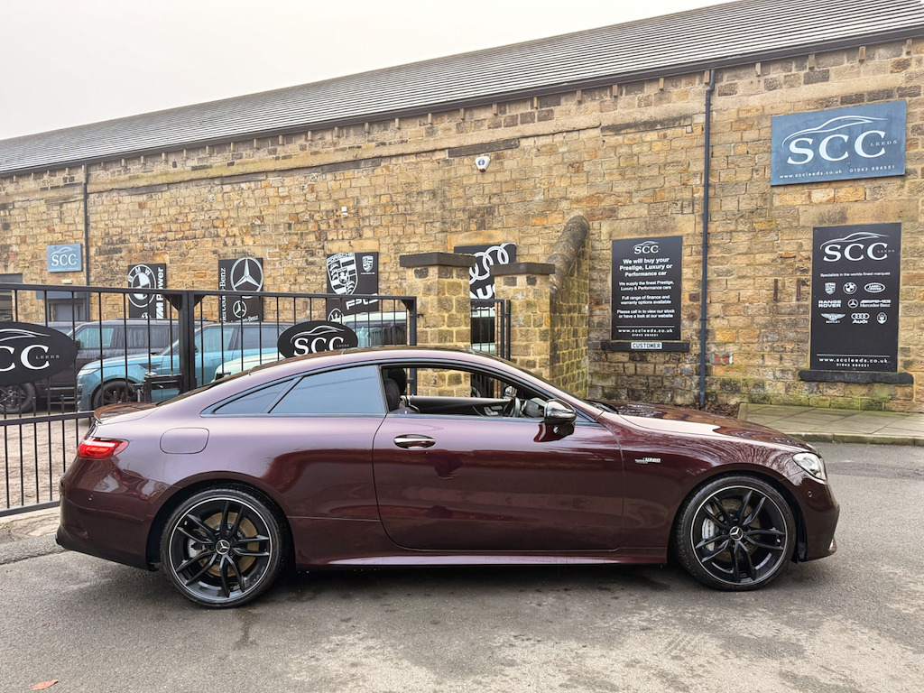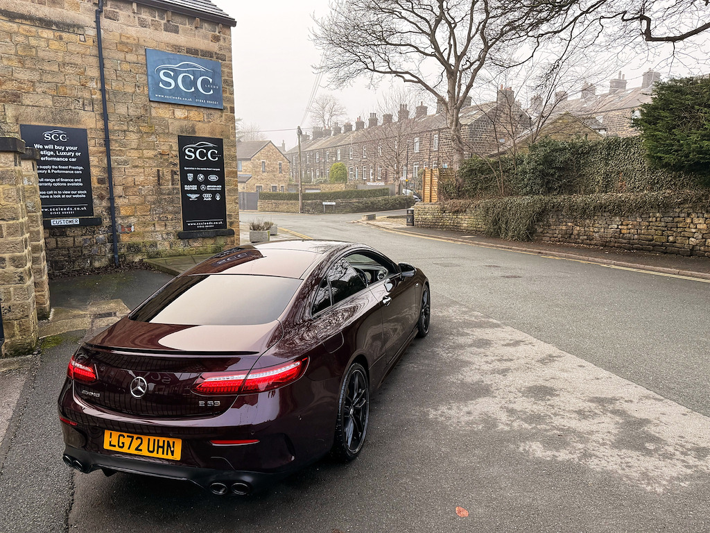 2022 (22) Mercedes-Benz E-Class Coupe – Night Edition Premium Plus £48,649 | 2 Owners | Full Mercedes-Benz Service History Next due back end of 2026. Full PPF & Ghost immobiliser fitted. Finished in the stunning and rarely seen Rubellite Red, this 2022 (22) Mercedes-Benz E-Class Coupe Night Edition Premium Plus perfectly blends AMG-inspired performance styling with luxury coupe elegance. The deep metallic paintwork contrasts beautifully with the Night Edition gloss black exterior details, creating a bold, aggressive presence that truly stands out. The sleek coupe silhouette is enhanced by gloss black styling elements, while the Anodised Silver AMG brake calipers with AMG lettering add a subtle motorsport edge behind the wheels. Signature LED rear lights complete the look, ensuring this E-Class looks just as striking after dark. Interior & Performance-Focused Luxury Inside, the cabin continues the sporty theme with the AMG Carbon Fibre Centre Console trim, creating a modern, driver-focused environment. As a Premium Plus model, this E-Class Coupe benefits from a high level of comfort, technology and convenience, making every journey effortless. Apple CarPlay and Android Auto smartphone integration ensure seamless connectivity, while Mercedes-Benz’s intuitive layout keeps everything exactly where you need it when driving. Safety & Driver Assistance ATTENTION Assist to monitor driver fatigue Advanced Mercedes-Benz safety systems for confident, controlled driving With just two previous owners and a full Mercedes-Benz service history, this Night Edition Coupe has been exceptionally well maintained and presents in excellent condition. Finance & Purchasing Options We have some of the best finance deals available, working with the nation’s leading finance brokers as well as directly with most major banks, allowing us to tailor packages to suit individual needs and budgets. Part exchanges are welcomed, and we can also arrange nationwide delivery for your convenience. Origin of the Name “Rubellite” - Rubellite is actually a type of gemstone. It’s a variety of tourmaline with a red to pink-red colour, sometimes resembling a ruby. The name comes from the Latin “ruber”, meaning red. Mercedes-Benz borrowed the name for this metallic red paint, because It evokes luxury and exclusivity (like a gemstone). It suggests depth, vibrancy, and richness in the colour, much like the gemstone itself. So essentially, Mercedes uses Rubellite as a marketing name to link the deep, jewel-like red of the car’s paint with the richness and sophistication of a rare gemstone. Contact us today to arrange a viewing or test drive 01943 884551 20in Alloy Wheels - AMG 5-Twin-Spoke Design - Painted in Matt Black with High-Sheen Rim Flange,ABS - Anti-Lock Braking System,AMG Bodystyling - Front Apron with Distinctive Air Intakes - AMG Side Sill Panels - AMG Rear Apron with Diffuser Look,AMG Boot Lid Spoiler in Body Colour,AMG Dynamic Select with a Choice of Driving Modes,AMG Performance Exhaust System,AMG Ride Control Sports Suspension,AMG Specific Grille with Integrated Star in High-Gloss Black and Chrome with AMG Lettering,AMG Start-Up Logo in Central Section,AMG Steering Wheel Buttons,ATTENTION Assist,Active Bonnet - Pedestrian Safety Measure which Detects an Impact and Raises Bonnet,Active Brake ASSIST,Active Park Assist,Active Parking Assist,Adaptive Brake Lights,Adaptive Brake System with HOLD Function and Brake Drying in the Wet,Airbag - Kneebag for Driver,Airbags - Driver and Front Passenger with Extended Adaptivity for Front Passenger Airbag,Airbags - Sidebag for Driver and Front Passenger - Combined Thorax-Pelvis Bag,Airbags - Windowbags,Alarm System with Immobiliser and Interior Protection,Anodised Silver Brake Calipers with AMG Lettering,Arrow-Shaped Wing Signet in High-Gloss Black Above Turbo 4MATIC Plus Badging,Automatic Child Seat Recognition Sensor,BITURBO 4MATIC Plus Lettering on Front Wings,Belt Feeder,Black Chrome-Plated Twin Tailpipe Trim Elements,Blind Spot Assist,Brake Wear Warning Display,Burmester Surround Sound System,Central Locking with Interior Switch-Automatic Locking and Crash Sensor with Emergency Opening Function,Central Stowage Compartment with 12V Socket in Centre Console,Cruise Control with Variable Speed Limiter,DAB Digital Radio,Door Pins in Black,ESP - Electronic Stability Programme,Electric Parking Brake,Electric Windows - 4 - With One-Touch Opening and Closing - including Obstruction Sensors,Electronic Key - Chrome Surround,Exhaust System - Visible Two Twin-Pipe Exhaust System Integrated into the Bumper,Exterior Mirror Housings in High-Gloss Black,First Aid Kit and Warning Triangle,Floor Mats - with Black Leather Edging - Red Piping - AMG Logo,Front Apron in High Gloss Black,Front Centre Armrest with Stowage Compartment,Front Door Sill Panels with AMG Lettering - Illuminated,Glasses Compartment in Overhead Control Panel,Glove Compartment - Lockable - Air-Conditioned and Illuminated,Head Restraints for Driver and Front Passenger 4-Way and in Rear 2-Way Adjustability,Heated Front Seats,High-Resolution 12.3in Multimedia Colour Display,ISOFIX Child Seat Attachment Points - Rear Seats,Instrument Cluster - AMG Main Menu including RACETIMER and AMG Start-Up Display,Instrument Cluster - Widescreen 12.3in Cockpit Display,Interior 64-Colour Ambient Lighting,KEYLESS-GO Entry and Starting Function,LED High Performance Headlights,Live Traffic Information,MBUX - Mercedes-Benz User Experience - Infotainment System,Memory Package,Mercedes Me Connect,Mirror Package,Outside Temperature Display,Panoramic Glass Sunroof,Parking Package with 360-Degree Camera,Power Steering,Pre-Installation for Roof Rail Systems,Pre-Safe Anticipatory Safety System,Privacy Glass,Radio Aerial Integrated into Rear Window,Rain Sensing Windscreen Wipers,Rear Bumper in High Gloss Black with Chrome Trim,Rear Lights - LED,Remote Boot Release,Roof Lining - Black,Run Flat Tyres,Seat Belts - Red,Seat Belts - Three-Point,Se