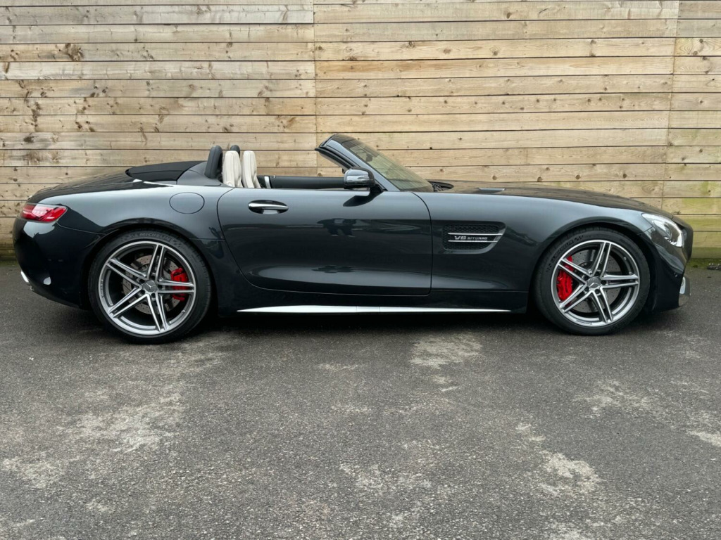 AMG GTC S ROADSTER Finished in Selenite Grey with Full Cream Leather interior. With AMGs latest 4.0 V8 producing 557 BHP, 680nm of torque. 0-60 in 3.6 secs and a top speed of 197 mph this car is a pleasure to drive. Roof up or down this car can be enjoyed all year round. With AMG leaving their legendary V8s behind these cars are as rare as ever 2017 . Just had Service 200 miles ago, AMG black alloys AMG chrome package Lane tracking package AMG dynamic pack Burmester surround sound systemAMG performance exhaust system,, , This car comes with, Attention assist, Metallic - Selenite Grey, Bluetooth interface for hands free telephone, 19 front / 20 rear forged AMG cross spoke design alloy wheels with 295/30 rear tyres - AMG GT C Roadster , Collision prevention assist plus, COMAND HDD navigation with CD/DVD/Radio, media interface, linguatronic, 10GB music register, SD card slot + online, Nappa leather - Silver grey/Black, Contactless boot opening, Multi function trip computer, Outside temperature gauge, Parktronic audio/visual front and rear parking aid, Power Steering, Park assist camera, Service indicator (ASSYST), AMG Ride Control sports suspension with adjustable damping system, Electronic differential lock, 2 USB ports, Bluetooth audio streaming