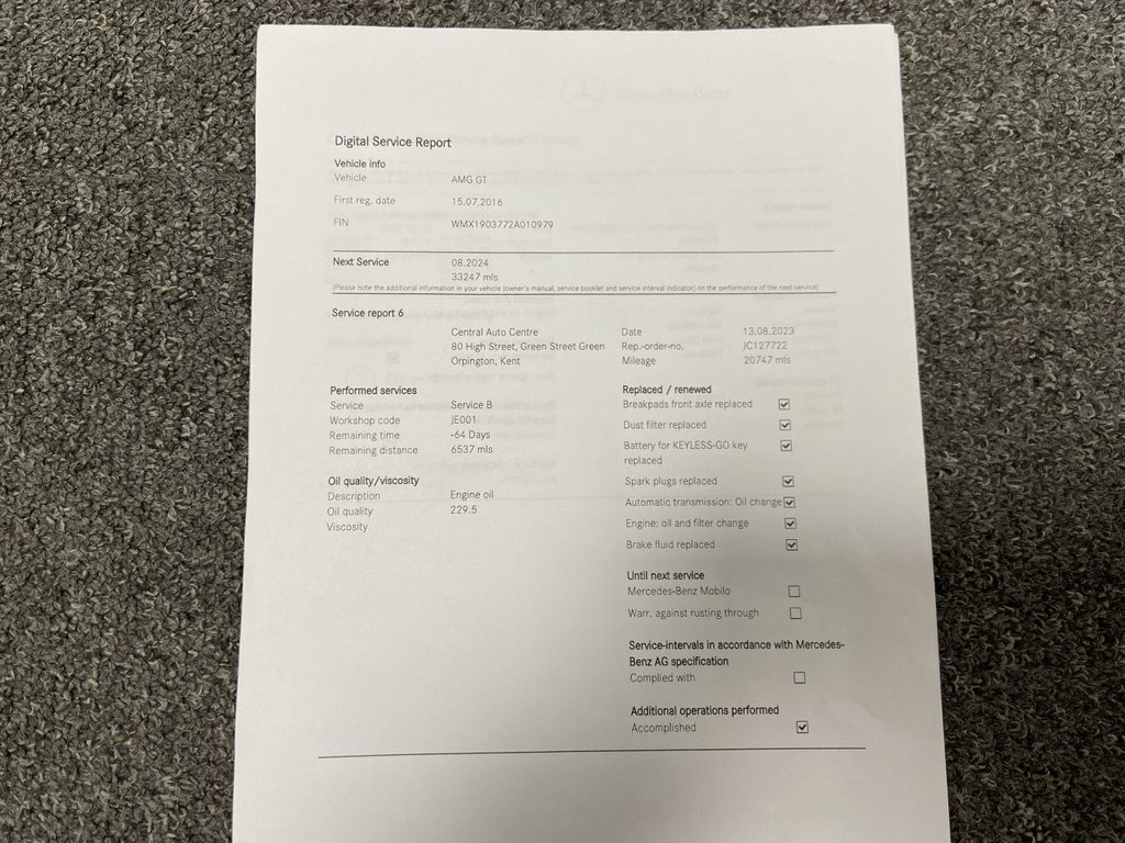 JAD MOTOR would like to proudly present this wonderful 2016 MERCEDES AMG GT 4.0L V8 BITURBO PREMIUM! 2 Keys. 2 Former Owners. SERVICE: FULL MERC HISTORY! NEW MERC SPECIALIST SERVICE & MOT TILL JUN 26 TOO! DESCRIPITON: Exterior: The AMG GT commands attention from every angle, presenting an elongated bonnet, wide stance, and sculpted bodywork that reflect both aerodynamic purpose and dramatic visual flair. The sleek profile is perfectly balanced, with the cab set rearward to emphasise its performance-focused architecture. Its bold grille and large air intakes feed the 4.0-litre V8, while LED High-Performance headlights ( with Hi-Beam assist ) deliver a sharp, aggressive lighting signature. The powerful rear haunches flow into a tapered back end featuring LED tail lights, a functional diffuser, and the instantly recognisable quad exhaust setup. Sitting low on striking AMG alloy wheels, the GT has an unmistakable supercar presence, merging beauty with brute force. Interior: Inside, the AMG GT wraps you in a cockpit engineered for both luxury and performance. The Premium package introduces refined materials, including high-grade leather, contrast stitching, and beautifully crafted aluminium trims. The AMG sport seats are heated/electric & have memory functions ensuring your securely held into place, balancing comfort with track-inspired support, while the sweeping centre console, modelled after a V8 engine layout, places all major controls intuitively at your fingertips. A 19in Alloy Wheels - AMG 10-Spoke Design , 3-Stage Electronic Stability Programme -, ABS - Anti-Lock Braking System, AMG Bodystyling, AMG Door Sill Panels in Brushed Stainles, AMG Drive Unit, AMG Floor Mats with AMG Lettering, AMG High-Performance Composite Braking S, AMG Instrument Cluster - Twin-Tube Look, AMG Mechanical Rear Axle Limited-Slip Di, AMG Performance Exhaust System, AMG Performance Steering Wheel in Black , AMG Silver Chrome Trim Package, AMG Sports Seats with Integrated Head Re, AMG Sports Suspension, ASR - Acceleration Skid Control, ATTENTION Assist, Adaptive Brake Assist with Hold Function, Adaptive Brake Lights, Airbags - Driver and Front Passenger, Anti-Theft Protection Pa
