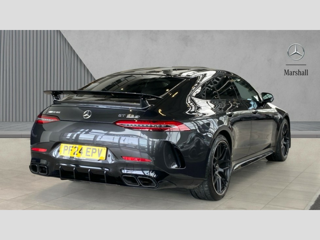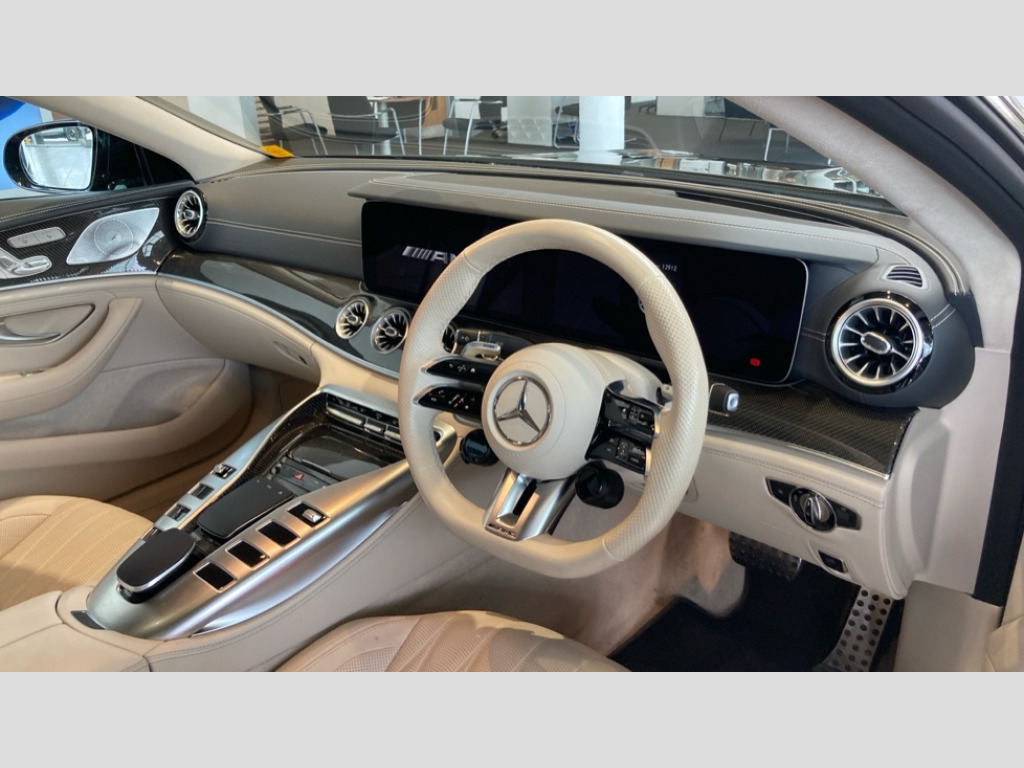 Mercedes-Benz AMG GT GT 63 4Matic+ Premium Plus 2dr Auto 11.9" central display with touchscreen, 12.3" driver display with AMG specific content, Active parking assist, AMG track pace, Head up Display, MBUX augmented reality for navigation, MBUX Interior assistant, MBUX navigation premium, Mercedes-Benz emergency call system, PAS, Rear axle steering, Remote Services Premium, Smartphone integration with Apple CarPlay/Android Auto, Traffic sign assist, Wireless charging system for mobile devices, Active roll stabilisation, AMG electronic rear axle limited slip differential lock, AMG performance 4MATIC+, AMG RIDE CONTROL + Suspension, AMG SPEEDSHIFT MCT 9 speed automatic sports transmission, Front axle lift system, Petrol Particulate Filter, Burmester surround sound system, 3rd brake light, Adaptive brake lights, AMG illuminated door sills with AMG lettering and with exchangeable cover, AMG Light display, AMG real performance exhaust sound system, Auto headlights, Body colour bumpers, Digital light headlamps, Electric windows with pre-safe closing function, Fixed panoramic glass sunroof, LED daytime running lights, Magic vision control, Privacy glass, Radiator fins in black, Rain sensor windscreen wipers, Rear boot, Retractable rear boot spoiler, 2 cup holders in front, 2 individual rear seats, Ambient lighting with choice of 64 colour settings, AMG Performance steering wheel in nappa leather/microcut microfibre, AMG steering wheel buttons, Climatised front seats, Driver and front passenger seat heating plus, ENERGIZING air control, Front and rear headrests, Heated steering wheel, Multicontour front seat with massage function, Rear seats with folding backrests upto 1.5m tall, Single front passenger seat, THERMOTRONIC automatic climate control, AMG Dynamic plus package - AMG GT 55/63, AMG night pack - AMG GT 43/55/63, AMG night pack II - AMG GT 43/55/63, Energizing package - AMG GT 63, Load compartment package - AMG GT 43/55/63, Memory pack - AMG GT 43/55/63, Mirror package - AMG GT 43/55/63, Parking package - AMG GT 43/55/63, USB package plus - AMG GT 43/55/63, Active braking assist with intersecion start-off function, Airbags - driver and front passenger, Airbags - kneebag for driver, Airbags - windowbags, AMG brake calipers in yellow, AMG high performance compound brake system, Anti lock braking system (ABS) with brake assist, Automatic front passenger airbag deactivation, Child presence detection, Electric parking brake, Predictive pedestrian protection, Tyre pressure monitoring system, Alarm system with immobiliser and interior protection -Thatcham category 1, Guard 360 degree vehicle protection plus, Keyless Go starting function, Keyless Go with seamless door handles, Remote central locking, Summer tyres, Tirefit tyre sealant kit