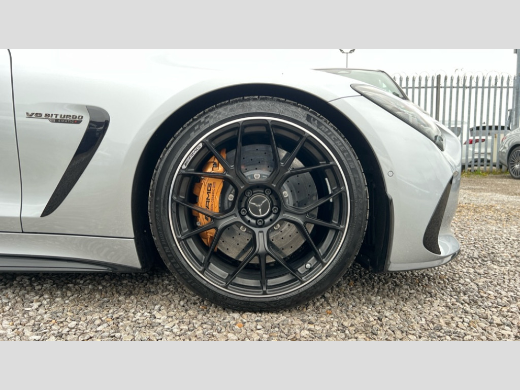 Mercedes-Benz AMG GT GT 63 4Matic+ Ultimate 2dr Auto 11.9" central display with touchscreen, 12.3" driver display with AMG specific content, Active parking assist, AMG track pace, Child presence detection, Head up Display, MBUX augmented reality for navigation, MBUX Interior assistant, MBUX navigation premium, Mercedes-Benz emergency call system, PAS, Rear axle steering, Remote Services Premium, Smartphone integration with Apple CarPlay/Android Auto, Traffic sign assist, Wireless charging system for mobile devices, Active roll stabilisation, AMG electronic rear axle limited slip differential lock, AMG performance 4MATIC+, AMG RIDE CONTROL + Suspension, AMG SPEEDSHIFT MCT 9 speed automatic sports transmission, Front axle lift system, Petrol Particulate Filter, Burmester surround sound system, 3rd brake light, Adaptive brake lights, AMG illuminated door sills with AMG lettering and with exchangeable cover, AMG Light display, AMG real performance exhaust sound system, Auto headlights, Body colour bumpers, Digital light headlamps, Electric windows with pre-safe closing function, Fixed panoramic glass sunroof, LED daytime running lights, Magic vision control, Privacy glass, Radiator fins in black, Rain sensor windscreen wipers, Rear boot, 2 cup holders in front, 2 individual rear seats, Ambient lighting with choice of 64 colour settings, AMG performance seats, AMG Performance steering wheel in nappa leather/microcut microfibre, AMG steering wheel buttons, ENERGIZING air control, Front and rear headrests, Heated steering wheel, Rear seats with folding backrests upto 1.5m tall, Single front passenger seat, THERMOTRONIC automatic climate control, AMG aerodynamics package - AMG GT 63, AMG Dynamic plus package - AMG GT 55/63, AMG night pack - AMG GT 43/55/63, AMG night pack II - AMG GT 43/55/63, Energizing plus package - AMG GT 63, Load compartment package - AMG GT 43/55/63, Memory pack - AMG GT 43/55/63, Mirror package - AMG GT 43/55/63, Multicontour seat package - AMG GT 63, Parking package - AMG GT 43/55/63, USB package plus - AMG GT 43/55/63, Active braking assist with intersecion start-off function, Airbags - driver and front passenger, Airbags - kneebag for driver, Airbags - windowbags, AMG ceramic high performance composite brake system, Anti lock braking system (ABS) with brake assist, Automatic front passenger airbag deactivation, Ceramic brake calipers, Electric parking brake, Predictive pedestrian protection, Tyre pressure monitoring system, Alarm system with immobiliser and interior protection -Thatcham category 1, Guard 360 degree vehicle protection plus, Keyless Go starting function, Keyless Go with seamless door handles, Remote central locking, Summer tyres, Tirefit tyre sealant kit