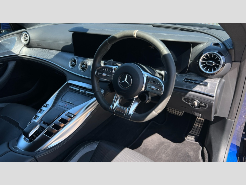 Mercedes-Benz AMG GT GT 63 S 4Matic + Premium plus 4dr Auto AMG drive unit, AMG track pace, Attention assist - Monitors steering behaviour and long journey fatigue, Blind spot assist, COMAND Online HDD nav, media interface, MP3/USB, 12.3" display, voice control, 10GB music, SD card, 3D map, Live traffic info, bluetooth, WLAN hotspot, Concierge service, Crosswind Assist, Digital operating instructions, Dual bonded widescreen cockpit consisting of an instrument and media display with AMG main menu and start up screen, Easy-pack tailgate, ECO start/stop function, Head up Display, Mercedes me connect including emergency call system, accident recovery, breakdown and maintenance management, PAS, Rear seat belt status indicator, Service indicator (ASSYST), Smartphone integration with Apple CarPlay, Touchpad integrated into the centre console with clear haptic feedback, Traffic sign assist, Wireless charging system for mobile devices, 80 litre fuel tank, AMG performance 4MATIC+, AMG rear axle steering, AMG Ride Control sports suspension with adjustable damping system, Lithium-ion battery, Petrol Particulate Filter, 2 USB ports in the rear, Burmester 14 speaker surround sound system, DAB digital radio tuner, Active aerodynamics with AIRPANEL in the front apron, Adaptive brake lights, AMG Performance exhaust, AMG specific radiator grille, Automatically dimming rear view mirror and driver's exterior mirror, Body colour bumpers, Bonnet with powerdomes, Electric windows with pre-safe closing function, Heated rear window with timer, LED tail lights with sequential turn signals, Model designation on the front wings and boot lid, Multibeam LED headlights with adaptive highbeam assist plus, Privacy glass, Rain sensor windscreen wipers, Solid roof, Specific side skirts painted in the vehicle colour with inserts in silver chrome, V8 BITURBO lettering on front wings, 12V socket in centre console and in boot, Ambient lighting with choice of 64 colour settings, AMG brushed stainless steel sports pedals with rubber studs, AMG floor mats with AMG lettering, AMG sports seats with embossed AMG emblem in the head restraints and bezel in silver chrome with AMG lettering, Automatic child seat recognition sensor, Comfort ventilated front seats, ENERGIZING comfort control, Flat bottom AMG lettering Performance steering wheel in black DINAMICA microfibre/silver chrome gearshift, touch control, 12 o'clock marking, Front and rear AMG brushed stainless steel illuminated door sill panels with AMG lettering, Front and rear cupholders, Front centre armrest with stowage, Front seats full electric adjustment fore/aft/height, inclination and seat cushion adjustment, four way electric lumbar/height adjust head restraint, Glasses stowage compartment, Glove compartment - lockable, air conditioned and illuminated, Heated front seats, Heated rear seats, Pull out sun visors with vanity mirror, illuminated and pivotable side window, Air balance pack - AMG GT, AMG Dynamic plus package - AMG GT, Anti theft protection pack - AMG GT, Front seat comfort package - AMG GT, Front seat memory pack - AMG GT, Keyless Go package - AMG GT, Mirror package - AMG GT, Parking package - AMG GT, 2 three point rear seatbelts, 3 stage electronic stability programme, Acceleration skid control, Airbags - driver and front passenger, Airbags - front sidebags, Airbags - kneebag for driver, Airbags - windowbags, Anti lock braking system (ABS) with brake assist, Automatic front passenger airbag deactivation, Black seat belts, Brake calipers with AMG lettering painted in yellow, Brake pad wear indicator front brakes, Electric parking brake, First aid kit, Front and outer rear seats seatbelt pre-tensioners with belt force limiters and automatic belt height adjustment, ISOFIX child seat for two outer seats, Predictive pedestrian protection, Tyre pressure monitoring system, Warning triangle, Alarm system with immobiliser and interior protection -Thatcham category 1, Keyless Go starting function, Remote central locking, Soft door close, Dashboard upper section in artico man-made leather, Summer tyres, TIREFIT with tyre inflation compressor