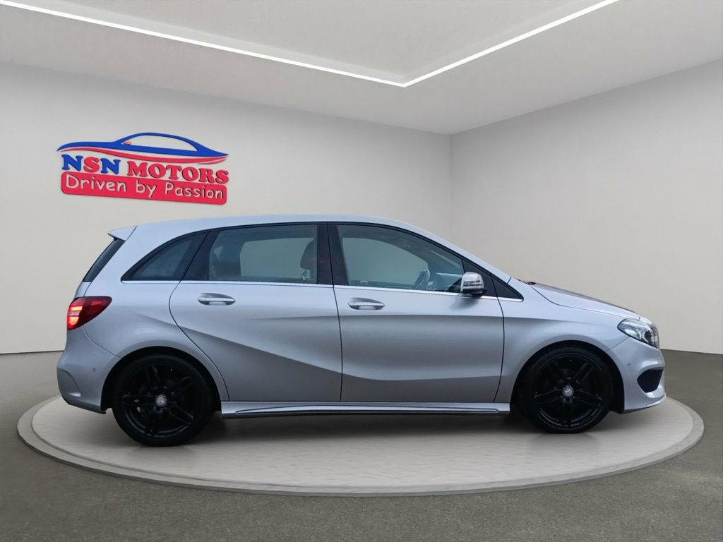 Here we have a striking example of a reliable MERCEDES-BENZ B-CLASS in the eye-catching SILVER Colour. Having covered only 58283 miles with Full Service History, you can be confident this car is in great condition. The car is ULEZ compliant. The car has recently been serviced. The car has 1 previous owner. The mileage is warranted and backed up by MOT data. MOT expiry date: 7 January 2027. This Car is HPI Checked as well as cleared for your peace of mind and we will provide you with a digital copy of the full report for free. The car comes with 6 months nationwide extended warranty. Some of the features on this car are Navigation System, Navigation HDD, Bluetooth Preparation, DAB Digital Radio, Parking Camera(s), Heated Seat(s), Parking Sensor(s), Climate Control, Cruise Control, Part Leather Trim, Tyre Repair Kit, 18" Alloy Wheels, Metallic Paint and Panoramic Roof. The car is also very spacious and the seats are extremely comfortable, making the MERCEDES-BENZ B-CLASS ideal for any kind of journey. the car comes with 12 months AA breakdown cover(registration required). The car comes with 6 months nation wide extended warranty(extendable to 3 years). Out of hours appointments avaialbe upon request. If a vehicle's MOT is less than 6 months, a fresh 12 months MOT can be provided. Supplied by us as a used car, with a multi-point detailed inspection of the car to be carried out upon purchase with the customer. We welcome all kinds of inspection/test drive by yourselve Memory Package, Exclusive Package - Leather - Cranberry , Satellite Navigation - COMAND Online Sys, Polar Silver, Driving Assistance Package, Night Package, 18in Alloy Wheels - AMG Multi-Spoke Desi, 12V Socket, 12V Socket in Load Compartment, 12V Socket in the Rear, 18in Alloy Wheels - AMG 5-Twin-Spoke Des, 8-inch Colour Display, ABS - Anti-Lock Braking System, AMG Bodystyling - Front and Rear Apron -, ASR - Acceleration Skid Control, ATTENTION Assist, Active Park Assist with Parktronic, Adaptive Brake Assist with Hold Function, Adaptive Brake Lights, Air Vents with Chrome Surround and Cruci, Airbag - Driver, Airbag - Drivers Knee, Airbags - Passenger, Airbags - Windowbags, Ambient Lighting