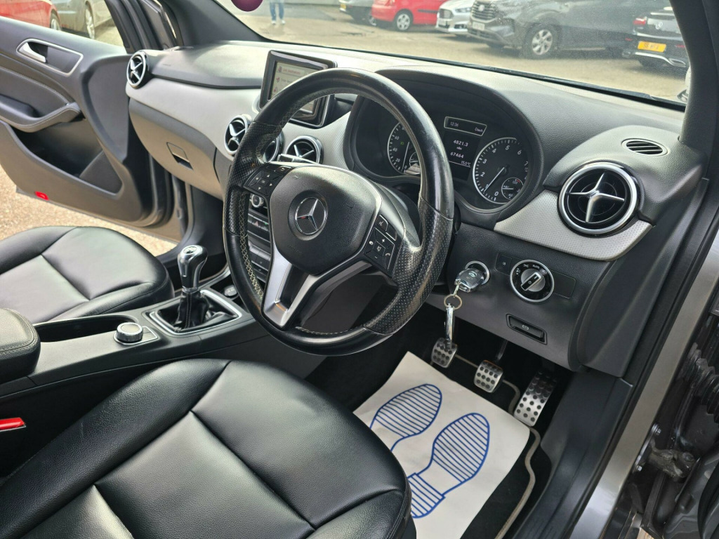 This 2013 Mercedes Benz B Class B180 Sport presents a compelling proposition with its remarkably low mileage of just 62,150 miles for its age. This particular example, finished in the desirable Sport trim, is powered by an efficient 1.6 litre petrol engine. It comes equipped with Bi Xenon headlights that feature automatic activation, ensuring optimal visibility at all times. For added convenience, a reversing camera aids with parking, while the Bluetooth interface allows for seamless hands-free telephone calls.The B180 Sport offers a practical and economical driving experience, achieving an impressive fuel economy of 48 miles per gallon. This figure, along with its low CO2 emissions, indicates a more environmentally conscious and cost effective choice compared to many other vehicles in its class. Furthermore, the generous boot space provides ample room for luggage or shopping, making it a versatile option for families or those with active lifestyles. Its acceleration from 0 to 62 miles per hour in 10.4 seconds demonstrates a capable performance for everyday driving needs. v accessory socket, 18in alloy wheels - 5 twin spoke bi colour, abs - anti-lock braking system, asr - acceleration skid control, attention assist, aux-in socket and usb interface in the centre armrest, air conditioning, airbags - drivers kneebag, airbags - dual stage - driver, airbags - dual stage - front passenger, airbags - sidebags for driver and front passenger, airbags - window, alarm system with immobiliser and interior protection, audio 20 radio-cd, automatic child seat recognition sensor, bas - brake assist, bluetooth interface for hands-free telephone, centre armrest - front, cup holder - centre console, direct steering, door mirrors - electrically adjustable and heated with led indicators, eco-start - engine start-stop system for fuel economy, esp - electronic stability programme, electric windows - front and rear, headlamp assist - automatic headlamp activation, headlight wash, headlights - bi xenon, heat insulating dark tinted glass, hill start assist, isofix and top-tether child seat fixing points in rear, rain sensing windscreen wipers, rear seats - split folding 1-3 2-3, remote central locking, reversing camera, roof lining - black, seats - height adjusters, sports suspension, steering column - manually adjustable for height and reach, steering wheel - 3-spoke multi-function - trimmed in leather, steering wheel - multi-function, tyre pressure loss warning system