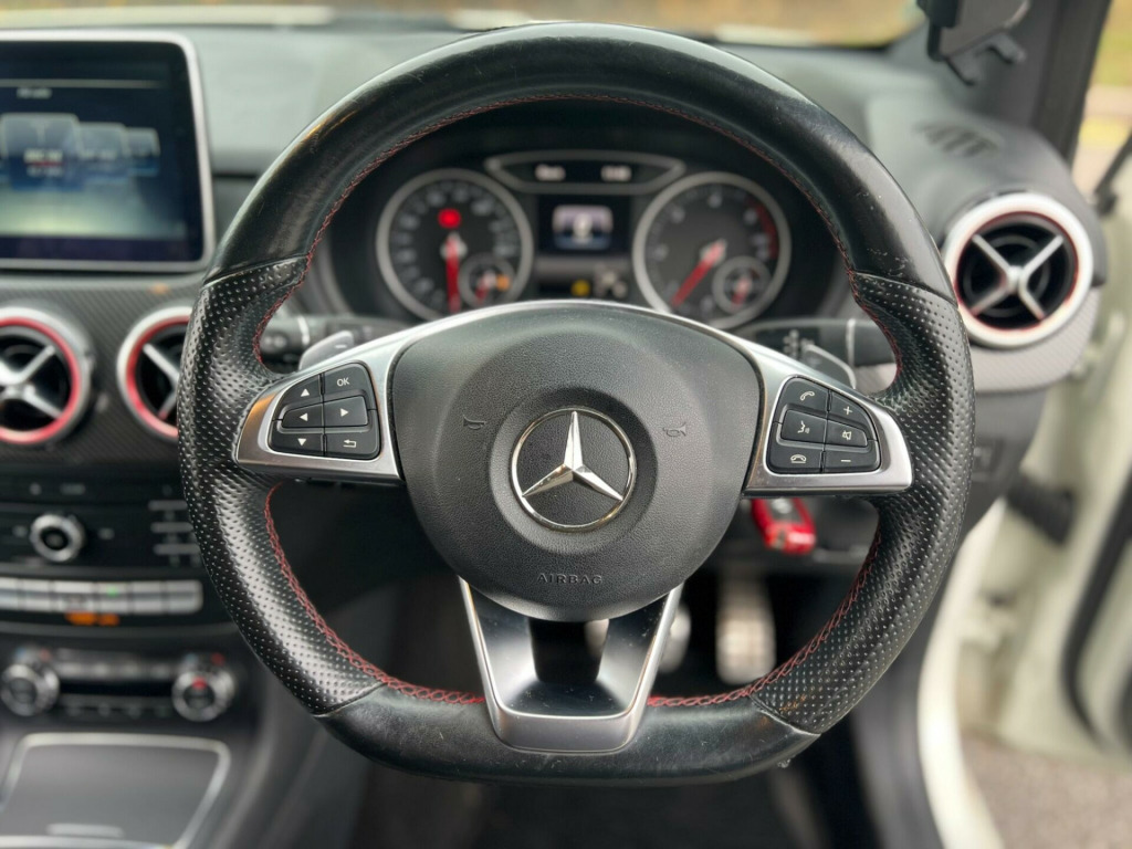 Mercedes Benz B200 D 2.1 AMG Line DCT MPV Automatic Diesel Finished in White. Only 81211 warranted miles on the clock. Car comes with a 12 Month Warranty!!! MOT till 05th October 2026. £20 Road Tax for the year. Service History Available. Car starts and drives well with no mechanical faults. 2 Keys. Full V5 Available. Good spec including: Climate Control, Half Leather Trim, 18'' Alloy Wheels, Media Connectivity, Leather Steering Wheel, CD/DAB Radio/AUX/USB, Bluetooth, AC/Climate Control, Electric Windows, Cruise Control, Central Locking and much more. Nationwide Delivery Available. P/X Welcome. HPI Clear. 2 Keys. ULEZ Compliant. Any questions don't hesitate to contact us on 07443456706. Whatsapp available as well v socket, 12v socket in load compartment, 12v socket in the rear, 18in alloy wheels - amg 5-twin-spoke design - painted titanium grey with a high-sheen finish, 8-inch colour display, abs - anti-lock braking system, amg bodystyling - front and rear apron - side skirts, asr - acceleration skid control, attention assist, adaptive brake assist with hold function and hill start assist, adaptive brake lights, air vents with chrome surround and cruciform nozzle, airbag - driver, airbag - drivers knee, airbags - passenger, airbags - windowbags, ambient lighting in the four door recesses - door pulls and door trim, anti theft alarm system with tow-away protection and interior motion sensor, aspherically curved mirror glass - exterior mirrors, audio 20 radio-cd-mp3 compatibility, automatic front passenger airbag deactivation, bas - brake assist, bag hooks in boot, beltline strips - chrome, bluetooth connectivity - audio streaming, bluetooth interface with hd voice-capable hands-free function and audio streaming, brake calipers with mercedes-benz lettering, brake wear warning display, brushed stainless steel sports pedals with rubber studs, bumpers - body-coloured, centre armrest - front with storage and red contrasting topstitching, centre armrest - rear folding, childproof locks - manually operated for rear doors and electrically operated for rear power windows, collapsible storage box stored under luggage compartment floor, collision prevention assist plus, controller on centre console, courtesy and warning lights in front doors and boot lid, crash sensor with emergency opening function for doors, crash-responsive emergency lighting, cruise control with speedtronic variable speed limiter, cup holder - rear, cup holder in centre console x2, dashboard trim - carbon fibre pattern, daytime running lights - led, door armrests with red contrasting topstitching, door centre panels in dinamica microfibre, door handles - body-coloured, door mirrors - body coloured, door mirrors - electrically adjustable and heated, dynamic select with a choice of driving modes - eco-comfort-sport and individual, esp - electronic stability programme, electric parking brake, electric windows - front and rear, electronic key - chrome surround, first aid kit, floor mats - red stitched edging - amg lettering, fluid level warning indicator for fuel - oil - coolant and washer fluid, folding tables on backrest of driver and front passenger seats, footwell lighting - front and rear, front centre storage compartment, front door sill panels in aluminium with mercedes-benz lettering, headlight assist - automatic headlight activation, headlights - halogen, heated windscreen washer system, high level third brake light - led, isofix and top-tether child seat fixing points in rear, illuminated glove compartment, immobiliser, instrument cluster with 4.5in tft colour multifunction display with silver-coloured dials and red needles, interior lighting in rear with integrated reading lights, led indicators integrated in exterior mirrors, light switch in high-gloss black with ring in silver chrome, mercedes me connect, mercedes-benz emergency call system, outside temperature gauge, parcel net in front passenger footwell, parcel nets on driver and front passenger seat backrests, power steering - sports direct-steer with speed-sensitive servo assistance, pre-wiring for garmin map pilot navigation system, radiator grille - two louvres in iridium silver with chrome inserts, rain-sensing windscreen wipers, rear bumper with twin exhaust pipes and chrome-look tailpipe trim, rear seats - split folding 1-3 - 2-3, rear tail lights - led, rear windscreen wiper, remote central locking, retractable load compartment cover, reversing camera with parking guidelines, roof lining - black, sd memory card slot, seat belt reminder - front and rear, seat occupancy sensor - front passenger seat, seats - cushion angle adjustment for front, seats - front cushion length adjustment, seats - height adjusters, seats - rear with fore-aft adjustment, service indicator assyst, sidebags for driver and front passenger, steering column - manually adjustable for height and reach, steering wheel - 3-spoke leather with flattened lower section and perforated grip area, steering wheel - gear shift paddles, steering wheel - multi-function, steering wheel - red stitching, storage box under front seats, storage compartment in front doors, stowage compartment in centre console, sun visors with illuminated vanity mirrors, sunglasses compartment in overhead control panel, suspension - comfort - lowered by 20mm front and 15mm rear, tirefit with tyre inflation compressor, thermotronic automatic climate control - two zone, through-loading facility, traffic information decoder - tp-ta, trip computer, twin radio tuner - fm-am, two-position luggage compartment floor, tyre pressure monitoring system, usb connections in the centre armrest x2, upper control panel with galvanised switches in silver chrome, warning triangle, ecall - emergency call system