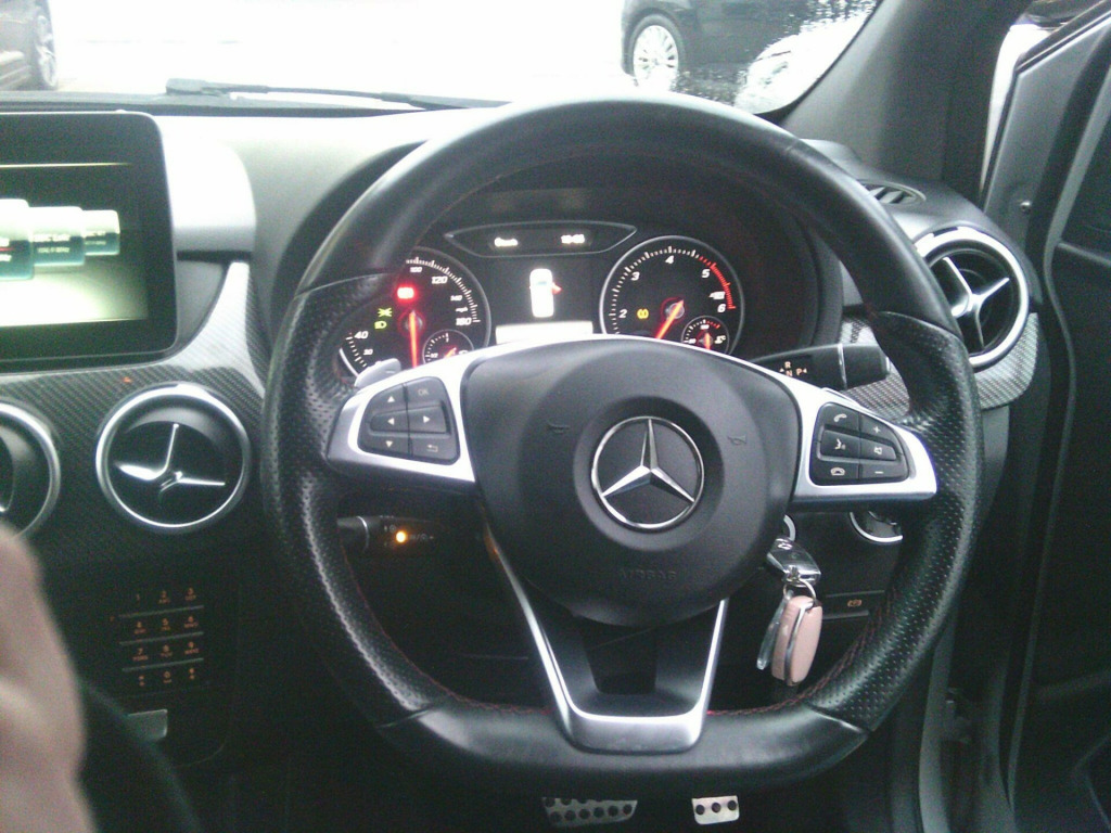 This 2017 Mercedes Benz B Class B200d AMG Line offers an impressive 69 mpg, making it a highly economical choice for your motoring needs. This Euro 6 compliant vehicle boasts a 2.1L diesel engine and comes equipped with the sporty AMG Line trim. Inside, you'll find the Audio 20 Radio CD system with Bluetooth connectivity, perfect for your entertainment and communication needs. Comfort is assured with THERMOTRONIC luxury automatic climate control, offering two zone temperature settings. For convenience and safety, this B Class features automatic headlamp activation for dark conditions and a reversing camera with dynamic guidelines on the central display. Smartphone integration ensures you stay connected on the go. The performance of this Mercedes Benz B Class is also noteworthy, achieving 0-62mph in just 8.9 seconds. This indicates a responsive driving experience compared to many other vehicles in its class. Furthermore, its low CO2 emissions highlight its environmental consideration. Autotrader have marked it as ''FAIR PRICE'' so you can be confident you are getting a great deal. We have been selling quality used cars in Leicester for over 18 years and our reputation for value for money is legendary. Our many positive reviews on AutoTrader which are currently in excess of 1360 will surely impress to give you the confidence to choose buying from us and 90% of reviews gave us a 5 star rating. Call today to arrange a no obligation test drive with one of our professional friendly sales team. All our vehicles are put through our workshop and come serviced and MOT`d & For even greater reassurance, from November 2018 all our vehicles come with 12 months AA breakdown cover. AA/RAC inspections welcome, part exchange possible, finance available. Every effort has been made to ensure the accuracy of the above information but errors may occur, Due to model changes specification may vary, please check with a sales person. All our vehicles come with a 1 month warranty with upgrades to 12 month available from £1 per day, HPI clear, warranted mileage. OPEN 7 DAYS A WEEK - 621032-DF. 12V Socket in Luggage Compartment and Rear Centre Console, 18in Alloy Wheels - AMG 5-Twin-Spoke Design - Painted Titanium Grey with a High-Sheen Finish, AMG Bodystyling - Front and Rear Apron and Side Skirts, AMG Floor Mats - Edging in Black and Red Contrast Stitching, ASR - Acceleration Skid Control, ATTENTION Assist - Alerts the Driver to Increasing Fatigue and Inattention, Active Brake Assist with Hold Function - Hill Start Assist - Priming and Dry Braking in the Wet, Active Braking Assist, Air Conditioning - THERMOTRONIC Luxury Automatic Climate Control - Two-Zone, Air Vents with Surround and Cruciform Nozzle in Silver Chrome, Airbags - Driver and Front Passenger, Airbags - Kneebag, Airbags - Sidebag for Driver and Front Passenger - Combined Thorax-Pelvis Bag, Airbags - Windowbags, Alarm System with Immobiliser and Interior Protection - Thatcham Category 1, Anti-Theft Protection Package, Armrest - Rear - Folding - Including Through-Loading Function and Cup Holder, Audio 20 Radio-CD, Automatic Child Seat Recognition Sensor, Automatic Front Passenger Airbag Deactivation, BAS - Brake Assist with Brake Servo Assistance when Emergency Braking is Detected, Beltline Strips - Chrome, Brake Calipers - Mercedes-Benz Lettering on Front, Braking - ABS-Anti-Lock Braking System, Braking - Adaptive Brake Lights - Flash Under Emergency Braking, Brushed Stainless Steel Sports Pedals with Rubber Studs, Bumpers - Body-Coloured, Centre Armrest - Front with Stowage, Childproof Locks - Manually Operated for Rear Doors and Electrically Operated for Rear Power Windows, Collapsible Storage Box Stored Under Luggage Compartment Floor, Crash-Responsive Emergency Lighting, Cruise Control with Limiter, Dashboard Trim - Carbon Fibre Look, Direct Select Shift Lever with Steering Wheel Shift Paddles and Cruise Control with Limiter, Door Handles - Body-Coloured, Door Mirrors - Body-Coloured with Integrated LED Indicators and Aspherically Curved Mirror Glass, Door Mirrors - Electrically Adjustable and Heated, Door Sills - Front Door Sills in Aluminium, Door Sills - Front Door Sills with Mercedes-Benz Lettering, ESP Curve Dynamic Assist, Electric Parking Brake, Exhaust System - Twin Trapezoidal Tailpipes in Polished Stainless Steel, First Aid Kit and Warning Triangle, Footwell Lighting - Footwell Lighting in Front and Rear, Glass - Rear Windscreen - Heated with Timer Control, Headlamp Assist - Automatic Headlamp Activation in Dark Conditions, Heated Windscreen Washer System, ISOFIX and Top-Tether Child Seat Fixing Points in Rear - Two Outer Seats, Instrument Cluster - Electronic Service Interval Indicator ASSYST, Instrument Cluster - Outside Temperature Display, Instrument Cluster - Upper Control Panel with Galvanised Switches in Silver Chrome, Instrument Cluster - Warning Buzzer and Warning Display if a Seat Belt is not Fastened - Lights Are Left On or Parking Brake is Engaged, Instrument Cluster - Warning Indicators For Fuel-Oil-Coolant-Washer Fluid Levels-Brake Wear, Instrument Cluster with 4.5in TFT Colour Multifunction Display with Silver-Coloured Dials and Red Needles, Interior Lighting - Ambient Lighting Single-Colour with Indirect Illumination of the Interior Door Handles at Front and Rear and Door Trim Elements, Interior Lighting - Courtesy White and Warning Red Lights in the Front Doors and Boot Lid, Interior Lighting - Rear Interior Lighting with Integral Reading Lamps and Locator Lighting, Interior Lighting - Sun Visor with Illuminated Vanity Mirror for Driver and Front Passenger, Light Switch in High-Gloss Black with Ring in Silver Chrome, Lights - Halogen Headlamps Including Integral LED Daytime Running Lights, Lights - High-Level Third Brake Light - LED Technology, Lights - LED Fibre-Optic Tail Lamps and LED Brake Lights, Media Display - 8in, Media Interface, Mercedes Me Connect, Mirrors - Rear-View Mirror with Additional Lighting, Non-Smoke