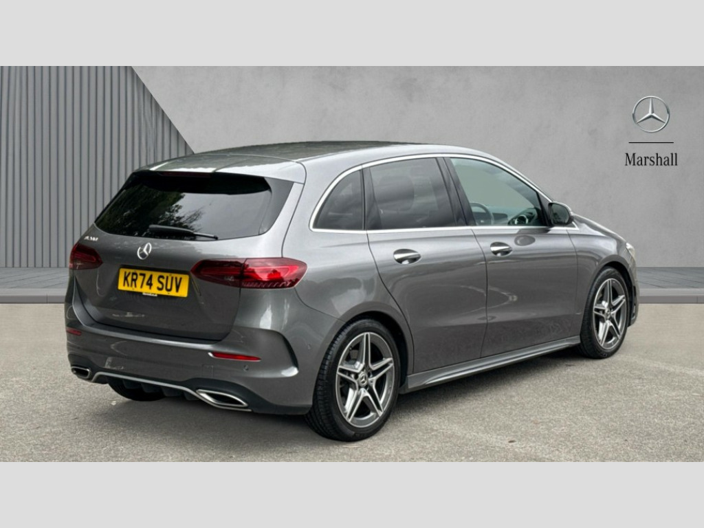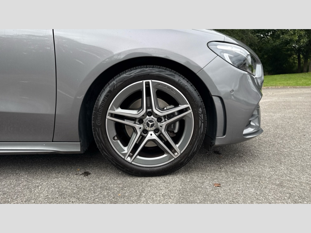 Mercedes-Benz B Class B200 AMG Line Executive 5dr Auto 10.25 inch touchscreen central media display, 10.25" Digital instrument cluster display screen, Attention assist - Monitors steering behaviour and long journey fatigue, Blind spot assist, Brake pad wear indicator warning light, Cruise control + speed limiter, Direct steer system, Dual bluetooth interfaces, DYNAMIC SELECT with a choice of driving modes (ECO, Comfort, Sport and Individual), ECO start/stop function, Engine start/stop button, Fingerprint scanner, Fluid level warning indicator for fuel, oil, coolant and washer fluid, GPS aerial, Hard disk navigation, Hey Mercedes Voice activation, Lamp failure indicator, Lane keeping assistant (LKA), Live traffic information, Mercedes me connect including emergency call system, accident recovery, breakdown and maintenance management, Mercedes me remote services, Outside temperature gauge, Owners manual and service booklet in English, Pre-installation for private car sharing, Preinstallation for Mercedes Benz link, Remote boot closing, Service indicator (ASSYST), Smartphone integration with Apple CarPlay and Android auto, Speed limit assist, Speed sensitive power steering, Trip computer in multifunction display with current consumption indicator, Wireless charging, Lowered comfort suspension, DAB digital radio tuner, MBUX multimedia system, Mercedes Benz sound system (100 W) with 6 speakers, 4 Electric Front and Rear windows, Adaptive brake lights, Adaptive high beam assist, AMG body styling - AMG front apron with front splitter and AMG rear apron and visible exhaust tailpipe trim elements, Body coloured bumpers, Body coloured side skirts, Car wash function, Chrome window line, Diamond radiator grille with pins in fine star pattern, Electric adjustable and heated door mirrors with integrated LED side indicators, Exhaust system with 2 Visible tailpipe trim elements and rear apron with trim in chrome, Headlamp assist automatic headlamp activation, Heat insulating dark tinted rear and rear side windows, Heated glass rear windscreen + timer control, High level LED third brake light, Interior mirror with black reading lamps and frameless, LED high performance headlamps with integrated LED daytime running lights, LED tail lamp, Privacy glass, Rain sensing windscreen wipers with two sensitivity settings, Rear fog lamp, Rear side wing doors, Rear windscreen wiper, 3 seat rear bench, 3 twin spoke multifunction sports steering wheel in nappa leather with flattened bottom and perforated grip area, 4 way lumbar support, 40:20:40 split folding rear seat backrests, Air conditioning - air vents with silver chrome surround, Air conditioning - One zone THERMATIC automatic climate control with automatically controlled air distribution, Artico man-made leather/ MICROCUT microfiber upholstery with contrast topstitching, Automatic child seat recognition sensor, Black roof lining, Brushed stainless steel sports pedals with rubber studs, Floor mats with AMG lettering, Fluorescent jacket, Folding rear armrest, Freight packaging without tie-down hooks, Front centre armrest with stowage, Front door sills with Mercedes Benz lettering, Front sports seats with adjustable head restraints, Galvanished gear shift paddles on steering wheel, Heated front seats, Illuminated glove compartment stowage, Interior lighting - 64 colour Ambient lighting, Luggage net on driver/front passenger seat backrest, Manually adjustable front seats, Manually height and reach adjustable steering column, Rear headrests, Seat occupancy sensor for front passenger seat, Single front passenger seat, Stowage compartment in centre console with retractable cover, Sunvisors with illuminated vanity mirrors, Twin front cupholders, Two outer rear seat isofix and top tether child seat fixing points, 360 degree guard vehicle protection pack - B Class, Interior lighting with light and sight pack - B Class, Keyless Go Comfort pack - B Class, Mirror package with self dimming mirror - B Class, Parking pack - B Class, Seat comfort pack - B Class, USB plus pack - B Class, Winter Pack - B Class, 3 rear three point seatbelts, Active bonnet pedestrian safety measure which detects an impact and raises bonnet, Active brake assist includes forward collision warning system with autonomous braking, Adaptive brake assist with hold function and hill start assist, Airbags - kneebag for driver, Anti-lock braking system (ABS), Black seat belts, Brake assist, Childproof locks manually operated for rear doors and electrically operated for rear power windows, Crash responsive emergency lighting, Curve dynamic assist, Driver and front passenger head and sidebags, Driver and front passenger windowbags, Dual stage driver/passenger airbags, Electric parking brake, Electronic stability programme with acceleration skid control, Front and rear seatbelt reminder, Front passenger airbag deactivation, Sports braking system, Tyre pressure monitoring system, Warning triangle and first aid kit, Alarm system with immobiliser and interior protection -Thatcham category 1, Remote central locking and crash sensor with emergency opening function, Black open wood pore trim, 18" AMG 5 twin spoke light alloy wheels,aerodynamically optimised, painted in black with high sheen finish, Summer tyres, Tirefit tyre sealant kit