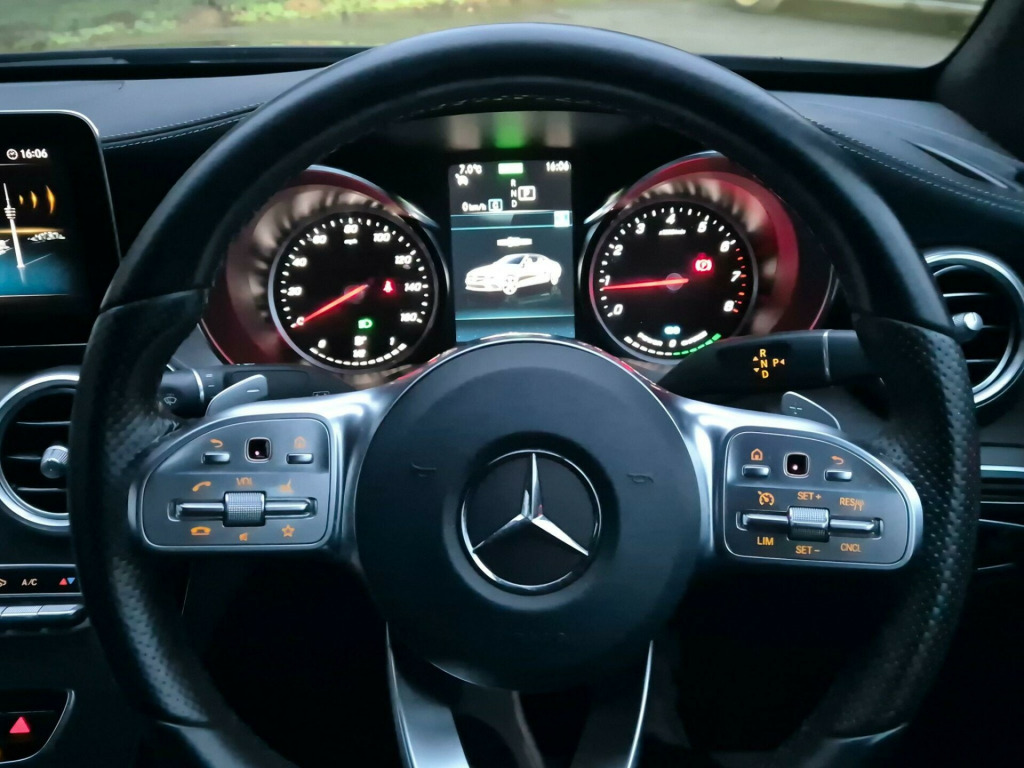 This 2021 Mercedes Benz C Class C200 AMG Line Edition is a superb example, having been owned by just one person from new. Powered by an efficient 1.5 litre petrol engine and meeting Euro 6 emissions standards, this car offers a refined driving experience. It comes equipped with striking LED High Performance Headlamps that include integrated LED Daytime Running Lights, ensuring excellent visibility. Inside, you'll find THERMATIC automatic climate control for two zones, keeping both driver and passenger comfortable, and heated front seats for those colder journeys. Connectivity is made simple with the Audio 20 system, featuring an integrated media interface and a Bluetooth interface for hands-free calls.The C200 AMG Line Edition also boasts a practical reversing camera, making parking manoeuvres easier and safer. A key highlight of this model is its generous boot space, offering ample room for luggage or shopping. These features, combined with its single owner provenance and the premium AMG Line Edition trim, demonstrate a higher level of specification and care compared to many other vehicles in its class., in alloy wheels - aero 5-spoke - silver, abs - anti-lock braking system, aircap - wind deflector and draught-stop, airscarf - neck level heating system, amg bodystyling - front and rear apron and side skirts, artico leather dashboard with contrast stitching, attention assist, acoustic soft-top - with enhanced climate and noise comfort, active bonnet - pedestrian safety measure which detects an impact and raises bonnet, active parking assist including parktronic, adaptive brake assist with hold function and brake drying function, adaptive brake lamps, agility control - sports suspension - lowered by 15mm, audio 20 with integrated media interface and bluetooth interface with hands-free function, automatic child seat recognition sensor, automatic seat-belt presenter for driver and front passenger, brake calipers - with mercedes-benz lettering and perforated front brake discs, central locking with interior switch - automatic locking and crash sensor with emergency opening function, collision prevention assist plus, dab digital radio tuner, door mirrors - electrically adjustable and heated, dual-stage airbags - driver and front passenger - sidebags in front seats - driver kneebag - pelvis bag and windowbags for driver - front passenger and rear passengers, dynamic select with a choice of driving modes - comfort - eco - sport - sport plus - individual, esp - electronic stability programme, electric parking brake, electronic key - chrome surround, first aid kit and warning triangle, floor mats - black with amg lettering, front centre armrest with stowage compartment, front door sill panels with mercedes-benz lettering, front electric windows with one-touch opening and closing including obstruction sensors, full led tail lights, gearshift paddle on steering wheel, heated front seats, high-resolution 10.25in multimedia colour display, isofix child seat attachment points with top tether in rear, illuminated glove compartment, instrument cluster with two tube-design round dials and 5.5in tft multi-function display, interior lighting package, led high performance headlamps with integrated led daytime running lights, mercedes me connect - standard services, mercedes me connect - vehicle set-up and vehicle monitoring, mirror package, outside temperature display, petrol particulate filter - ppf, pre-wiring for sd navigation system, radiator grille - diamond grille with integrated star - chrome pins, radio aerial integrated into rear window, rain sensing windscreen wipers, remote boot release, reversing camera, sd card-based navigation system, speedtronic cruise control and variable speed limiter, seat belts - black, seat comfort package, seats - rear split folding 40-20-40, semi-automatic boot separator, service indicator assyst, soft top colour - black, speakers with frontbass, sports direct-steer system with speed sensitive steering, sports exhaust system, sports pedals in brushed stainless steel with rubber studs, sports seats with integrated head restraints, status display for rear seat belts in instrument cluster, steering column - manually adjustable for height and reach, steering wheel - 3-spoke multi-function amg in leather with flattened bottom section - chrome inserts and perforated leather in grip area, steering wheel - multi-function with audio and onboard settings control, stowage - double cup holder in centre console, stowage package, sun visors with illuminated vanity mirrors, thermatic - automatic climate control - two-zone, tirefit with tyre inflation compressor, tinted glass all round - green, top surround of side windows in polished aluminium, trim - black ash wood with aluminium door trims, two usb ports and an sd card slot in centre console, tyre pressure monitoring system, urban guard vehicle protection, visible twin-pipe exhaust trim integrated into rear bumper, leather - black