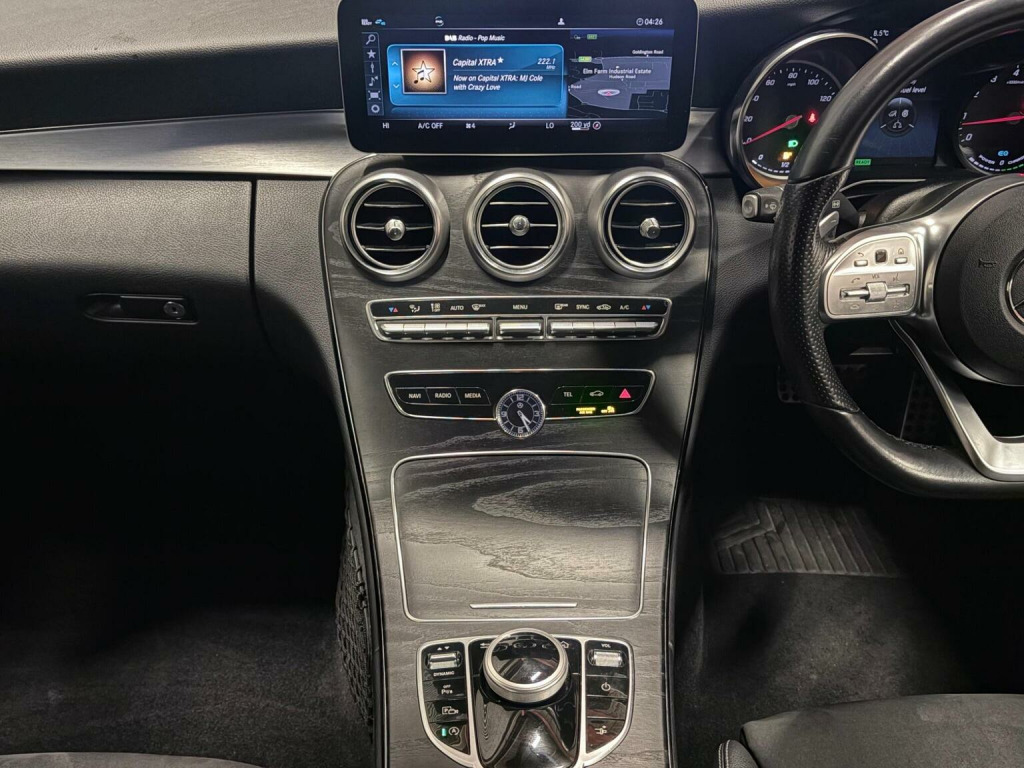 MOT UNTIL 16/08/2026, 3 MONTHS WARRANTY, PETROL HYBRID, ONLY 63K GENUINE MILES FROM NEW, FULL SERVICE HISTORY, RECENTLY SERVICED IN 12/2025, AMG LINE, CRUISE CONTROL, DAB RADIO, BLUETOOTH, SAT NAV, REVERSE CAMERA, VERY GOOD CONDITION INSIDE & OUT, DRIVES SUPERB, FIRST TO SEE WILL DEFINITELY BUY!, This 2019 Mercedes Benz C Class C200 AMG Line is a Euro 6 compliant petrol vehicle, offering a refined driving experience. It features the sought after AMG Line trim, enhancing its sporty appeal. Inside, youll find comfort and convenience with heated front seats and THERMATIC two zone automatic climate control. For ease of parking, this C Class is equipped with a reversing camera and Active Parking Assist with PARKTRONIC, which includes front and rear parking sensors. The Audio 20 CD system with Bluetooth connectivity ensures you stay connected on the go. This C200 AMG Line boasts an impressive fuel economy of 42 mpg, demonstrating its efficiency compared to other vehicles in its class. Furthermore, its low CO2 emissions highlight its environmentally conscious design. The 1.5L petrol engine provides a balanced blend of performance and economy, making it a practical choice for everyday driving.