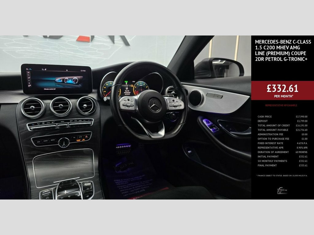 This Mercedes-Benz C200 AMG Line Premium Coupe combines sporty styling with comfort and refinement. Powered by a 1.5 MHEV petrol engine and smooth G-Tronic+ automatic gearbox, it delivers both performance and efficiency. Finished with 18" AMG Aero alloys, AMG bodystyling, and a diamond grille, it looks every bit as sharp as it drives. Inside, enjoy heated sports seats, a 10.25" multimedia display, Apple CarPlay/Android Auto, reversing camera, Premium Package, LED headlights, and Adaptive Cruise Control. With Dynamic Select drive modes, sports suspension, and a high-quality interior, this C-Class Coupe blends luxury and sport in perfect balance. 18in Alloy Wheels - AMG Aero 5-Twin-Spok, ABS - Anti-Lock Braking System, AMG Bodystyling - Front and Rear Apron a, ATTENTION Assist, Active Bonnet - Pedestrian Safety Measur, Active Parking Assist including PARKTRON, Adaptive Brake Assist with Hold Function, Adaptive Brake Lamps, Agility Control - Sports Suspension - Lo, Anti-Theft Protection Package, Audio 20 CD, Automatic Child Seat Recognition Sensor, Automatic Seat-Belt Presenter for Driver, Brake Calipers - with Mercedes-Benz Lett, Central Locking with Interior Switch - A, Collision Prevention Assist Plus, DAB Digital Radio Tuner, Door Mirrors - Electrically Adjustable a, Dual-Stage Airbags - Driver and Front Pa, Dynamic Select with a