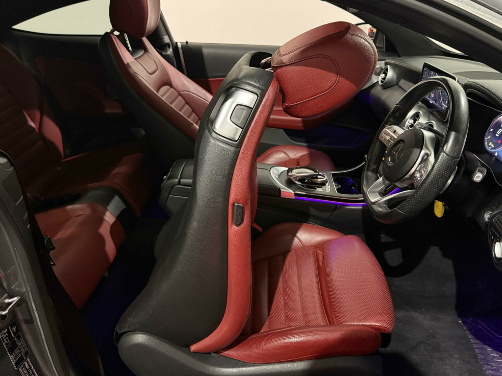 This 2018 Mercedes-Benz C200 AMG Line (Premium Plus) boasts exceptionally low mileage for its age, having covered just 36,000 miles. This particular C Class model features the sporty AMG Line trim and is powered by an efficient 1.5 litre petrol engine, meeting Euro 6 emissions standards. It comes equipped with striking 19 inch AMG 5 twin spoke alloy wheels finished in high gloss black. The Premium Plus package enhances the driving experience significantly, offering features such as Bluetooth connectivity, a branded sound system, LED headlights, keyless entry, and an opening panoramic sunroof. Inside, you'll find luxurious Cranberry Red leather upholstery, and convenience is further elevated by a 360 degree camera parking assistance system and wireless phone charging.Enjoy seamless connectivity with smartphone integration for both Android Auto and Apple CarPlay, allowing easy access to your favourite apps. The THERMATIC automatic climate control ensures a comfortable cabin temperature with its two zone system. With a fuel economy of 41 miles per gallon, this C200 AMG Line offers impressive efficiency, and its low CO2 emissions further highlight its considerate environmental performance compared to many similar vehicles. in alloy wheels - amg aero 5-twin-spoke - tremolite grey, abs - anti-lock braking system, amg bodystyling - front and rear apron and side skirts, attention assist, active bonnet - pedestrian safety measure which detects an impact and raises bonnet, active parking assist including parktronic, adaptive brake assist with hold function and brake drying function, adaptive brake lamps, agility control - sports suspension - lowered by 15mm, anti-theft protection package, automatic child seat recognition sensor, automatic seat-belt presenter for driver and front passenger, brake calipers - with mercedes-benz lettering and perforated front brake discs, central locking with interior switch - automatic locking and crash sensor with emergency opening function, collision prevention assist plus, dab digital radio tuner, door mirrors - electrically adjustable and heated, dual-stage airbags - driver and front passenger - sidebags in front seats - driver kneebag - pelvis bag and windowbags for driver - front passenger and rear passengers, dynamic select with a choice of driving modes - comfort - eco - sport - sport plus - individual, esp - electronic stability programme, electric parking brake, electronic key - chrome surround, first aid kit and warning triangle, floor mats - black with amg lettering, front centre armrest with stowage compartment, front door sill panels with mercedes-benz lettering, front electric windows with one-touch opening and closing including obstruction sensors, front seats - electrical height and backrest adjustment, full led tail lights, gearshift paddle on steering wheel, heated front seats, high-resolution 10.25in multimedia colour display, isofix child seat attachment points with top tether in rear, illuminated glove compartment, interior lighting package, mercedes me connect - standard services, mercedes me connect - vehicle set-up and vehicle monitoring, mirror package, outside temperature display, pre-wiring for sd navigation system, premium plus package, radiator grille - diamond grille with integrated star - chrome pins, radio aerial integrated into rear window, rain sensing windscreen wipers, remote boot release, reversing camera, speedtronic cruise control and variable speed limiter, seat belts - black, seat comfort package, seats - rear split folding 40-20-40, service indicator assyst, smartphone integration via android auto or apple carplay, speakers with frontbass, sports direct-steer system with speed sensitive steering, sports exhaust system, sports pedals in brushed stainless steel with rubber studs, sports seats with integrated head restraints, status display for rear seat belts in instrument cluster, steering column - manually adjustable for height and reach, steering wheel - 3-spoke multi-function amg in leather with flattened bottom section - chrome inserts and perforated leather in grip area, steering wheel - multi-function with audio and onboard settings control, stowage - double cup holder in centre console, stowage package, sun visors with illuminated vanity mirrors, thermatic - automatic climate control - two-zone, tirefit with tyre inflation compressor, tinted glass all round - green, top surround of side windows in polished aluminium, trim - black ash wood with aluminium door trims, two usb ports and an sd card slot in centre console, tyre pressure monitoring system, visible twin-pipe exhaust trim integrated into rear bumper, privacy glass, 19in alloy wheels - amg 5-twin-spoke light painted in high-gloss black, leather - cranberry red, trim - grey oak open-pore