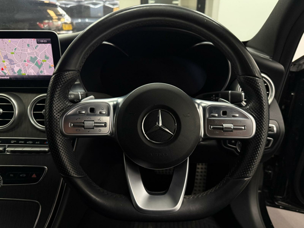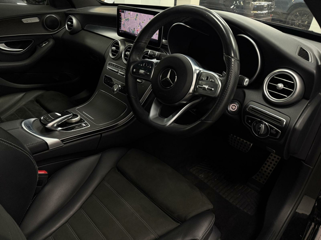 This 2019 Mercedes Benz C Class C200 AMG Line (Premium) offers a refined driving experience with its efficient 1.5 litre petrol engine. As a Euro 6 compliant vehicle, it benefits from lower CO2 emissions, making it a more environmentally conscious choice. The AMG Line trim enhances its sporty appeal, while the Premium package adds desirable features such as LED headlights for improved visibility and convenient wireless phone charging. Inside, you'll find a striking 12.3 inch digital instrument display and THERMATIC automatic climate control for personalised comfort.Navigating tight spaces is made effortless with the Active Parking Assist, which includes front and rear sensors, complemented by a clear reversing camera. These advanced parking assistance systems demonstrate how this C Class is designed to make your journeys smoother and more convenient than many other vehicles. The combination of its stylish AMG Line design, premium features, and efficient Euro 6 engine makes this Mercedes Benz C Class a compelling option for those seeking a blend of performance, technology, and practicality. ivacy glass, 12.3in digital instrument display, artico leather-dinamica microfibre - black, 18in alloy wheels - aero 5-spoke - silver, abs - anti-lock braking system, amg bodystyling - front and rear apron and side skirts, attention assist, active bonnet - pedestrian safety measure which detects an impact and raises bonnet, active parking assist including parktronic, adaptive brake assist with hold function and brake drying function, adaptive brake lamps, agility control - sports suspension - lowered by 15mm, alarm system with immobiliser and interior protection, audio 20 cd, automatic child seat recognition sensor, automatically dimming rear view mirror and drivers door mirror, brake calipers with mercedes-benz lettering, central locking with interior switch - automatic locking and crash sensor with emergency opening function, childproof locks - manually operated for rear doors and electrically operated for rear power windows, collision prevention assist plus, dab digital radio tuner, door mirrors - electrically adjustable and heated, dual-stage airbags - driver and front passenger - sidebags in front seats - driver kneebag - pelvis bag and windowbags for driver - front passenger and rear passengers, dynamic select with a choice of driving modes - comfort - eco - sport - sport plus - individual, esp - electronic stability programme, electric parking brake, electric windows - 4 - with one-touch opening and closing - including obstruction sensors, electronic key - chrome surround, first aid kit and warning triangle, floor mats - black with amg lettering, front centre armrest with stowage compartment, front door sill panels with mercedes-benz lettering, front seats - electrical height and backrest adjustment and four-way lumbar adjustment, full led tail lights, gearshift paddle on steering wheel, headlamps - led high performance with integrated led daytime running lights, heated front seats, high-resolution 10.25in multimedia colour display, isofix child seat attachment points with top tether in rear, illuminated glove compartment, interior lighting package, mercedes me connect - vehicle monitoring, mirror package, outside temperature display, pre-wiring for sd navigation system, premium package, radiator grille - diamond grille with integrated star - chrome pins, radio aerial integrated into rear window, rain sensing windscreen wipers, remote boot release, reversing camera, speedtronic cruise control and variable speed limiter, seat belts - black, seat comfort package, seats - amg sports, seats - rear split folding 40-20-40, service indicator assyst, smartphone integration via android auto or apple carplay, speakers with frontbass, sports direct-steer system with speed sensitive steering, sports pedals in brushed stainless steel with rubber studs, status display for rear seat belts in instrument cluster, steering column - manually adjustable for height and reach, steering wheel - 3-spoke multi-function amg in black nappa leather with flattened bottom section and chrome inserts and perforated leather in grip area, steering wheel - multi-function with audio and onboard settings control, stowage - double cup holder in centre console, stowage package, sun visors with illuminated vanity mirrors, thermatic - automatic climate control - two-zone, tirefit with tyre inflation compressor, tinted glass all round - green, top surround of side windows in polished aluminium, trim - black open-pore ash wood, two usb ports and an sd card slot in centre console, tyre pressure monitoring system, visible twin-pipe exhaust trim integrated into rear bumper