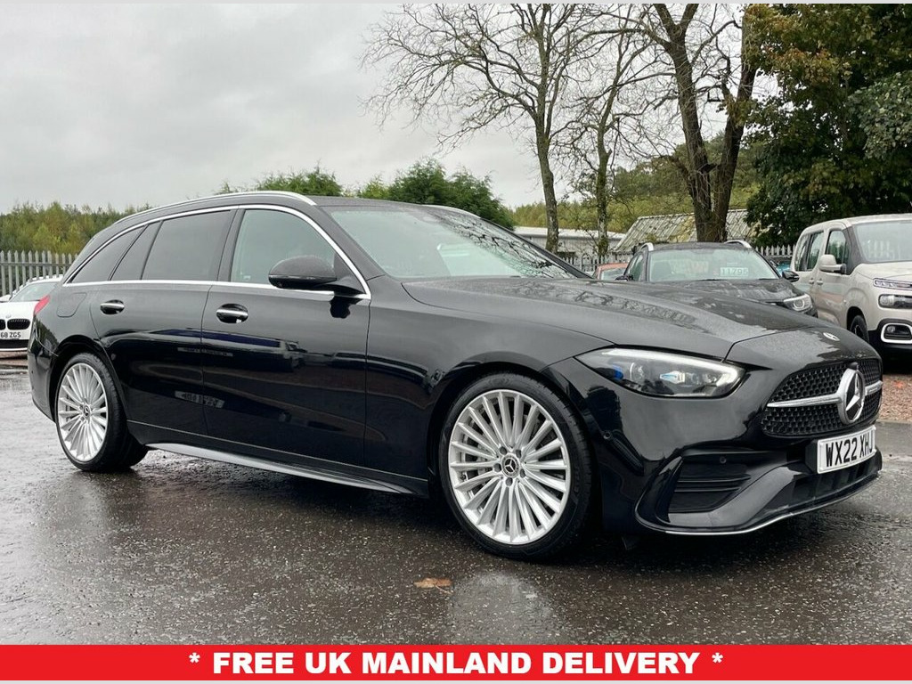 The 2022 Mercedes-Benz C-Class 1.5 C200 MHEV AMG Line Premium Estate is a sleek and versatile premium estate car, combining comfort, technology, and efficiency. Powered by a 1.5-litre petrol engine with mild-hybrid (MHEV) assistance, it produces 224 bhp through a G-Tronic+ automatic gearbox, offering refined performance and smooth driving. The AMG Line Premium trim adds sporty styling and high-end features, including AMG body styling, upgraded alloys, digital cockpit, premium sound system, panoramic sunroof, heated sports seats, and advanced driver-assistance technology. With its long-roof estate design, it provides excellent practicality, offering a spacious boot and flexible seating — ideal for families and those needing extra carrying capacity. Fuel economy is strong for its class at around 40–45 mpg combined, thanks to the mild-hybrid system, which improves efficiency and responsiveness. Rivals include the BMW 3 Series Touring, Audi A4 Avant, and Volvo V60, but the C-Class Estate stands out for its luxurious interior, smooth hybrid-assisted performance, and everyday practicality. Brumester sound system , Leather - Black, Obsidian Black, 11.9in High Resolution Multimedia Colour, 12.3in Digital Instrument Cluster Displa, 19in Alloy Wheels - AMG Multi-Spoke Desi, ABS - Anti-Lock Braking System, AMG Bodystyling - Front and Rear Apron -, AMG Front Bumper with Sporty Air Intakes, AMG Rear Bumper with High Gloss Chrome E, AMG Skirts in Vehicle Colour, ATTENTION Assist, Active Blind Spot Assist, Active Bonnet - Pedestrian Safety Measur, Active Brake Assist, Active Lane Keeping Assist, Adaptive Brake Assist with Hold Function, Adaptive Brake Lamps, Agility Control - Sports Suspension - Lo, Air Vents - Black with Silver Chrome Ele, Ambient Lighting, Automatic Child Seat Recogn