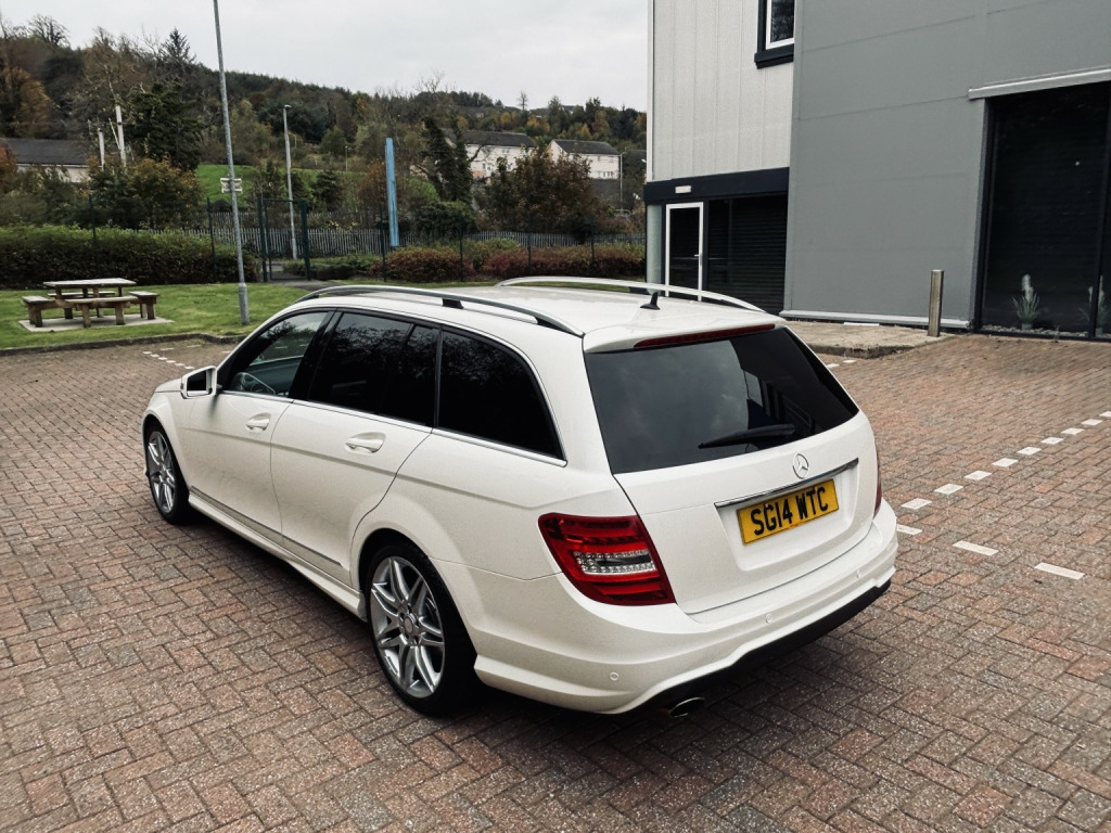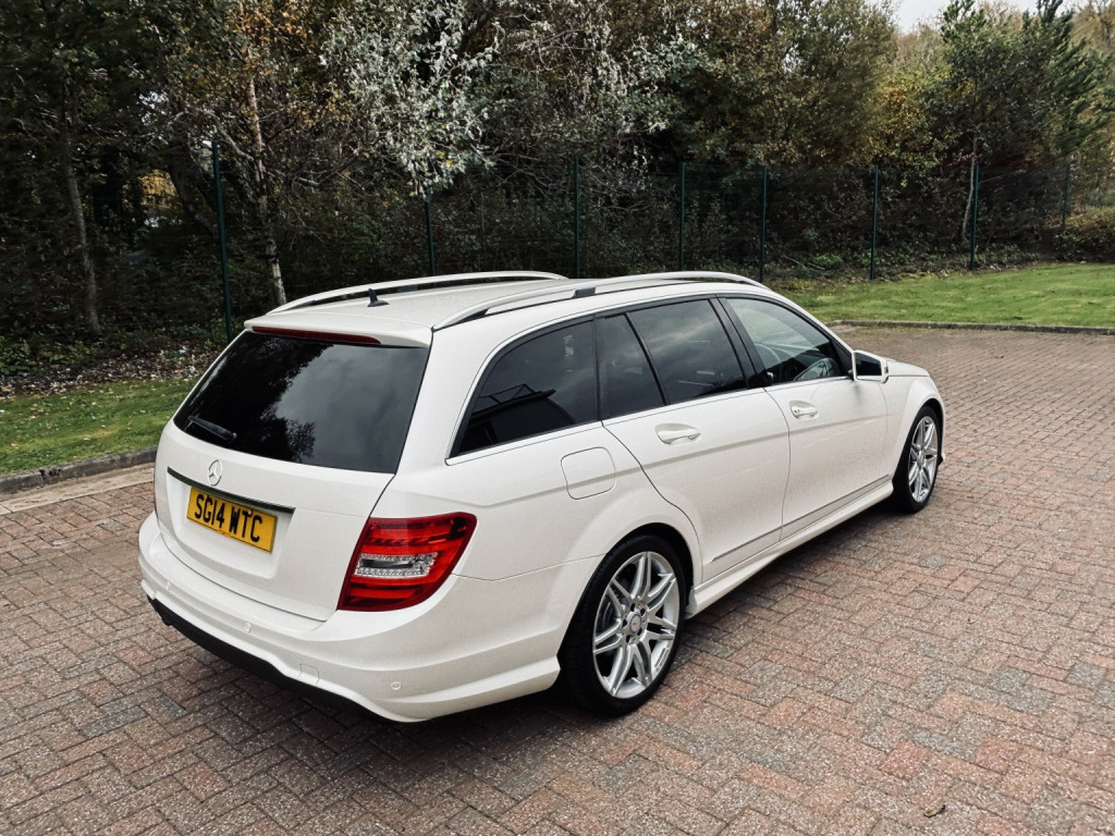 Hello & welcome to the sale of this stunning White 2014 Mercedes Benz C Class C180 AMG Sport Plus Estate is a Euro 6 ULEZ & Scottish emission zones compliant , Correctly maintained example full Mercedes Benz service history with invoices from new , Just completed a major service October 2025 , offering a refined driving experience. Powered by a 1.6L petrol engine, this AMG Sport Plus trim model comes equipped with a comprehensive Driving Assistance Package Adaptive Cruise Control for enhanced safety and comfort. Audio 20 radio with a 6-disc CD changer provides excellent Blue-tooth audio & telephony entertainment options. For added passenger safety, rear side bags are also included. Newly refurbished 18 inch AMG alloy wheels in Hyper silver , tyre condition excellent . , The C180 AMG Sport Plus stands out with its thoughtful combination of features. The inclusion of the Driving Assistance Package, with its advanced safety aids, demonstrates a commitment to driver support that elevates it above many other vehicles in its class. Furthermore the detail that truly sets this Mercedes Benz apart. This model represents a well appointed and capable choice for those seeking quality and advanced features in an executive car. Adaptable load space options , Excellent drive and road manners , a great balance between performance & economy 51MPG Extra Urban ,2 x Keys , all services invoices & manuals present , Will be supplied with 6 months premium National parts & labour warranty with AA breakdown cover ( option to extend ) , Will be supplied with a fresh 12 months MOT along with a complimentary RAC Platinum parts & labour warranty with home start /breakdown cover / onward travel cover option to extend 12 / 24 / 36 months . Any inspection welcome , Part exchange welcome , Competitive finance available on this vehicle subject to status . Any inspection is welcome. We are located 10 mins from Glasgow Airport . Please note we work on an appointment basis , please contact us to arrange a viewing / test drive . ,