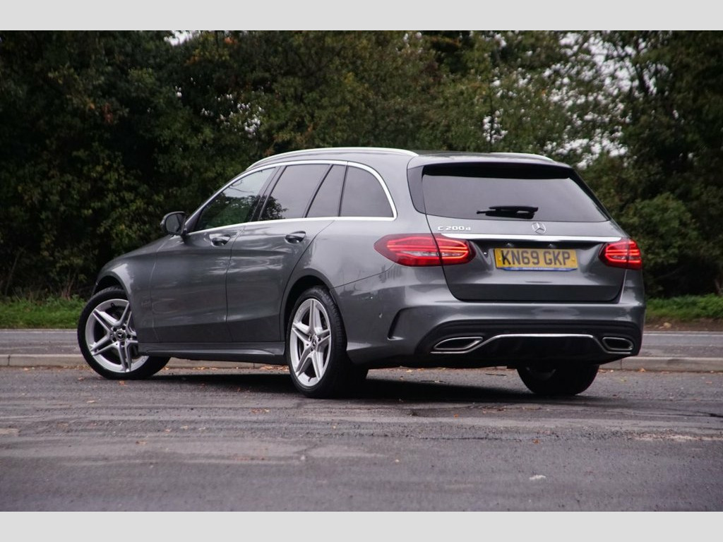 Prestige Car Supermarket in York presents this elegant 2019 MERCEDES-BENZ C-CLASS 1.6 C200d AMG Line Estate, a five-door diesel G-Tronic+ Euro 6 model delivering 160 ps. Finished in the optional Selenite Grey metallic, this C-Class Estate features AMG Bodystyling, 18-inch AMG Aero 5-Twin-Spoke alloy wheels, chrome roof rails, and an Easy-Pack Automatic Powered Tailgate. The luxurious interior is appointed with optional Black Leather, offering heated front AMG Sports Seats with electrical height and backrest adjustment, THERMATIC automatic two-zone climate control, and a 3-spoke multi-function AMG Nappa leather steering wheel with gearshift paddles. Technology is comprehensive with a high-resolution 10.25in Multimedia Colour Display, Audio 20 with Integrated Media Interface and Bluetooth, DAB Digital Radio Tuner, and a Reversing Camera with Active Parking Assist including PARKTRONIC. Practical features include electric windows, electrically adjustable and heated door mirrors with auto-dimming, and split-folding rear seats. Safety is paramount with LED High Performance Headlamps with Integrated LED Daytime Running Lights, Full LED Tail Lights, Adaptive Brake Assist, Collision Prevention Assist Plus, and a comprehensive airbag system. This Mercedes-Benz C200d AMG Line Estate combines executive styling, a premium and practical interior, and efficient diesel performance, making it a highly desirable and versatile vehicle. Privacy Glass, Selenite Grey, Leather - Black, ABS - Anti-Lock Braking System, AMG Bodystyling - Front and Rear Apron a, ATTENTION Assist, Active Bonnet - Pedestrian Safety Measur, Active Parking Assist including PARKTRON, Adaptive Brake Assist with Hold Function, Adaptive Brake Lamps, Agility Control - Sports Suspension - Lo, Alarm System with Immobiliser and Interi, Brake Calipers with Mercedes-Benz Letter, Audio 20 with Integrated Media Interface, Automatic Child Seat Recognition Sensor, Automatically Dimming Rear View Mirror a, Central Locking with Interior Switch - A, Childproof Locks - Manually Operated for, Collision Prevention Assist Plus, DAB Digital Radio Tuner, Door Mirrors - Elec