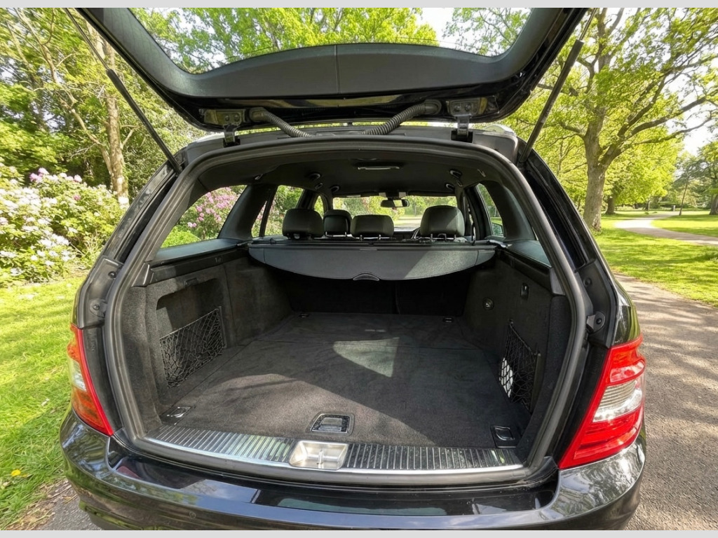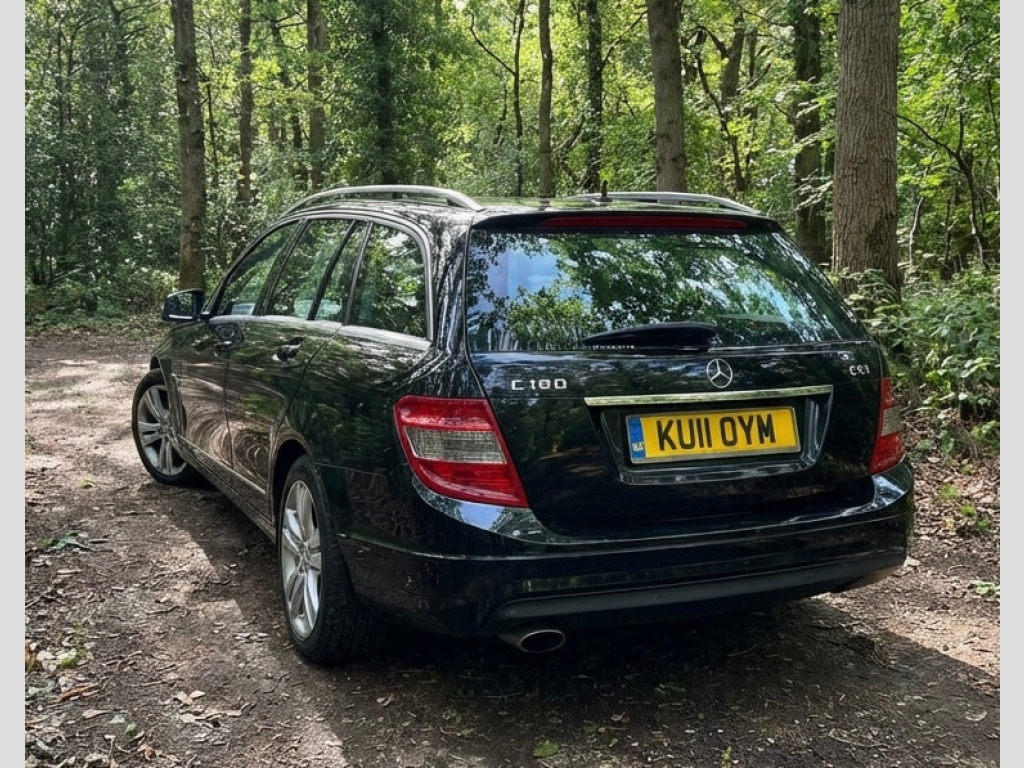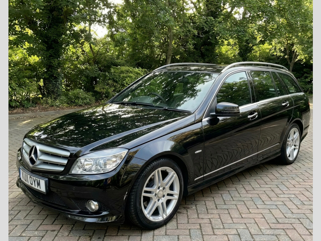 2011 Mercedes Benz C180 Sport 1.8 CGi Blue Efficiency Automatic Estate CarFinished in Met Black with Half Leather interior this good looking Mercedes Estate car presents well.Covered only 75900 miles since first registered new in April 2011.Driving superbly the car has a substantial Mercedes Benz service history. The full original owners manual book pack is present with 2 remote keys.In our opinion this quality Merc Estate now represents good value for money at just £6899, v power outlet, 8 speakers, bluetooth handsfree telephone kit, mercedes audio 20 radio & single cd with colour display, 17in 6 twin spoke amg alloy wheels, front foglights with chrome rings, tinted windows, aluminium centre console trim, auto climate control, central storage box, exterior badge deletion