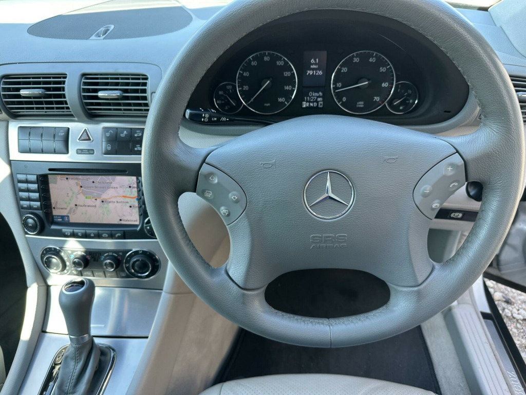The second owner has had the car since it was three years old and has always kept it garaged, hence the fantastic condition.This 2005 Mercedes Benz C Class C180 Avantgarde SE offers a refined driving experience with a focus on efficiency and affordability. Powered by a 1.8 litre petrol engine, this Avantgarde SE model combines Mercedes Benz's renowned build quality with practical everyday usability.This C Class C180 Avantgarde SE is designed to be economical, achieving a respectable 34 miles per gallon. Furthermore, it sits in a low insurance group, making it a cost effective choice for many drivers. Its low CO2 emissions also contribute to its appeal, indicating a more environmentally conscious performance compared to similar vehicles.. Satellite Navigation, Full Grey Leather Interior, Air Conditioning, Alloy Wheels (16in), Cruise Control, Mirrors External (Electric Heated/Folding), Seat Height Adjustment (Electric Driver/Passenger), Automatic Headlights, Remote Central Locking, 2 Keys, Electric Windows (Front/Rear), Automatic Dual Climate Control, In Car Entertainment (Radio/CD), Steering Wheel Mounted Controls, Alarm, Immobiliser, Paint Metallic, Front Fog Lights, Auto Dimming Rear-View Mirror, Anti-Lock Brakes, Traction Control, Electronic Stability Programme, Armrest, On Board Computer, Air Bag Driver, Air Bag Passenger, Air Bag Side, Head Air Bags, Adjustable Steering Column/Wheel, Centre Rear Seat Belt, Computer, Head Restraints, Power Socket, Power-Assisted Steering, Side Protection Mouldings, Sun Visors with Illuminated Vanity Mirrors, Spare Wheel (Space Saver), HPI Clear, SmartNav, Leather Seating. Full service history