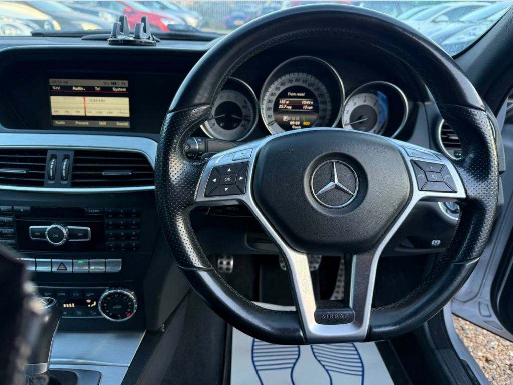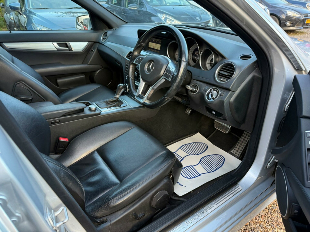 Full leather electric heated seat, front & Rear parking sensor, This 2013 Mercedes Benz C Class C250 AMG Sport offers a compelling blend of performance and luxury. Finished in the sought after AMG Sport trim, this 1.8L petrol model boasts a respectable 42 mpg on the highlight fuel economy setting. For your convenience, it comes equipped with Parktronic rear parking sensors and advanced parking guidance, alongside automatic headlights that feature Bi Xenon technology. Inside, you'll find the comfort of two zone independently adjustable automatic climate control for both driver and passenger, and a Bluetooth interface for hands free telephone calls.Experience the dynamic capabilities of this C Class, with its impressive 0-62mph acceleration in just 7.2 seconds. This performance is complemented by low CO2 emissions, indicating a more efficient drive compared to many similar vehicles. The combination of its AMG Sport styling, efficient 1.8L petrol engine, and advanced features makes this Mercedes Benz C Class a well rounded choice for discerning drivers. in alloy wheels - amg 5 twin spoke design, 3 lamella grille with integral star, 5.8in colour display, abs - anti-lock braking system, amg bodystyling - front and rear apron - side skirts, asr - acceleration skid control, attention assist, active light system, adaptive brake system with full hold function, agility control suspension with adaptive damping system, airbags - drivers kneebag, airbags - dual stage - driver, airbags - dual stage - front passenger, airbags - front sidebags, alarm system with immobiliser and interior protection, audio 20 radio system, automatic child seat recognition sensor, automatic climate control - two-zone-independently adjustable for driver and passenger, automatic headlights, automatically dimming rear view mirror, automatically dimming rear view mirror and folding exterior door mirrors, bas - brake assist, bag hooks in boot, bluetooth interface for hands-free telephone, central controller dial to operate audio and telephone functions, centre armrest - front with storage, chrome waistline and bumper highlights, colour instrument cluster, cruise control, cup holder - double - front, door mirrors - electrically folding, door sill panels - stainless steel inlays with mercedes-benz lettering, door pockets - front and rear, drilled brake discs with mb branded caliphers, dynamic range adjustment and cornering lights, esp - electronic stability programme, electric windows - 4 - with one-touch opening and closing - including obstruction sensors, first aid kit and warning triangle, floor mats - amg, front seats - electrical height and backrest adjustment, head restraints - front seats - neck-pro active, headlight wash system, headlights - adaptive high beam assist, headlights - bi xenon, headlights - cornering light function, high level third brake light, hill start assist, isofix child seat fixing points in rear - two outer seats, intelligent light system, led daytime running lights - bar, led rear tail lights, lumbar support - front seats, mb star in grill, parcel nets in rear passenger footwell, parktronic - front with advanced parking guidance, parktronic - rear with advanced parking guidance, partial electric front seats, perforated front brake discs and brake calipers with mercedes-benz lettering, power steering - speed sensitive, pre-safe anticipatory safety system, pre-wiring for becker map pilot navigation system, rain-sensing wipers, remote central locking, roof lining - black, sd card slot, seats - amg sports, service indicator assyst plus, single cd drive - mp3 compatible, spare wheel - space saver, speakers x8, sports pedals - stainless steel with rubber studs, sports suspension, stainless steel pedals, steering column - manually adjustable for height and reach, steering wheel - amg 3-spoke nappa leather, steering wheel - multi-function/12 button, steering wheel - multi-function-12-button-controls audio and onboard settings, steering wheel - nappa leather, storage box under front seats, stowage package, sun visors with illuminated vanity mirrors, sunglasses compartment, tailgate handle - chrome trim, telephone keypad, tinted glass all round - green, trim - aluminium, trim - brushed aluminium, tyre pressure loss warning system, usb and aux-in ports in centre console, windowbags for driver-front passenger and rear passengers, leather - black, seats - heated front