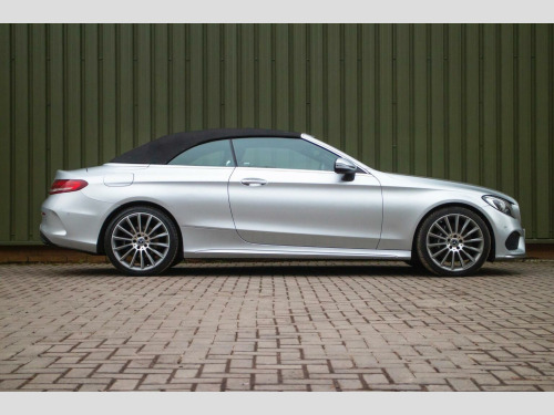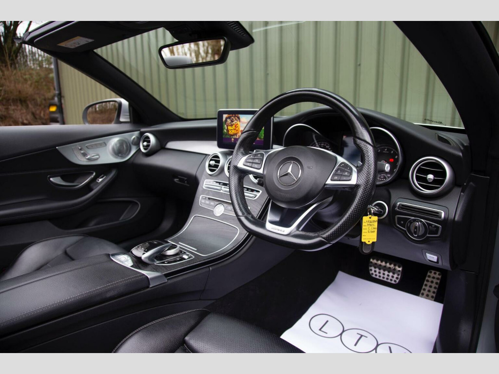 19 AMG MULTI SPOKE ALLOYS -BURMESTER SURROUND SOUND - AIRSCARF HEATING - Presenting an impeccable 2016 66 registered Mercedes Benz C220 AMG Line (Premium Plus) Cabriolet, finished in the elegant Iridium Silver metallic, complemented by an anthracite leather interior. With just 35,000 miles covered from new, this outstanding cabriolet exemplifies luxury, refinement and meticulous care. This C-Class Cabriolet features a high level of specification, beginning with 19 AMG multi spoke alloy wheels and the signature diamond-look front grille, creating a dynamic and sophisticated presence. The AMG styling package, complete with a sculpted front spoiler and sleek side skirts, adds to its refined aesthetic, while the LED headlights with automatic activation and ambient illumination enhance both visibility and ambiance. Inside, the cabin is crafted for comfort, with electric heated front seats featuring memory function, an analogue clock and dual-zone automatic climate control ensuring a pleasurable environment for every journey. The Airscarf heating system provides warmth on cooler days, allowing for comfortable open air driving year round. Practical amenities include a through loading system, folding exterior mirrors, and rain-sensing wipers for effortless everyday usability. Advanced technology is integrated throughout, featuring a Burmester surround sound system, rear view camera, active park assist and an intuitive navigation system with live traffic capability. The high-line tyre pressure monitor and E-Call emergency call system enhance safety, while the DAB digital tuner, on-board computer, and mirror package further contribute to a seamless driving experience. Fastidiously maintained and presented in an alluring colour combination, this C220 AMG Line (Premium Plus) Cabriolet is undeniably one of the most exceptional examples.****VIEWING STRICTLY BY APPOINTMENT ONLY - FOR FURTHER INFORMATION REGARDING THIS VEHICLE AND ANY OTHER PREMIUM MARQUE IN STOCK, PLEASE CALL SALES DIRECT. VEHICLE FINANCE SPECIALISTS OFFERING COMPETITIVE PACKAGES AND PART EXCHANGE PRICES****