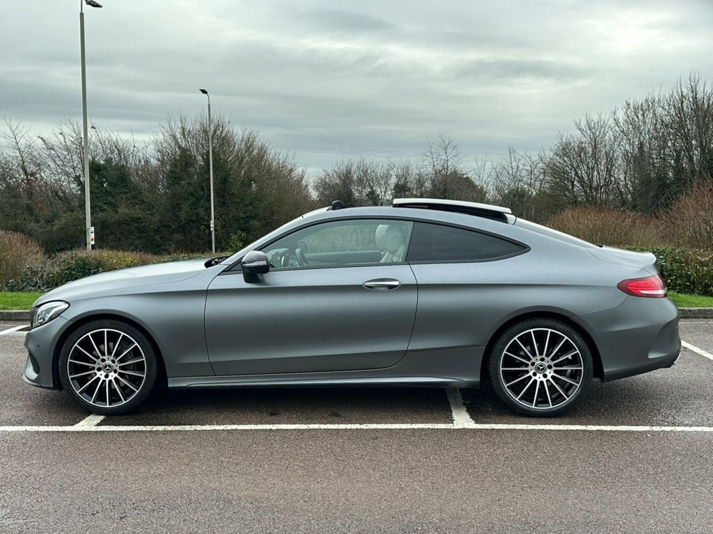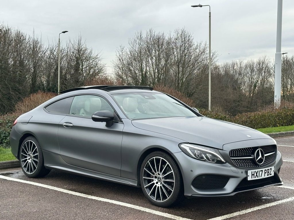 Just arrived — a stunning Mercedes-Benz C-Class Coupé finished in rare Magno Selenite Grey with an exquisite Porcelain leather interior. This rare example has just 1 Private Owner from New & Full Mercedes Dealer History. High Specification which includes, Premium Plus Package, Night Package, 360 Degree Camera, Burmester Surround Sound System, Reverse Camera Assist, Electric Panoramic Sunroof, Front Memory Seats, Front Electric/Heated Seats, COMAND Online Satellite Navigation, Keyless-Go Package, Mirror Package, Parking Package. This is a 2017 (17) ULEZ Compliant vehicle with genuine mileage of 43,000 miles. A genuine one-owner car in exceptional condition, finished in one of Mercedes' most desirable colour combinations. Rarely do examples of this calibre come to market — the first to view will not be disappointed. Video attached on advert. Leather - Porcelain, Selenite Grey Magno, 360 Degree Camera, 19in Alloy Wheels - AMG Multi-Spoke Desi, Night Package, 18in Alloy Wheels - AMG 5 Spoke Design -, ABS - Anti-Lock Braking System, AMG Bodystyling - Front and Rear Apron a, ATTENTION Assist, Active Parking Assist including PARKTRON, Adaptive Brake Lamps, Adaptive Brake with Hold Function - Hill, Agility Control - Sports Suspension - Lo, Audio 20 CD, Automatic Child Seat Recognition Sensor, Automatic Seat-Belt Presenter for Driver, Bluetooth Interface for Hands-free Funct, Central Locking with Interior Switch - A, Collision Prevention Assist Plus, DAB Digital Radio Tuner, Door Mirrors - Electrically Adjustable a, Dynamic Select with
