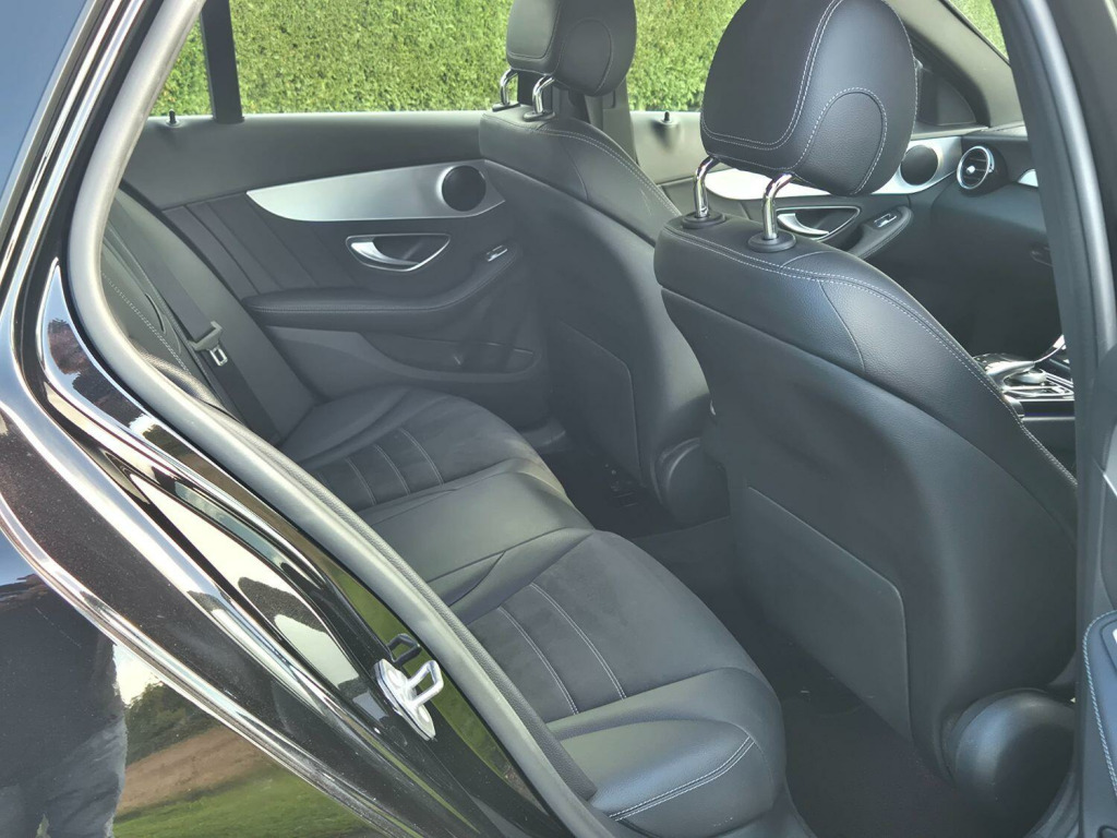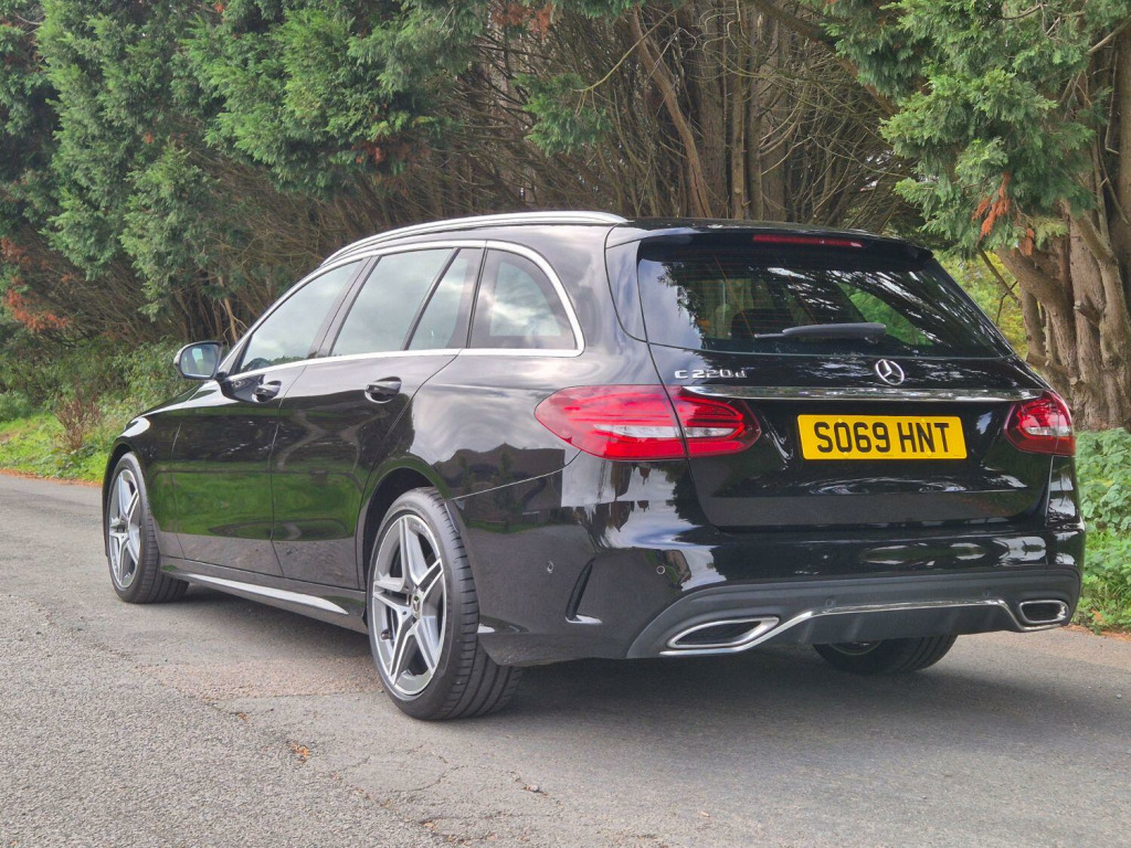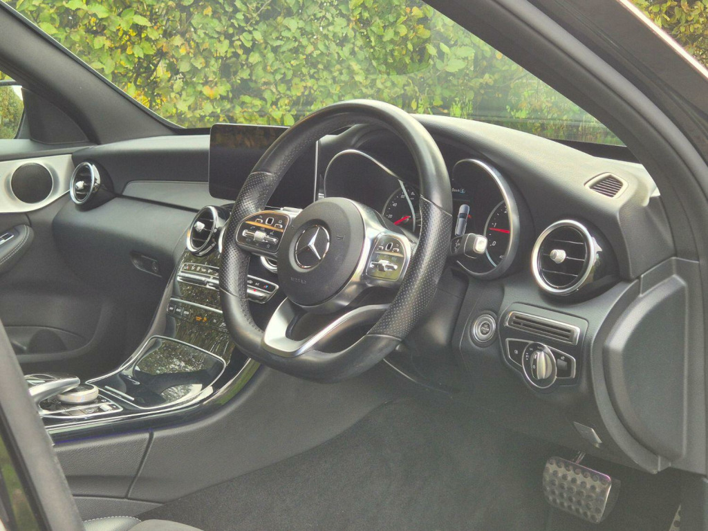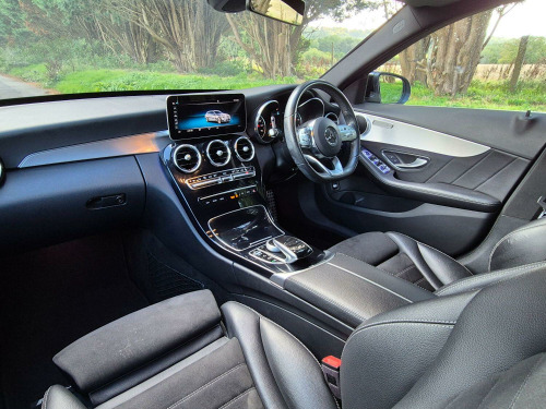 2019 Mercedes-Benz C220d AMG Line (Premium) Estate in metallic black with full Black Artico leather interior. Well specified with reverse camera, European satellite navigation, Apple CarPlay & Android Auto, ambient lighting pack, cruise control, front and rear parking sensors, and electric tailgate. Additional features include power folding mirrors and unmarked 18 AMG alloy wheels. , Supplied with full service history and MOT valid through to May 2026, complete with 2 keys.