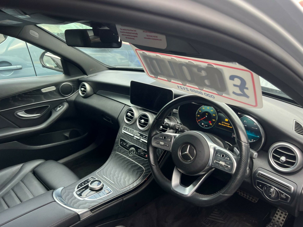 This is a Mercedes-Benz C Class, a car first registered in 2019. It's the C220d AMG Line Edition, with the AMG Line Edition trim and a 2.0L diesel engine. This vehicle has had only one owner.Among its features are MULTIBEAM LED headlights, including LED headlights, and THERMATIC two-zone automatic climate control, including climate control. It also boasts heated front seats, active parking assist with PARKTRONIC, including front and rear parking sensors, and a reversing camera.This C Class is a Euro 6 emission class vehicle with low CO2 emissions, making it kinder to the environment compared to similar cars. It can accelerate from 0-62mph in just 7.0 seconds, demonstrating its impressive performance capabilities when compared to other vehicles in its class. Just had full service .3in digital instrument display, 18in alloy wheels - amg aero 5-twin-spoke - tremolite grey, abs - anti-lock braking system, amg bodystyling - front and rear apron and side skirts, attention assist, active bonnet - pedestrian safety measure which detects an impact and raises bonnet, active parking assist including parktronic, adaptive brake assist with hold function and brake drying function, adaptive brake lamps, agility control - sports suspension - lowered by 15mm, alarm system with immobiliser and interior protection, analogue clock, audio 20 with integrated media interface and bluetooth interface with hands-free function, automatic child seat recognition sensor, automatically dimming rear view mirror and drivers door mirror, brake calipers with mercedes-benz lettering, central locking with interior switch - automatic locking and crash sensor with emergency opening function, childproof locks - manually operated for rear doors and electrically operated for rear power windows, collision prevention assist plus, dab digital radio tuner, door mirrors - electrically adjustable and heated, dual-stage airbags - driver and front passenger - sidebags in front seats - driver kneebag - pelvis bag and windowbags for driver - front passenger and rear passengers, dynamic select with a choice of driving modes - comfort - eco - sport - sport plus - individual, esp - electronic stability programme, easy-pack automatic powered tailgate, electric parking brake, electric windows - 4 - with one-touch opening and closing - including obstruction sensors, electronic key - chrome surround, first aid kit and warning triangle, floor mats - black with amg lettering, front centre armrest with stowage compartment, front door sill panels with mercedes-benz lettering, front seats - electrical height and backrest adjustment and four-way lumbar adjustment, full led tail lights, gearshift paddle on steering wheel, heated front seats, high-resolution 10.25in multimedia colour display, isofix child seat attachment points with top tether in rear, illuminated glove compartment, interior lighting package, load compartment cover, multibeam led headlights, mercedes me connect - vehicle set-up and vehicle monitoring, mirror package, outside temperature display, pre-wiring for sd navigation system, privacy glass, radiator grille - diamond grille with integrated star - chrome pins, radio aerial integrated into rear window, rain sensing windscreen wipers, remote boot release, reversing camera, roof rails - chrome, sd card-based navigation system, speedtronic cruise control and variable speed limiter, seat belts - black, seat comfort package, seats - amg sports, seats - rear split folding 40-20-40, service indicator assyst, speakers with frontbass, sports braking system with perforated front brake discs, sports direct-steer system with speed sensitive steering, sports pedals in brushed stainless steel with rubber studs, status display for rear seat belts in instrument cluster, steering column - manually adjustable for height and reach, steering wheel - 3-spoke multi-function amg in black nappa leather with flattened bottom section and chrome inserts and perforated leather in grip area, steering wheel - multi-function with audio and onboard settings control, stowage - double cup holder in centre console, stowage package, sun visors with illuminated vanity mirrors, thermatic - automatic climate control - two-zone, tirefit with tyre inflation compressor, tinted glass all round - green, top surround of side windows in polished aluminium, trim - black open pore ash, two usb ports and an sd card slot in centre console, tyre pressure monitoring system, visible twin-pipe exhaust trim integrated into rear bumper