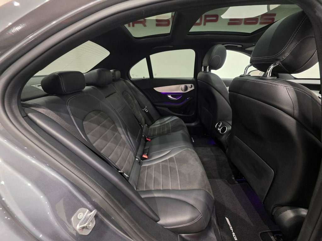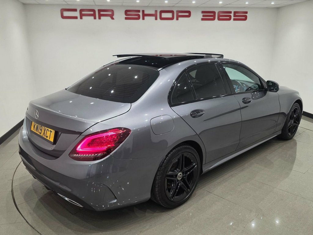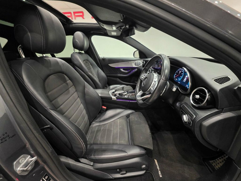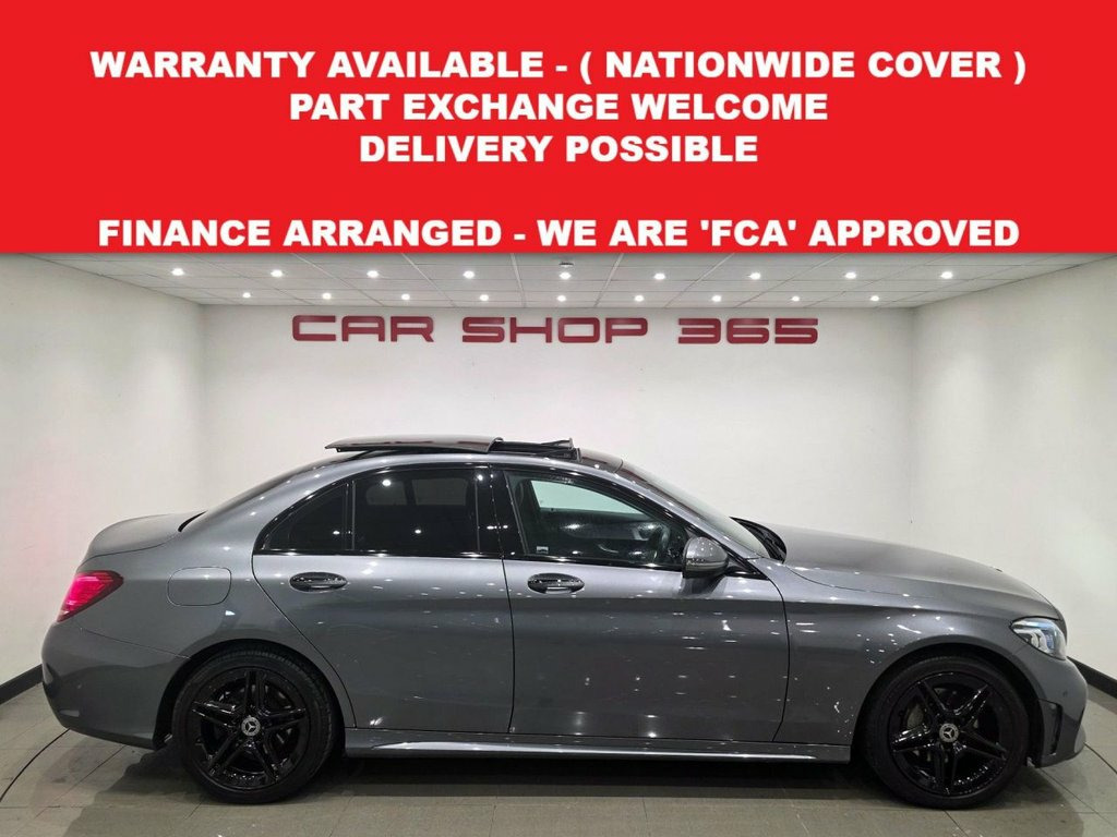 TOP OF THE RANGE AMG LINE WITH 'PREMIUM PLUS' PACKAGE AND NIGHT PACKAGE PLUS + 4 DOOR SALOON + 2.1 C220D TURBO DIESEL ( 194 PS ) EURO 6 + 9G-TRONIC+, AUTO-PADDLESHIFT + DYNAMIC SELECT WITH ECO-COMFORT-INDIVIDUAL-SPORT-SPORT+ MODES + DOCUMENTED SERVICE HISTORY RECORD + COMES WITH 12 MONTHS MOT AND ENGINE OIL SERVICE + SELENITE GREY METALLIC PAINTWORK AND PARTIAL BLACK LEATHER / ALCANTARA UPHOLSTERY COMPLIMENTED WITH CONTRAST GREY STITCH + ELECTRIC-HEATED-EXTENDABLE FRONT AMG SPORTS SEATS + SEAT COMFORT PACK + PIANO BLACK AND BRUSHED ALUMINIUM INTERIOR TRIM + AMG STYLING PACKAGE + 18 INCH AMG ALLOYS + SPORTS PACKAGE / SUSPENSION + PANORAMIC SLIDING SUNROOF + L.E.D. HEADLIGHTS + ADAPTIVE HIGH BEAM ASSIST PLUS + 360 CAMERA PLUS FRONT-REAR ACTIVE PARKING ASSIST WITH PARKTRONIC + KEYLESS ENTRY-LOCK-GO + STOP-START + TRAFFIC SIGN RECOGNITION + COLLISION PREVENTION ASSIST PLUS + AMBIENT LIGHTING + DIGITAL INSTRUMENTAL DISPLAY + COMAND NAVIGATION + LINGUATRONIC + BURMESTER SURROUND SOUND + MB CONNECT + DAB RADIO-CD, USBX 2, MEDIA + DVD PLAYER + SMARTPHONE INTERFACE + ANDROID AUTO / APPLE CARPLAY + BLUETOOTH + SPEEDTRONIC CRUISE CONTROL WITH VARIABLE SPEED LIMITER + ATTENTION ASSIST + DUAL CLIMATE CONTROL + OB COMPUTER + TRACTION + TYRE P/C + AMG FLAT BOTTOM MULTIFUNCTIONAL LEATHER S/WHEEL WITH PADDLESHIFT + AUTO- LIGHTS, WIPERS, DIMMING REAR VIEW MIRROR + P/STEERING + REMOTE C/LOCKING + E/WINDOWS + POWER FOLDING E/MIRRORS + ILLUMINATED DOOR SILLS + ISOFIX + SPLIT FOLDING REA Leather - Black, Selenite Grey Magno, Driving Assistance Package, Trim - High-Gloss Black with Aluminium D, Privacy Glass, 18in Alloy Wheels - AMG Aero 5-Twin-Spok, ABS - Anti-Lock Braking System, AMG Bodystyling - Front and Rear Apron a, ATTENTION Assist, Active Bonnet - Pedestrian Safety Measur, Active Parking Assist including PARKTRON, Adaptive Brake Assist with Hold Function, Adaptive Brake Lamps, Agility Control - Sports Suspension - Lo, Alarm System with Immobiliser and Interi, Automatic Child Seat Recognition Sensor, Automatically Dimming Rear View Mirror a, Brake Calipers with Mercedes-Benz Letter, Central Locking with Interior Switch - A, Childproof Locks - Manually Operated for, Co