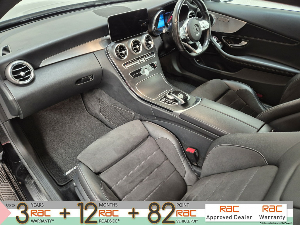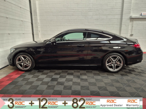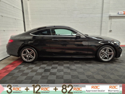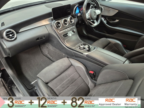 Here we present a 2019 Mercedes Benz C Class C300 AMG Line Premium. Powered by the more powerful version of the 2.0L engine,this C300 is presented in the desirable AMG Line trim plus the Premium pack. It comes equipped with a great sound system featuring Bluetooth connectivity and LED High Performance Headlights with integrated LED Daytime Running Lights. ALso with Active Parking Assist including PARKTRONIC, which incorporates front & rear parking sensors and a reversing camera. , The Premium Package further enhances the spec by adding Android Auto and Apple CarPlay, along with wireless phone charging. This vehicle achieves an impressive fuel economy of 39 mpg. , - FREE 6 Months RAC Warranty (upgradeable to 36 Months)*, - FREE 12 Months RAC Roadside Rescue*, - FREE 12 month MOT if less than 6 Months remaining*, - 82 Point RAC Pre-Delivery Inspection Standard*, - BUY WITH CONFIDENCE: We are independently audited by the RAC every year to ensure we meet the requirements set by the Trading Standards Institute. - BUY WITH MORE CONFIDENCE: RAC Inspectors regularly carry out un-announced checks on our vehicles to ensure they meet their stringent standards. - Full Mercedes-Benz service history, - Just serviced at Mercedes-Benz dealer, - Metallic obsidian black, - Electric seat adjustment, - Heated seats, - Apple CarPlay, - Android Auto, - Rear view camera, - Power folding mirrors, - Keyless Start, - Ambient lighting pack with adjustable colours, - LED Hedlights, - Alcantara and Leather interior, - DAB digital radio, - Cruise control, - Privacy glass, - Sat Nav system, - MB Connect services, - Active park assist, - AMG specific iwc-design analogue clock, - Automatically dimming interior and exterior mirror, - Collision warning system with fcw-stop active brake application, - Through-loading feature, - Ecall emergency call system, - MB Touchpad for infotainment, - Tyre pressure monitor, - Road sign recognition system, - Black headliner, - Automatic high beam control plus, - Dynamic led headlamps, - Exterior AMG Styling, - Wireless telephone charging, - Drive program selection, - Supersport steering wheel - leather deep-embossed, - Interior amg line / interior amg sport package, - AMG double-spoke wheels, - Seatbelt butler, - Lumbar support, , - Visit our website for up to 100 IMAGES. Purchase from an RAC APPROVED DEALER with up to 36 MONTHS RAC WARRANTY*, 12 MONTHS ROADSIDE RESCUE*. HPI CLEAR WITH REPORT, 82 POINT RAC PREPARATION STANDARD* & SERVICE BOOK/PRINT/DIGITAL. Part exchange welcome. Low rate PCP/HP/ECP finance up to 84 months. Indoor showroom. Viewings by appointment. Showroom: 03330 145984. Mobile: 07535 112113. Most cars VAT Qualifying. Virtual viewing. Purchase VAT free for export. Specification information is supplied by a third party and as such may vary to the actual car. This data does not form any part of a buying contract. Please confirm specification prior to purchase. *For all qualifying vehicles, T&Cs apply. e&oe.