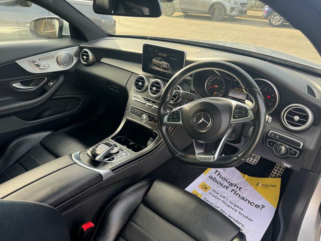This stunning Mercedes-Benz C Class C300 AMG Line Automatic boasts an impeccable history, having been owned by only two previous keepers and holding a clear vehicle history check. Registered in 2017, this C300 AMG Line (Premium Plus) variant features the sporty AMG Line trim and is powered by an efficient 2.0L petrol engine. Its Euro 6 emission class ensures it meets modern environmental standards, and you'll appreciate the generous boot space for all your needs. Experience impressive fuel economy with this model achieving up to 44 miles per gallon, a figure that highlights its efficiency compared to similar vehicles. Furthermore, its low CO2 emissions also set it apart, demonstrating a commitment to both performance and environmental consideration. This C Class offers a refined driving experience with a touch of sporty appeal. The car comes with full black heated leather interior, Parking sensors, glass roof, Hi spec sound system, 360 camera & parking sensors, power boot opening, great media system with satnav etc Part exchange welcome, finance arranged. 18in Alloy Wheels - AMG 5 Spoke Design -, 360 Degree Camera, ABS - Anti-Lock Braking System, Active Bonnet - Pedestrian Safety Measur, Active Parking Assist including PARKTRON, Adaptive Brake Lamps, Adaptive Brake with Hold Function - Hill, Agility Control - Sports Suspension - Lo, AMG Bodystyling - Front and Rear Apron a, Anti-Theft Protection Package, ATTENTION Assist, Audio 20 CD, Automatic Child Seat Recognition Sensor, Automatic Seat-Belt Presenter for Driver, Bluetooth Interface for Hands-free Funct, Central Locking with Interior Switch - A, Centre Armrest - Front with Stowage, Collision Prevention Assist Plus, DAB Digital Radio Tuner, Diamond Silver, Door Mirrors - Electrically Adjust
