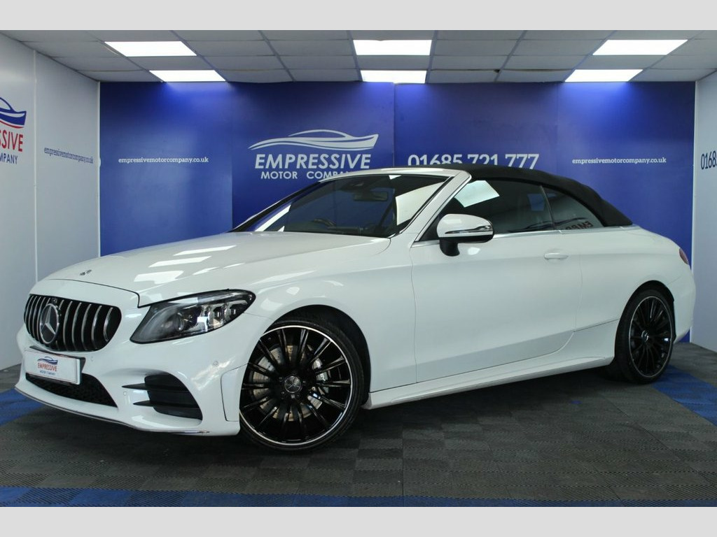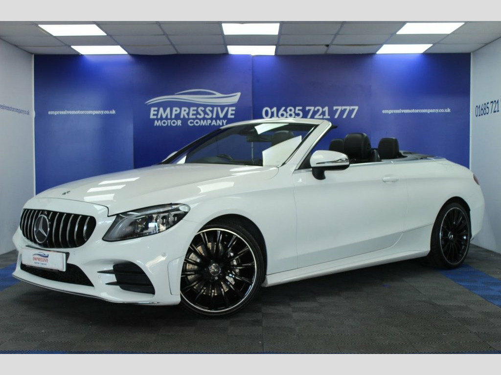 ****CRACKING C-CLASS**** Just in! This Stunning 2019 MERCEDES-BENZ C-CLASS 2.0 C300d AMG Line (Premium) Cabriolet 2dr Diesel G-Tronic+ Euro 6 (s/s) (245 ps) Finished In White! 57,037 miles - 2.0L diesel - Automatic - Convertible sun roof - 19" diamond cut AMG wheels - Automatic LED headlights - Parking sensors - Reverse camera - Half leather heated electric seats - Neck scarves - Ambient lighting - Virtual dashboard - COMAND infotainment system with sat nav - Bluetooth connectivity - USB - Automatic 2 zone climate control - Eco mode - Sport mode - Sport + mode - Electric handbrake - Voice control - Cruise control - Speed limiter - Paddle shift - Electric folding mirrors 18in Alloy Wheels - AMG Aero 5-Twin-Spok, ABS - Anti-Lock Braking System, Acoustic Soft-Top - with Enhanced Climat, Active Bonnet - Pedestrian Safety Measur, Active Parking Assist including PARKTRON, Adaptive Brake Assist with Hold Function, Adaptive Brake Lamps, Agility Control - Sports Suspension - Lo, AIRCAP - Wind Deflector and Draught-Stop, AIRSCARF - Neck Level Heating System, AMG Bodystyling - Front and Rear Apron a, Anti-Theft Protection Package, ATTENTION Assist, Automatic Child Seat Recognition Sensor, Automatic Seat-Belt Presenter for Driver, Brake Calipers - with Mercedes-Benz Lett, Central Locking with Interior Switch - A, Collision Prevention Assist Plus, DAB Digital Radio Tune
