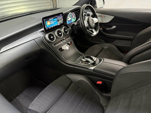 This stunning Mercedes-Benz C300d AMG Line Coupe has been meticulously maintained and comes with a full Mercedes service history. It has been well looked after, is lovely and clean inside and out, and drives superbly, offering the perfect balance of performance, comfort, and style. Finished in black metallic paint with 19-inch AMG alloy wheels and sun protection glass, this C-Class Coupe has a sleek, sporty appearance that stands out from the crowd. The high AMG Line Premium specification includes front and rear parking sensors, xenon headlights, electric folding door mirrors, electric windows, remote central locking, and heated front seats. Inside, the cabin combines luxury and technology with half leather and Alcantara sports seats, electric front seat adjustment, leather multifunction steering wheel with gearshift paddles, and a virtual cockpit display for a modern, high-end driving experience. Technology and comfort features include cruise control, satellite navigation, Bluetooth telephone and audio connectivity, DAB digital radio, Apple CarPlay, and Android Auto. There's also a front centre armrest and ISOFIX system for practicality and everyday convenience. Powered by Mercedes' impressive 2.0-litre C300d diesel engine, this coupe delivers a strong 245 PS through the smooth G-Tronic+ automatic gearbox, providing effortless performance and excellent efficiency. A lovely, genuine example of the C-Class AMG Line Premium Coupe — stylish, sporty, and beau Obsidian Black, 19in Alloy Wheels - AMG 5-Twin-Spoke Lig, 12.3in Digital Instrument Cluster Displa, 18in Alloy Wheels - AMG Aero 5-Twin-Spok, ABS - Anti-Lock Braking System, AMG Bodystyling - Front and Rear Apron a, ATTENTION Assist, Active Bonnet - Pedestrian Safety Measur, Active Parking Assist including PARKTRON, Adaptive Brake Assist with Hold Function, Adaptive Brake Lamps, Agility Control - Sports Suspension - Lo, Ambient Lighting, Anti-Theft Protection Package, Audio 20 with Integrated Media Interface, Automatic Child Seat Recognition Sensor, Automatic Seat-Belt Presenter for Driver, Brake Calipers - with Mercedes-Benz Lett, COMAND Online System, Central Locking with Interior Switch -