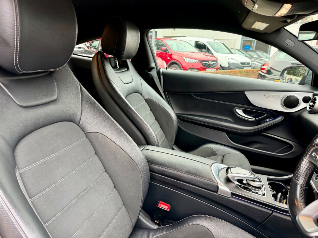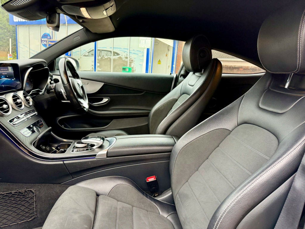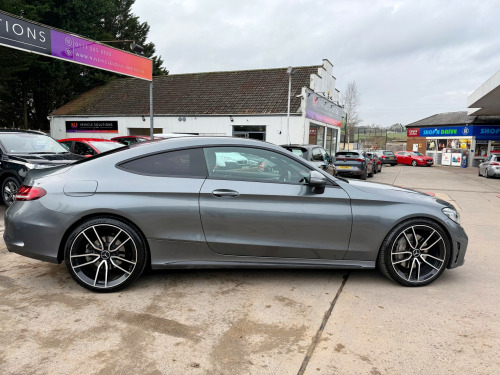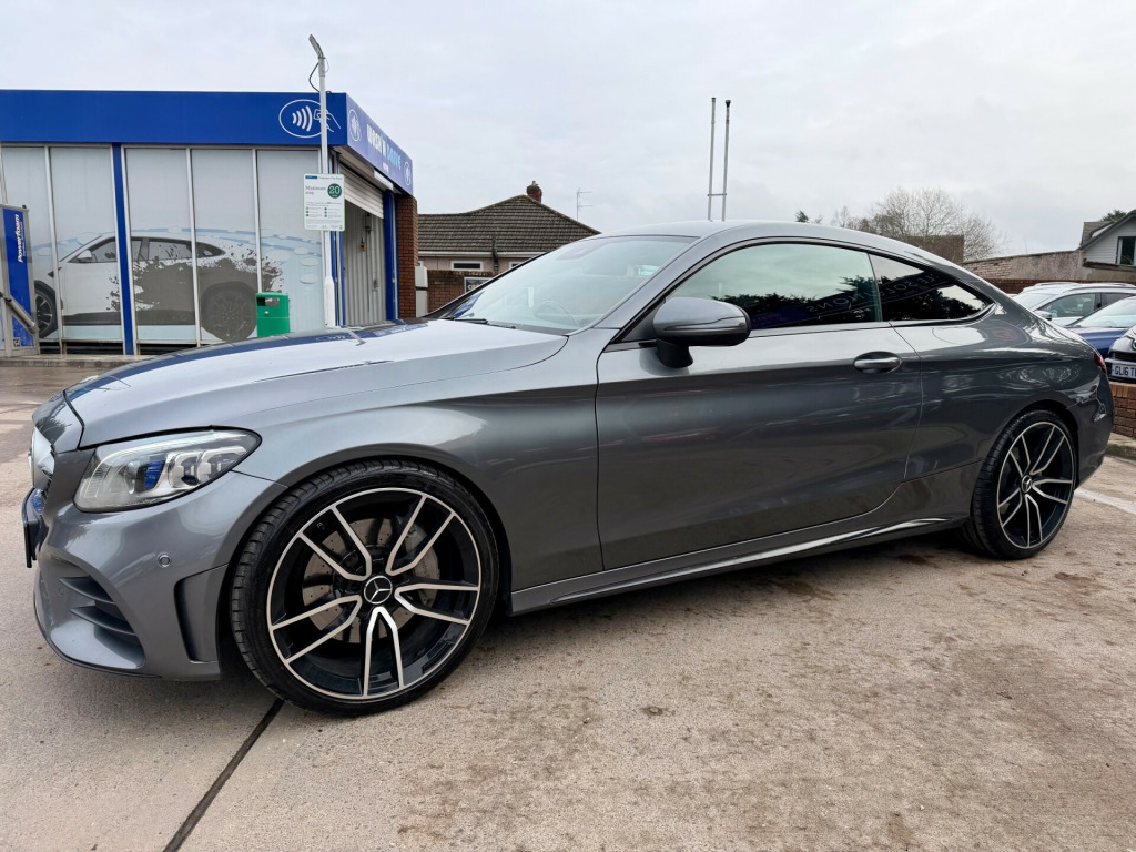 Great looking car with upgraded unmarked 20 inch e53 style alloy wheels, Service history, 64 way ambient lighting, apple car play, digital speedometer, wireless phone charging, satellite navigation, Bluetooth, WiFi online, automatic high beam assist lights, 12 month mot supplied This 2019 Mercedes-Benz C Class 2.0 C300d AMG Line (Premium) Coupe with 111000 miles on the clock is a sleek and powerful Diesel car that exudes luxury and style. With 4 seats and 2 doors, this Coupe is the epitome of refinement and sophistication. Its MOT expires on 02/03/2026, and it is ULEZ compliant, making it both reliable and environmentally friendly. The car comes equipped with a range of impressive features, including AMG Bodystyling, and Electrically Adjustable and Heated Door Mirrors. With its Euro 6 (s/s) engine and impressive 245 ps power, this Mercedes-Benz C Class Coupe offers a thrilling driving experience and is sure to turn heads wherever it goes., in alloy wheels - amg aero 5-twin-spoke - tremolite grey, amg bodystyling - front and rear apron and side skirts, brake calipers - with mercedes-benz lettering and perforated front brake discs, door mirrors - electrically adjustable and heated, front electric windows with one-touch opening and closing including obstruction sensors, mirror package, privacy glass, radiator grille - diamond grille with integrated star - chrome pins, sports exhaust system, tirefit with tyre inflation compressor, tinted glass all round - green, top surround of side windows in polished aluminium, visible twin-pipe exhaust trim integrated into rear bumper, abs - anti-lock braking system, active bonnet - pedestrian safety measure which detects an impact and raises bonnet, adaptive brake assist with hold function and brake drying function, adaptive brake lamps, anti-theft protection package, automatic child seat recognition sensor, automatic seat-belt presenter for driver and front passenger, central locking with interior switch - automatic locking and crash sensor with emergency opening function, collision prevention assist plus, dual-stage airbags - driver and front passenger - sidebags in front seats - driver kneebag - pelvis bag and windowbags for driver - front passenger and rear passengers, esp - electronic stability programme, electric parking brake, electronic key - chrome surround, first aid kit and warning triangle, isofix child seat attachment points with top tether in rear, status display for rear seat belts in instrument cluster, attention assist, active parking assist including parktronic, agility control - sports suspension - lowered by 15mm, dynamic select with a choice of driving modes - comfort - eco - sport - sport plus - individual, outside temperature display, reversing camera, speedtronic cruise control and variable speed limiter, service indicator assyst, sports direct-steer system with speed sensitive steering, tyre pressure monitoring system, audio 20 cd, dab digital radio tuner, high-resolution 10.25in multimedia colour display, instrument cluster with two tube-design round dials and 5.5in tft multi-function display, mercedes me connect - standard services, mercedes me connect - vehicle set-up and vehicle monitoring, pre-wiring for sd navigation system, radio aerial integrated into rear window, sd card-based navigation system, smartphone integration via android auto or apple carplay, speakers with frontbass, two usb ports and an sd card slot in centre console, floor mats - black with amg lettering, front centre armrest with stowage compartment, front door sill panels with mercedes-benz lettering, front seats - electrical height and backrest adjustment, gearshift paddle on steering wheel, heated front seats, illuminated glove compartment, interior lighting package, premium package, rain sensing windscreen wipers, remote boot release, seat belts - black, seat comfort package, seats - rear split folding 40-20-40, sports pedals in brushed stainless steel with rubber studs, sports seats with integrated head restraints, steering column - manually adjustable for height and reach, steering wheel - 3-spoke multi-function amg in leather with flattened bottom section - chrome inserts and perforated leather in grip area, steering wheel - multi-function with audio and onboard settings control, stowage - double cup holder in centre console, stowage package, sun visors with illuminated vanity mirrors, thermatic - automatic climate control - two-zone, trim - black ash wood with aluminium door trims, full led tail lights, led high performance headlamps with integrated led daytime running lights