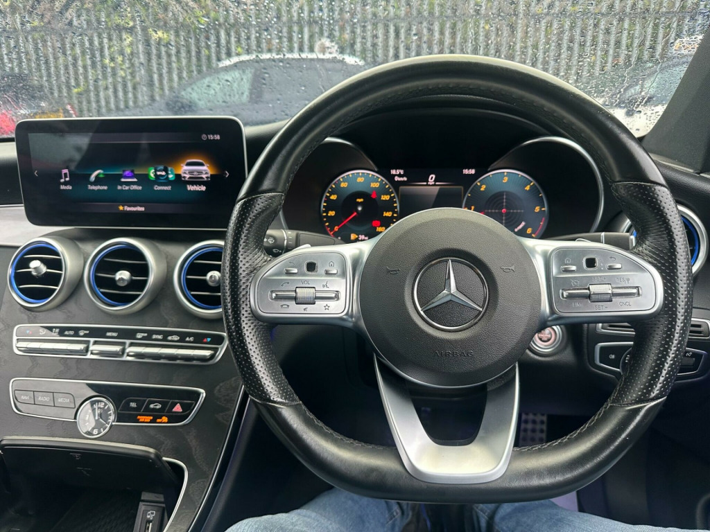 ON V CAR CAT N! This 2019 Mercedes-Benz C Class C300d AMG Line boasts exceptionally low mileage for its age, having covered just 40,580 miles. Finished in the desirable AMG Line trim, this Euro 6 compliant 2.0L diesel model offers a compelling blend of performance and efficiency. The Premium Package enhances the driving experience with LED headlights, Android Auto and Apple CarPlay integration, Bluetooth connectivity, and convenient wireless phone charging. Manoeuvring is made effortless thanks to the reversing camera and Active Parking Assist with front and rear sensors, ensuring peace of mind in any parking situation.Experience the impressive acceleration of this C300d, reaching 0-62mph in a swift 6.0 seconds, a testament to its powerful yet efficient 2.0L diesel engine. This performance is matched by an outstanding fuel economy of 51 mpg, indicating it is more economical than many comparable vehicles. Further enhancing comfort, the front seats are heated, providing a pleasant environment for all journeys.. 18in Alloy Wheels - AMG Aero 5-Twin-Spoke - Tremolite Grey, ABS - Anti-Lock Braking System, AMG Bodystyling - Front and Rear Apron and Side Skirts, ATTENTION Assist, Active Bonnet - Pedestrian Safety Measure which Detects an Impact and Raises Bonnet, Active Parking Assist including PARKTRONIC, Adaptive Brake Assist with Hold Function and Brake Drying Function, Adaptive Brake Lamps, Agility Control - Sports Suspension - Lowered by 15mm, Anti-Theft Protection Package, Automatic Child Seat Recognition Sensor, Automatic Seat-Belt Presenter for Driver and Front Passenger, Brake Calipers - with Mercedes-Benz Lettering and Perforated Front Brake Discs, Central Locking with Interior Switch - Automatic Locking and Crash Sensor with Emergency Opening Function, Collision Prevention Assist Plus, DAB Digital Radio Tuner, Door Mirrors - Electrically Adjustable and Heated, Dual-Stage Airbags - Driver and Front Passenger - Sidebags in Front Seats - Driver Kneebag - Pelvis Bag and Windowbags for Driver - Front Passenger and Rear Passengers, Dynamic Select with a Choice of Driving Modes - Comfort - ECO - Sport - Sport Plus - Individual, ESP - Electronic Stability Programme, Electric Parking Brake, Electronic Key - Chrome Surround, First Aid Kit and Warning Triangle, Floor Mats - Black with AMG Lettering, Front Centre Armrest with Stowage Compartment, Front Door Sill Panels with Mercedes-Benz Lettering, Front Electric Windows with One-Touch Opening and Closing including Obstruction Sensors, Front Seats - Electrical Height and Backrest Adjustment, Full LED Tail Lights, Gearshift Paddle on Steering Wheel, Heated Front Seats, High-Resolution 10.25in Multimedia Colour Display, ISOFIX Child Seat Attachment Points with Top Tether in Rear, Illuminated Glove Compartment, Instrument Cluster with Two Tube-Design Round Dials and 5.5in TFT Multi-Function Display, Interior Lighting Package, Mercedes Me Connect - Standard Services, Mercedes Me Connect - Vehicle Set-Up and Vehicle Monitoring, Mirror Package, Outside Temperature Display, Pre-Wiring for SD Navigation System, Premium Package, Radiator Grille - Diamond Grille with Integrated Star - Chrome Pins, Radio Aerial Integrated into Rear Window, Rain Sensing Windscreen Wipers, Remote Boot Release, Reversing Camera, SPEEDTRONIC Cruise Control and Variable Speed Limiter, Seat Belts - Black, Seat Comfort Package, Seats - Rear Split Folding 40-20-40, Service Indicator ASSYST, Smartphone Integration via Android Auto or Apple CarPlay, Speakers with FrontBass, Sports Direct-Steer System with Speed Sensitive Steering, Sports Exhaust System, Sports Pedals in Brushed Stainless Steel with Rubber Studs, Sports Seats with Integrated Head Restraints, Status Display for Rear Seat Belts in Instrument Cluster, Steering Column - Manually Adjustable for Height and Reach, Steering Wheel - 3-Spoke Multi-Function AMG in Leather with Flattened Bottom Section - Chrome Inserts and Perforated Leather in Grip Area, Steering Wheel - Multi-Function with Audio and Onboard Settings Control, Stowage - Double Cup Holder in Centre Console, Stowage Package, Sun Visors with Illuminated Vanity Mirrors, THERMATIC - Automatic Climate Control - Two-Zone, TIREFIT with Tyre Inflation Compressor, Tinted Glass All Round - Green, Top Surround of Side Windows in Polished Aluminium, Trim - Black Ash Wood with Aluminium Door Trims, Two USB Ports and an SD Card Slot in Centre Console, Tyre Pressure Monitoring System, Visible Twin-Pipe Exhaust Trim Integrated into Rear Bumper.