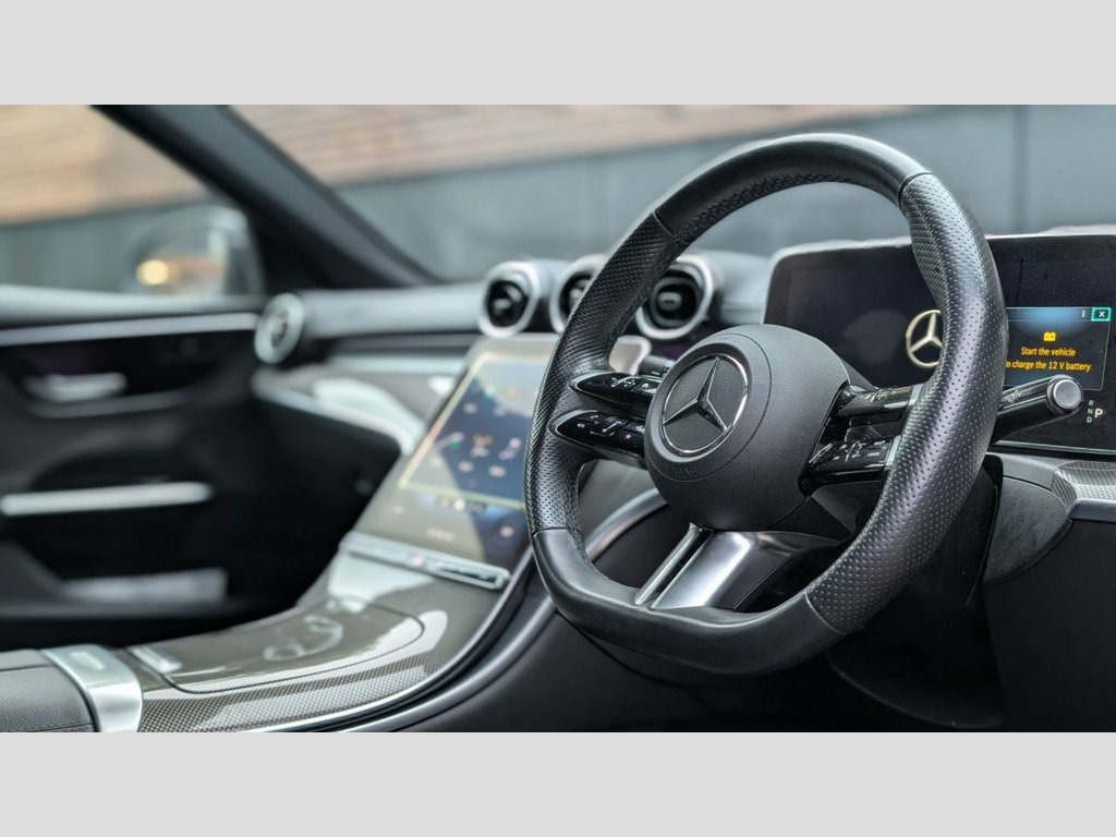 THIS STUNNING C CLASS COMES WITH A GREAT SPEC INCLUDING | 20" alloys | GTS style grille | Gloss black front splitter | Obsidian black metallic paintwork | Automatic transmission with gearshift paddles | Black leather interior | Steel woven fabric interior trims | Digital widescreen driving display | High resolution media tablet with DAB | Rear camera | Apple / Android CarPlay | High performance LED headlights with automatic high beam assist | Collision prevention assist | Front and rear parking sensors | Heated seats Leather - Black, Obsidian Black, 11.9in High Resolution Multimedia Colour, 12.3in Digital Instrument Cluster Displa, ABS - Anti-Lock Braking System, AMG Front Bumper with Sporty Air Intakes, AMG Rear Bumper with High Gloss Chrome E, AMG Skirts in Vehicle Colour, ATTENTION Assist, Active Bonnet - Pedestrian Safety Measur, Active Brake Assist with Turning Manoeuv, Active Lane Keeping Assist, Adaptive Brake Assist with Hold Function, Adaptive Brake Lamps, Agility Control - Sports Suspension - Lo, Air Vents - Black with Silver Chrome Ele, Automatic Child Seat Recognition Sensor, B Pillar Trim in Glossy Black, Black Roof Liner, Blind Spot Assist, Brake Calipers with Mercedes-Benz Letter, Central