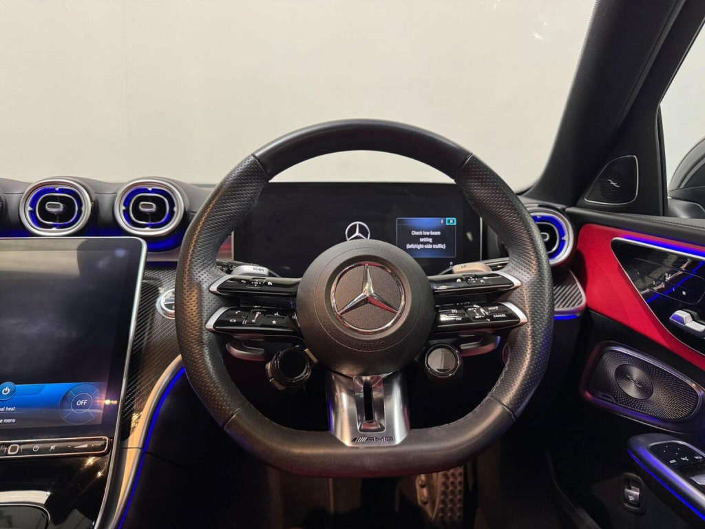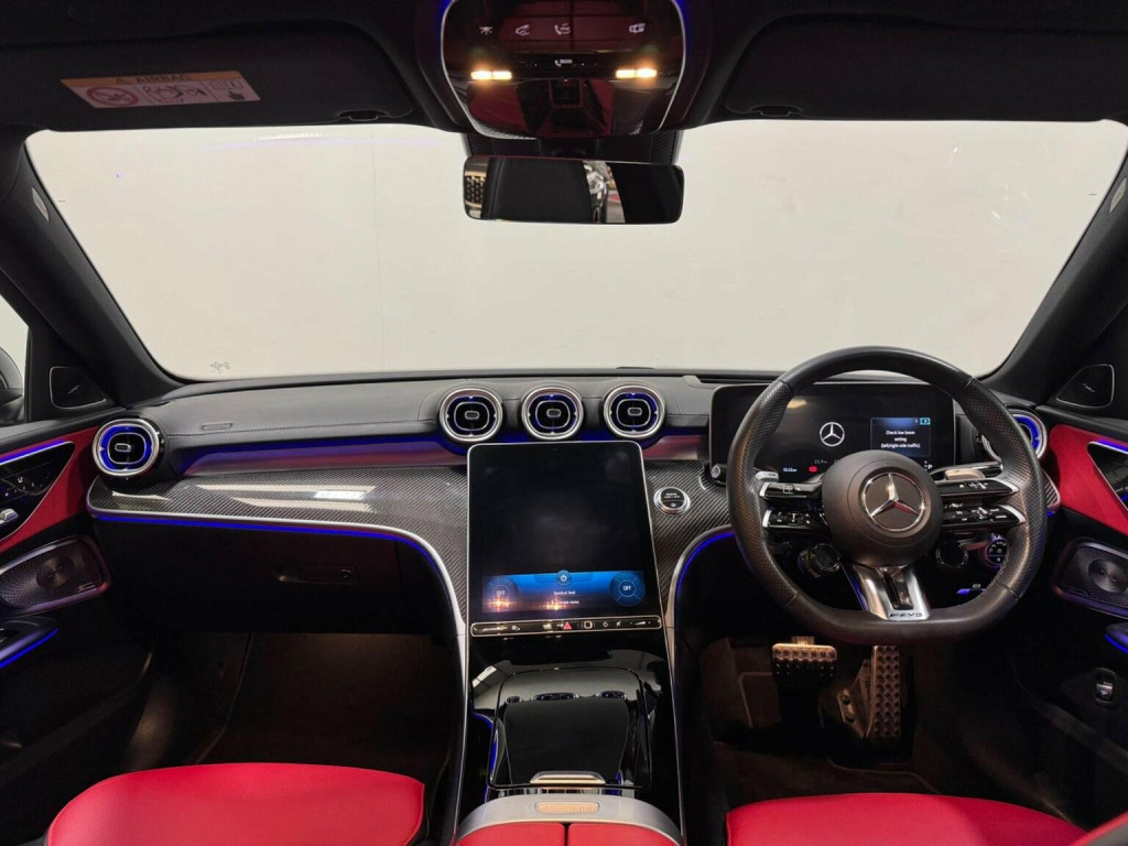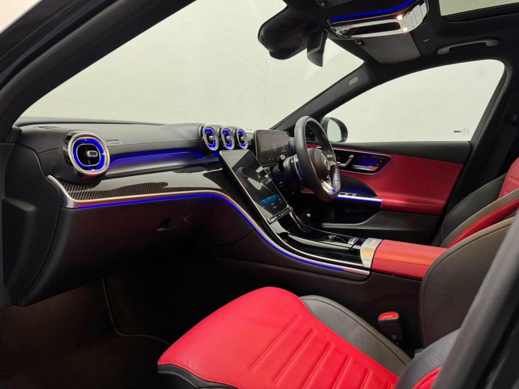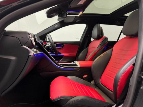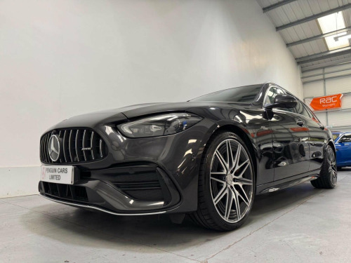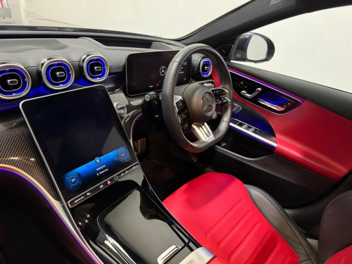 This 2022 Mercedes-Benz C Class C43 AMG (Premium Plus) boasts a full dealership service history and has had only one owner from new, ensuring excellent provenance. This Euro 6 compliant, four wheel drive model is powered by a 2.0L petrol hybrid engine and comes with a 6 month warranty and 12 months MOT provided on purchase. Finished in Graphite Grey Metallic. 22 AMG 5-Twin-Spoke Design Alloys and Power Red and Black Full Leather Interior. Notable features include a KEYLESS GO system for effortless access, electric panoramic glass sunroof, Active Parking Assist system with front and rear sensors for convenient manoeuvring. The Memory Package ensures your preferred seat settings are always ready, complemented by stylish Black Seat Belts, Heads up Display, MBUX System with SATNAV, BAD Radio, Hey Mercedes Voice Activation, Burmester 3D Surround Sound System, Apple Car Play and Android Auto, Wireless Charging, Ambient Lighting, Sports Suspension with Adaptive Damping System, Fingerprint Sensor, Full LED Tail Lights, Heated Front Seats, ISOFIX, Parking Package with 360-Degree Camera, Privacy Glass to name just a few. Experience exhilarating performance with this C43 AMG, capable of accelerating from 0-62mph in just 4.7 seconds, a testament to its dynamic capabilities. This impressive acceleration figure highlights how this vehicle offers a more engaging driving experience compared to many others in its class. With a clear vehicle history check and a last service completed at 22501 miles on 2025-10-15, this Mercedes-Benz represents a well maintained and high performing option.