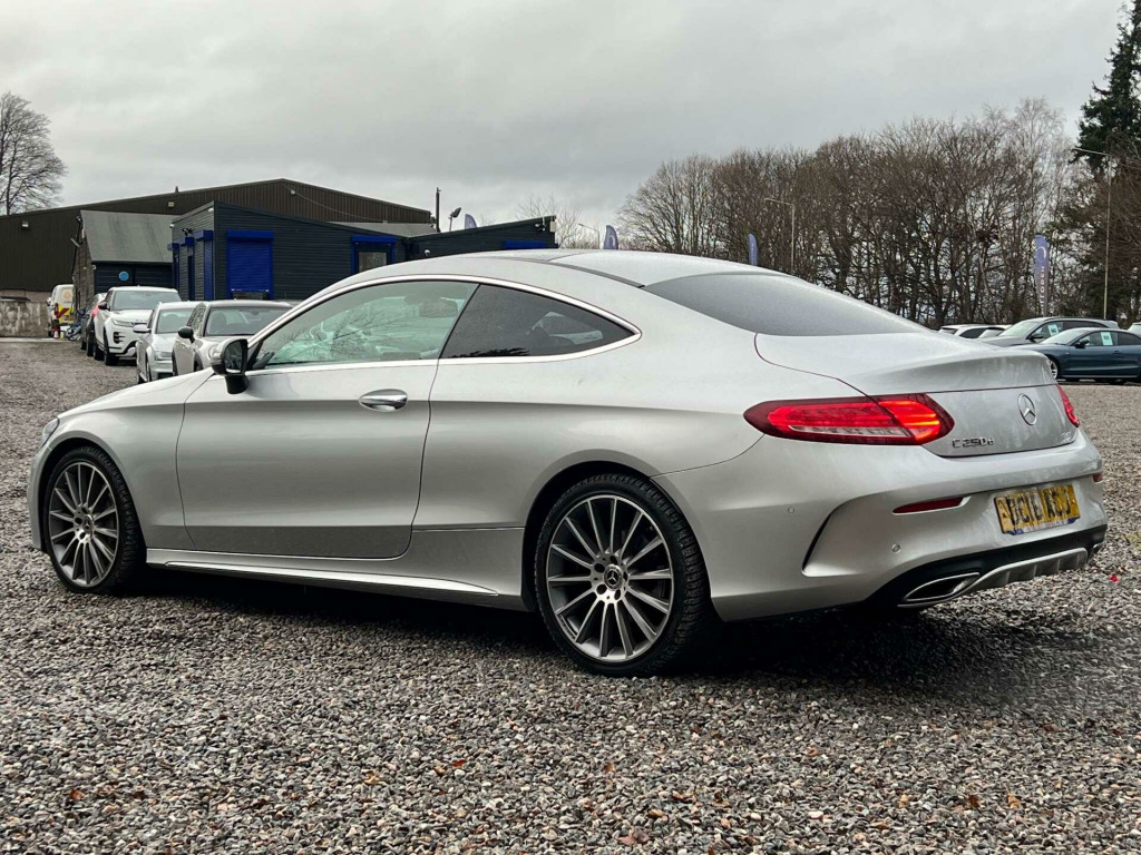 Introducing the Mercedes-Benz C-Class 2.1 C 250 AMG Line Premium D Auto 2dr – a masterpiece of engineering and elegance, now available for discerning drivers who demand the very best. With just 40,000 miles on the clock and having been cherished by only two previous owners, this exquisite vehicle is ready to offer you an unparalleled driving experience.Finished in a stunning Silver, this C-Class exudes sophistication and style. The Diamond Silver exterior is perfectly complemented by the 19-inch AMG Multi-Spoke Design alloy wheels, painted in a striking Titanium Grey, ensuring you make a statement wherever you go. The addition of Privacy Glass not only enhances the sleek aesthetic but also provides an extra layer of comfort and security.Step inside to discover the luxurious Artico Leather interior in classic Black, offering a sumptuous environment that is both comfortable and refined. Every detail of this C-Class has been meticulously crafted to provide the ultimate in driving pleasure, from the intuitive controls to the premium finishes.This Mercedes-Benz C-Class is not just about looks; it’s about performance too. The 2.1-litre engine delivers a dynamic and responsive drive, while the automatic transmission ensures a smooth and effortless journey every time. Whether you're navigating city streets or cruising on the open road, this vehicle promises an exhilarating ride.Don't miss your chance to own this exceptional Mercedes-Benz C-Class. With its combination of style, performance, and luxury, it’s the perfect choice for those who refuse to compromise. Visit us today to experience the allure of this remarkable car for yourself. Your dream drive awaits.Service History26/11/21 - 29,773 - Gerard Mann Inchcape01/02/23 - 34,050 - Mercedes-Benz Arnold Clark Aberdeen07/03/24 - 38,009 - Mercedes-Benz Arnold Clark Aberdeen18/11/25 - 40,261 - Mackie Garage Services Inverness. 18in Alloy Wheels - AMG 5 Spoke Design - Painted Titanium Grey, 7in Colour Display - High-Resolution, ABS - Anti-Lock Braking System, AMG Bodystyling - Front and Rear Apron and Side Skirts, ATTENTION Assist, Active Bonnet - Pedestrian Safety Measure which Detects an Impact and Raises Bonnet, Active Parking Assist including PARKTRONIC, Adaptive Brake Lamps, Adaptive Brake with Hold Function - Hill Start Assist - Brake Drying, Agility Control - Sports Suspension - Lowered by 15mm, Anti-Theft Protection Package, Audio 20 CD, Automatic Child Seat Recognition Sensor, Automatic Seat-Belt Presenter for Driver and Front Passenger, Bluetooth Interface for Hands-free Function, Central Locking with Interior Switch - Automatic Locking and Crash Sensor with Emergency Opening Function, Centre Armrest - Front with Stowage, Collision Prevention Assist Plus, DAB Digital Radio Tuner, Door Mirrors - Electrically Adjustable and Heated, Dual-Stage Airbags - Driver and Front Passenger - Sidebags in Front Seats - Driver Kneebag - Pelvis Bag and Windowbags for Driver - Front Passenger and Rear Passengers, Dynamic Select with a Choice of Driving Modes - Comfort - ECO - Sport - Sport Plus - Individual, ESP - Electronic Stability Programme, Electric Parking Brake, Electronic Key - Chrome Surround, Exhaust System - Visible Twin-Pipe Integrated into Rear Bumper, First Aid Kit and Warning Triangle, Floor Mats - Black with AMG Lettering, Front Door Sill Panels with Mercedes-Benz Lettering, Front Electric Windows with One-Touch Opening and Closing including Obstruction Sensors, Front Seats - Electrical Height and Back Adjustment, Fuel Computer, Full LED Tail Lights, Gearshift Paddle on Steering Wheel, Headlamps - LED High Performance with Integrated LED Daytime Running Lights, Heated Front Seats, Heated Windscreen Washer System, ISOFIX Child Seat Attachment Points with Top Tether in Rear, Illuminated Glove Compartment, Instrument Cluster with Two Tube-Design Round Dials and 5.5in TFT Multi-Function Display, Interior Lighting Package, Loudspeakers with FrontBass, Mercedes Connect Me - Standard Services, Mirror Package, Outside Temperature Display, Perforated Front Brake Discs and Brake Calipers with Mercedes-Benz Lettering, Premium Package, Radiator Grille - Diamond Grille with Integrated Star - Chrome Pins, Radio Aerial Integrated into Rear Window, Rain Sensing Windscreen Wipers, Remote Boot Release, Reversing Camera, SPEEDTRONIC Cruise Control and Variable Speed Limiter, Seat Belts - Black, Seat Comfort Package, Seats - Rear Split Folding 40-20-40, Service Indicator ASSYST, Sports Direct-Steer System with Speed Sensitive Steering, Sports Pedals in Brushed Stainless Steel with Rubber Studs, Sports Seats with Integrated Head Restraints, Status Display for Rear Seat Belts in Instrument Cluster, Steering Column - Manually Adjustable for Height and Reach, Steering Wheel - 3-Spoke Multi-Function AMG in Leather with Flattened Bottom Section - Chrome Inserts and Perforated Leather in Grip Area, Steering Wheel - Multi-Function with Audio and Onboard Settings Control, Stowage - Double Cup Holder in Centre Console, Stowage Package, Sun Visors with Illuminated Vanity Mirrors, THERMATIC - Automatic Climate Control - Two-Zone, TIREFIT with Tyre Inflation Compressor, Tinted Glass All Round - Green, Top Surround of Side Windows in Polished Aluminium, Trim - Black Ash Wood with Aluminium Door Trims, Two USB Ports and an SD Card Slot in Centre Console, Tyre Pressure Monitoring System, 19in Alloy Wheels - AMG Multi-Spoke Design - Painted Titanium Grey, Privacy Glass, Diamond Silver, Artico Leather - Black.