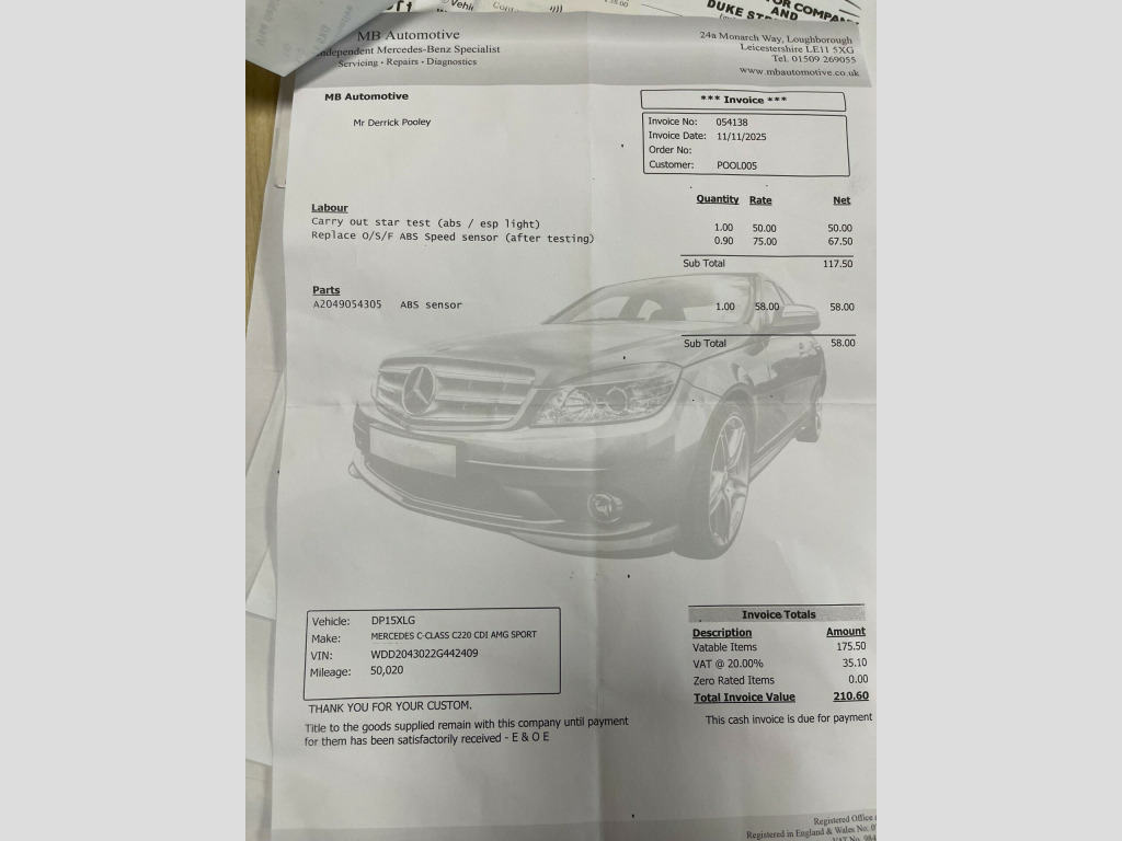 FINANCE AVALIBALE12 MONTH MOT. 18in Alloy Wheels - AMG 7 Spoke Design, 5.8in Colour Display, ABS - Anti-Lock Braking System, AMG Bodystyling - Front and Rear Apron - Side Skirts, AMG Boot Lid Spoiler, AMG Gear Shift Lever with Chrome Inserts, ASR - Acceleration Skid Control, ATTENTION Assist, Active Bonnet - Pedestrian Safety Measure, Active Light System, Adaptive Brake System with Full Hold Function, Agility Control Suspension with Adaptive Damping System, Airbags - Drivers Kneebag, Airbags - Dual Stage - Driver, Airbags - Dual Stage - Front Passenger, Airbags - Front Sidebags, Alarm System with Immobiliser and Interior Protection, Audio 20 Radio-CD-MP3 Compatibility, Automatic Child Seat Recognition Sensor, Automatic Climate Control - Two-Zone-Independently Adjustable for Driver and Passenger, Automatic Headlights, Automatically Dimming Rear View Mirror, BAS - Brake Assist, Bluetooth Interface for Hands-Free Telephone, Central Controller Dial to Operate Audio and Telephone Functions, Centre Armrest - Front with Storage, Chrome Waistline, Cup Holder - Front, DAB Digital Radio Tuner, Daytime Running Lights - LED, Door Mirrors - Electrically Folding, Door Pockets - Front, Door Sill Panels - Stainless Steel Inlays with Mercedes-Benz Lettering, ESP - Electronic Stability Programme, First Aid Kit, Floor Mats - Velour - Grey Edging, Front Electric Windows with One-Touch Opening and Closing including Obstruction Sensors, Front Seats - Electrical Height and Backrest Adjustment, Fuel Computer, Grey Stitching on Door Panels Armrest and Gear Shift Gaiter, Headlight Wash System, Headlights - Adaptive High Beam Assist, Headlights - Bi Xenon, High Level Third Brake Light, ISOFIX Child Seat Fixing Points in Rear - Two Outer Seats, Integrated 6-Disc CD Changer, Intelligent Light System, LED Rear Tail Lights, Mirror Package, Parking Sensor - Front, Parking Sensor - Rear, Parktronic with Parking Guidance, Pollen Filter, Power Steering - Speed Sensitive, Pre-Safe Anticipatory Safety System, Pre-Wiring for Becker Map Pilot Navigation System, Radio Aerial Integrated into Rear Side Window, Rain-Sensing Wipers, Rear Seats - Split Folding 1-3 2-3, Remote Central Locking, Roof Lining - Black, SPEEDTRONIC Cruise Control, Seats - AMG Sports, Service Indicator ASSYST PLUS, Spare Wheel - Space Saver, Speakers x8, Sports Suspension - Lowered by 15mm, Steering Column with Adjustable Height and Reach, Steering Wheel - 3-Spoke-AMG-Sports-Nappa Leather, Steering Wheel - Gear Shift Paddles, Steering Wheel - Multi-Function, Sun Visors with Illuminated Vanity Mirrors, Tailgate Handle - Chrome Trim, Telephone Keypad, Tinted Glass All Round - Green, Trim - Dark Brushed Aluminium, Tyre Pressure Monitoring System, USB Port, Warning Triangle, Windowbags for Driver-Front Passenger and Rear Passengers. Part service history